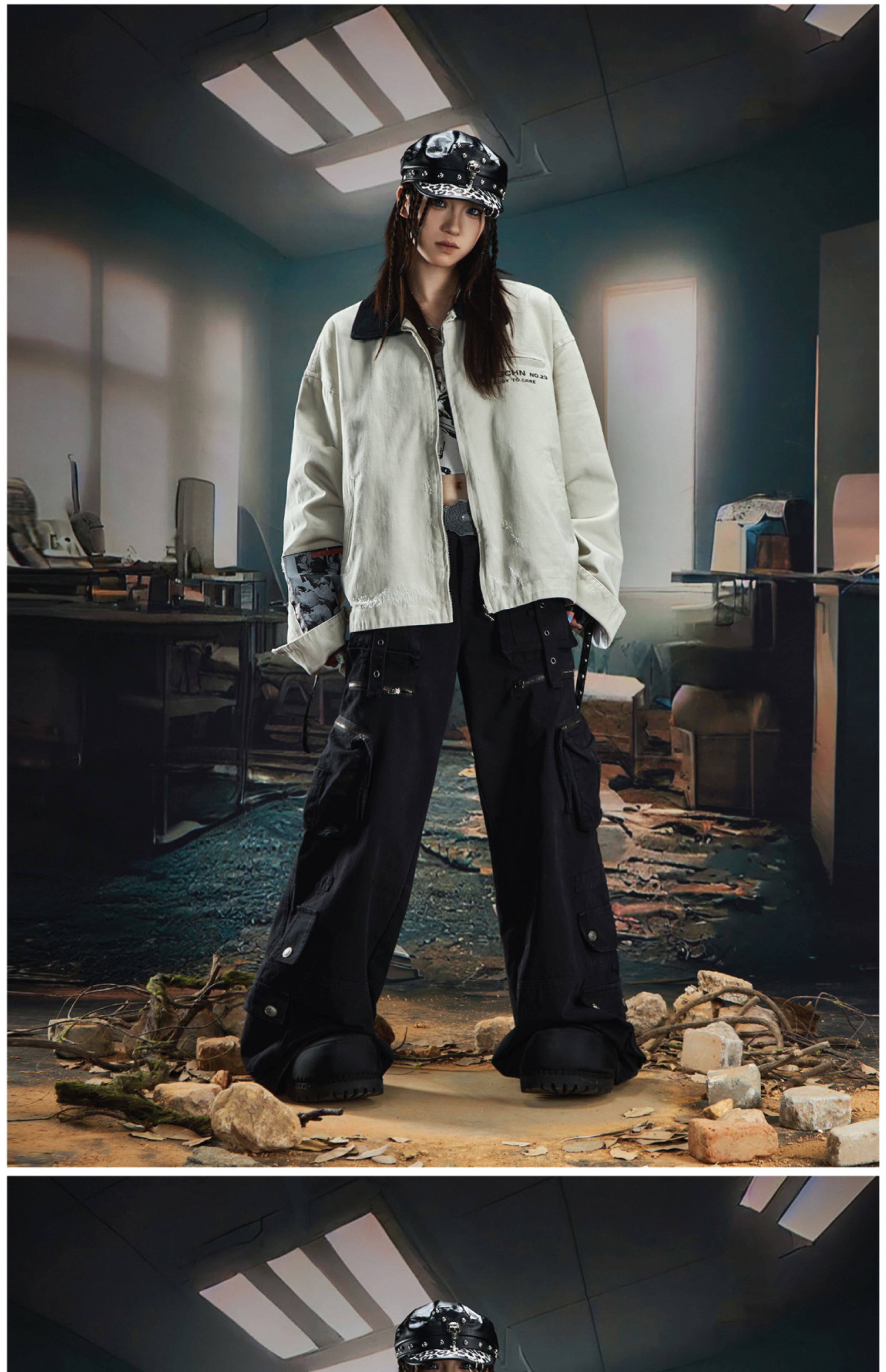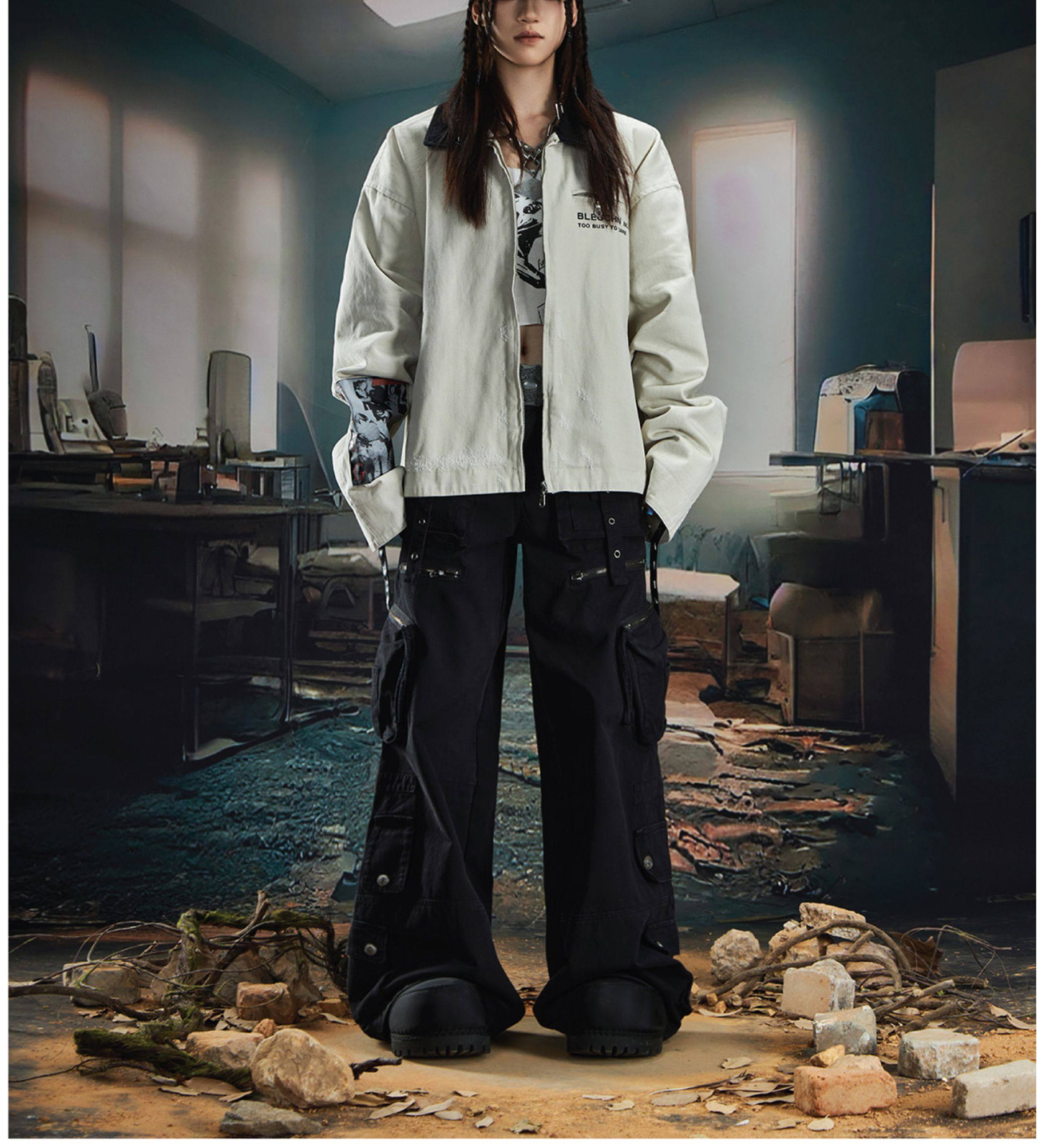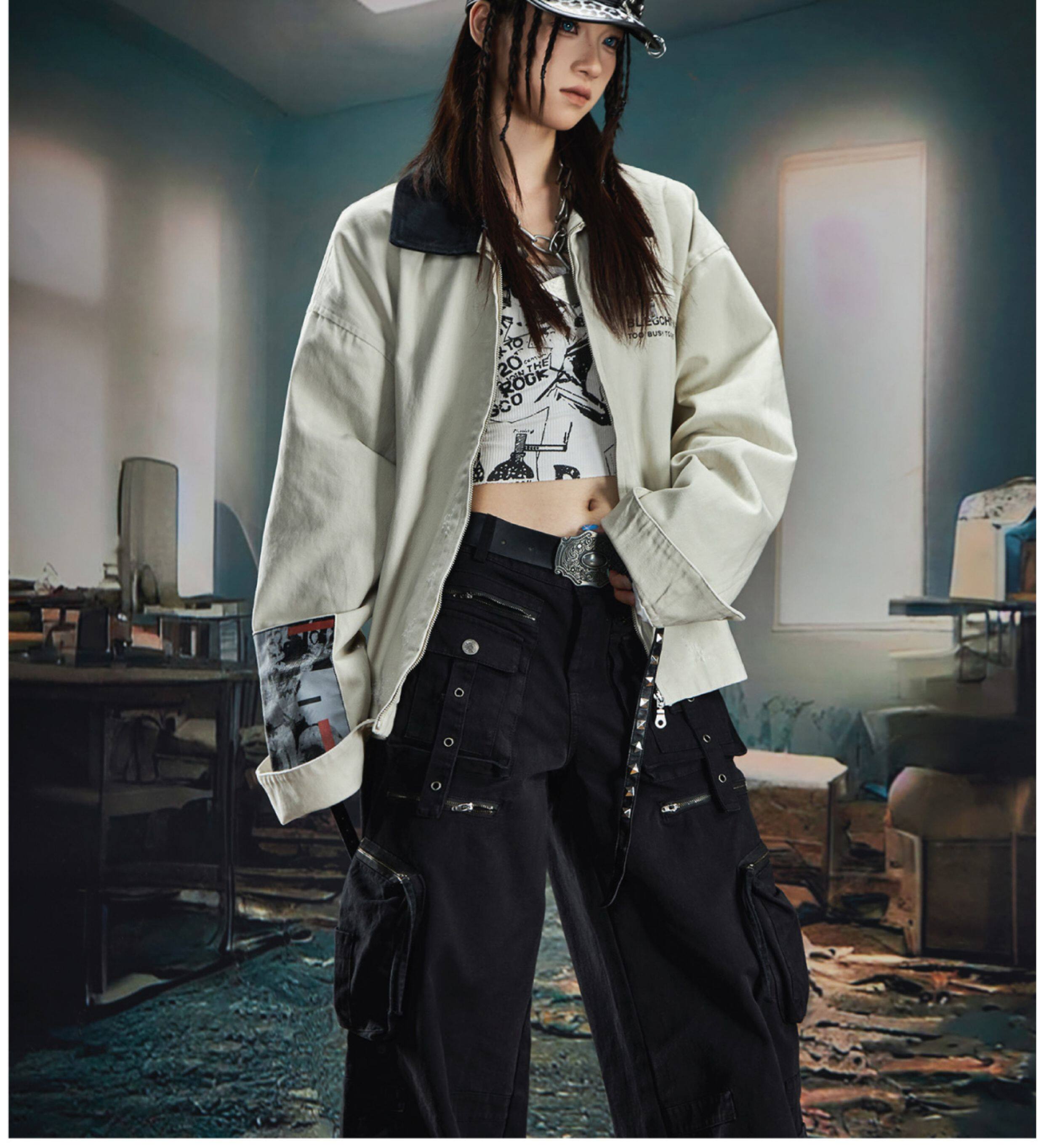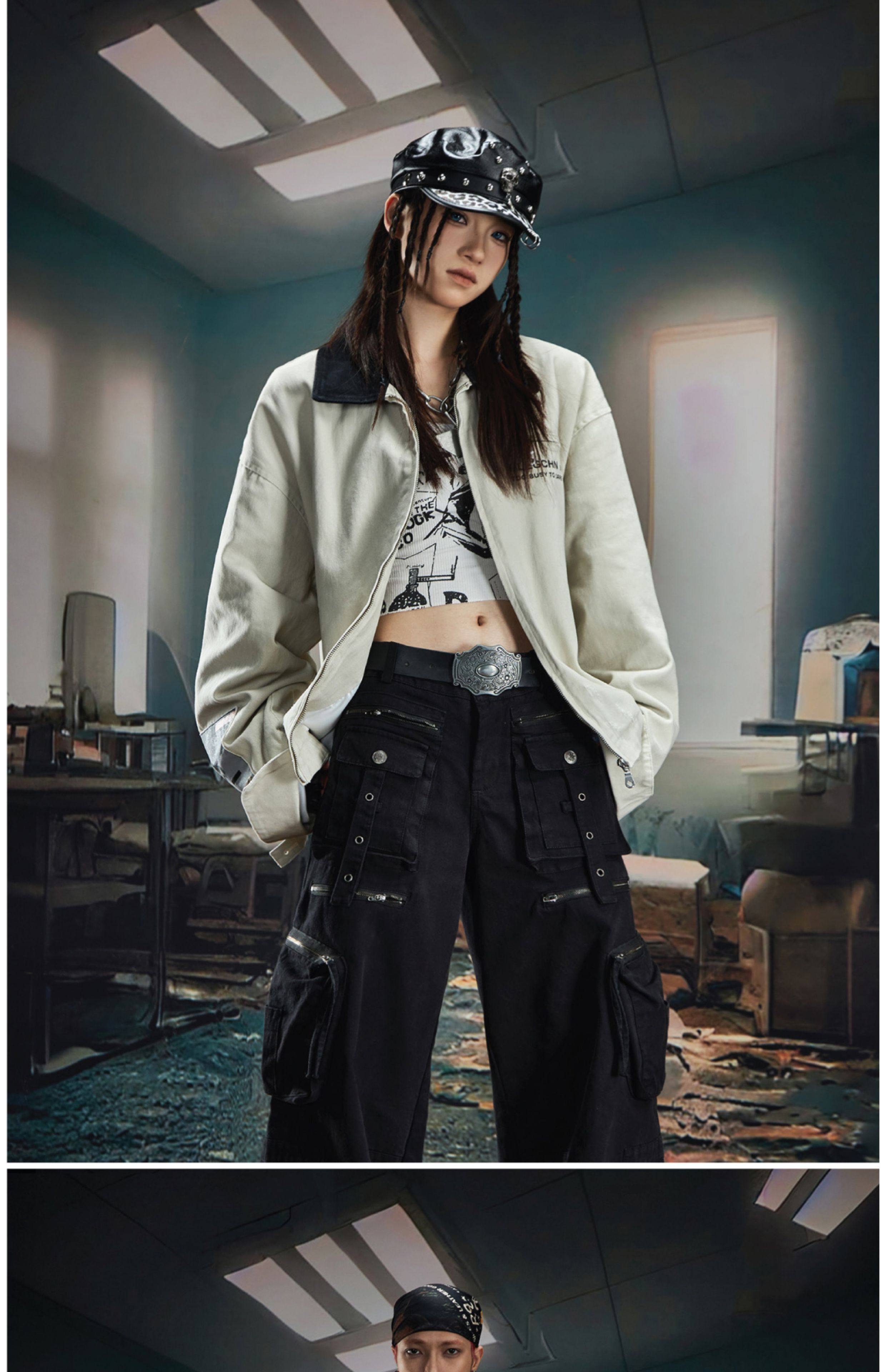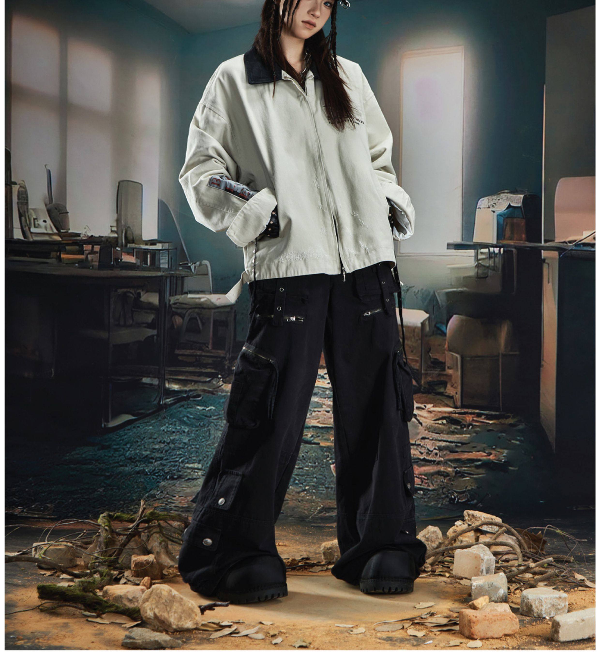 NOMANIAI Loose Zip Lapel Denim Jacket