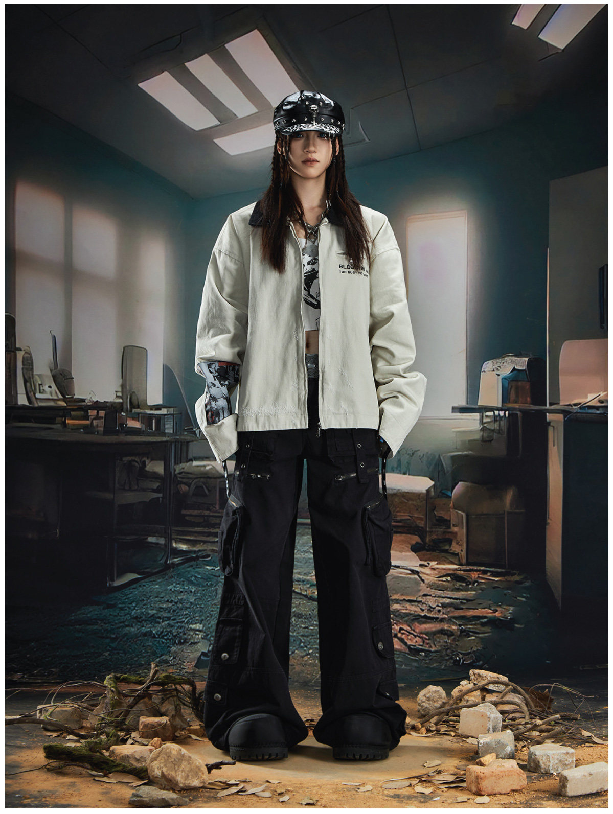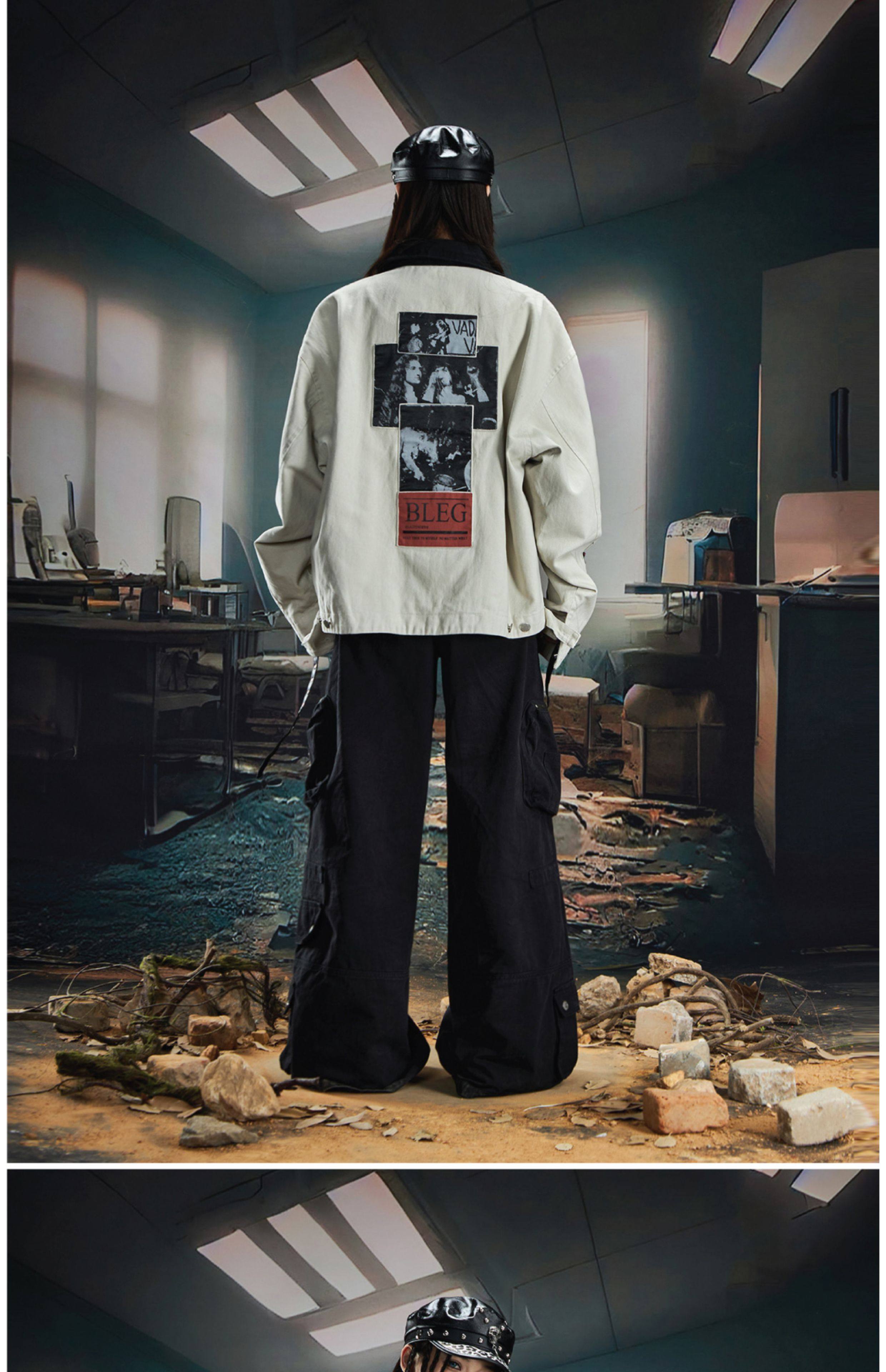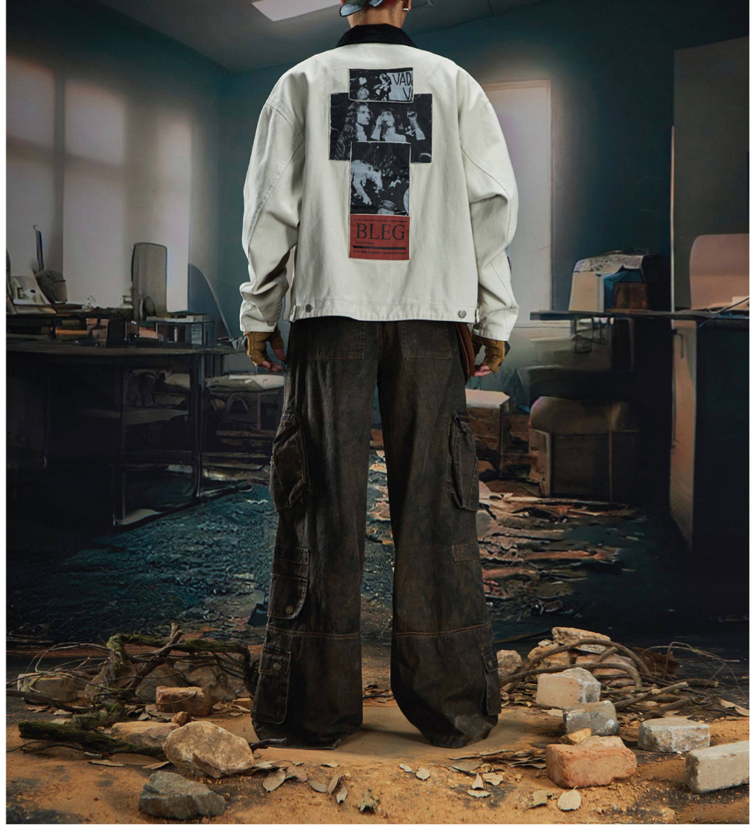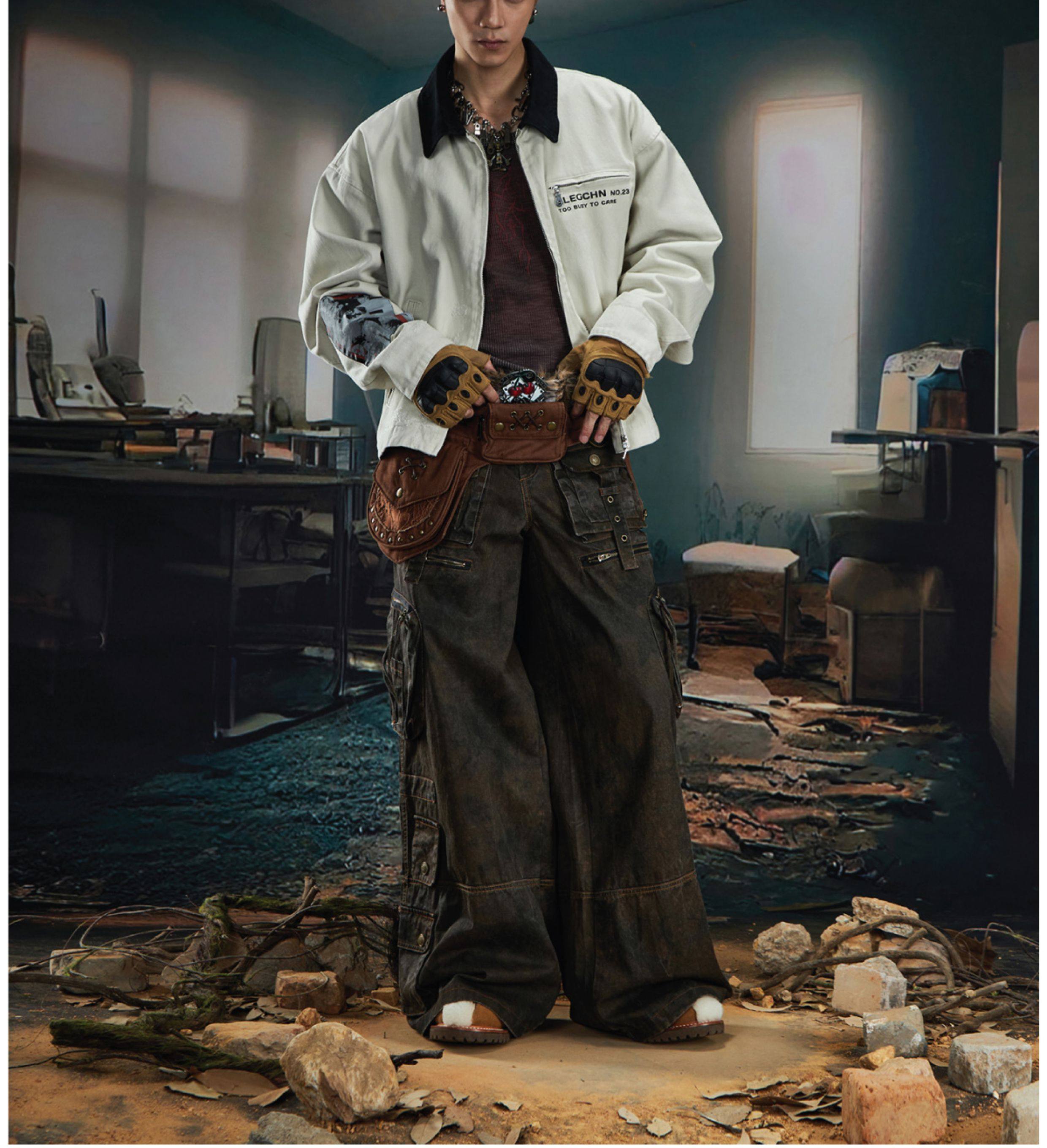 NOMANIAI Loose Zip Lapel Denim Jacket