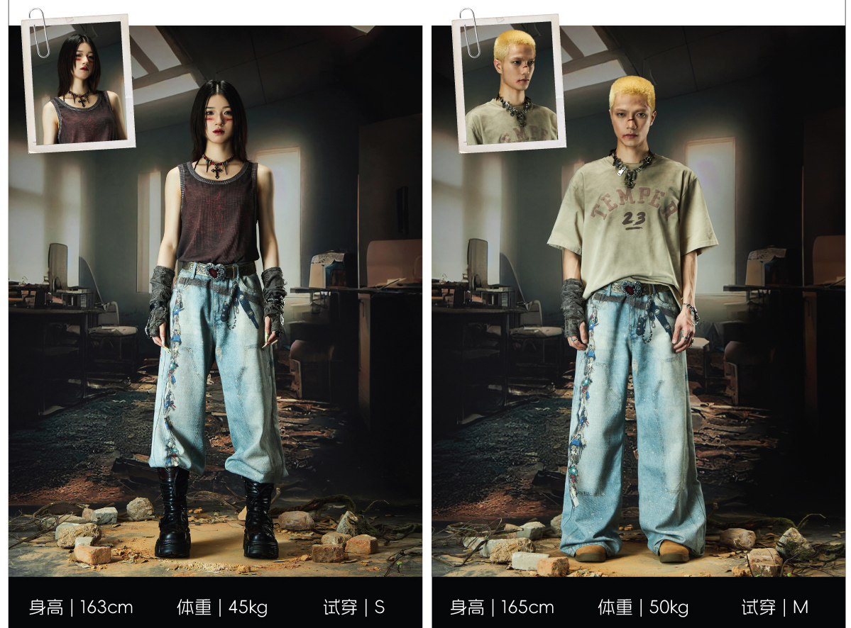 NOMANIAI Love Digital Printing Loose Straight Jeans