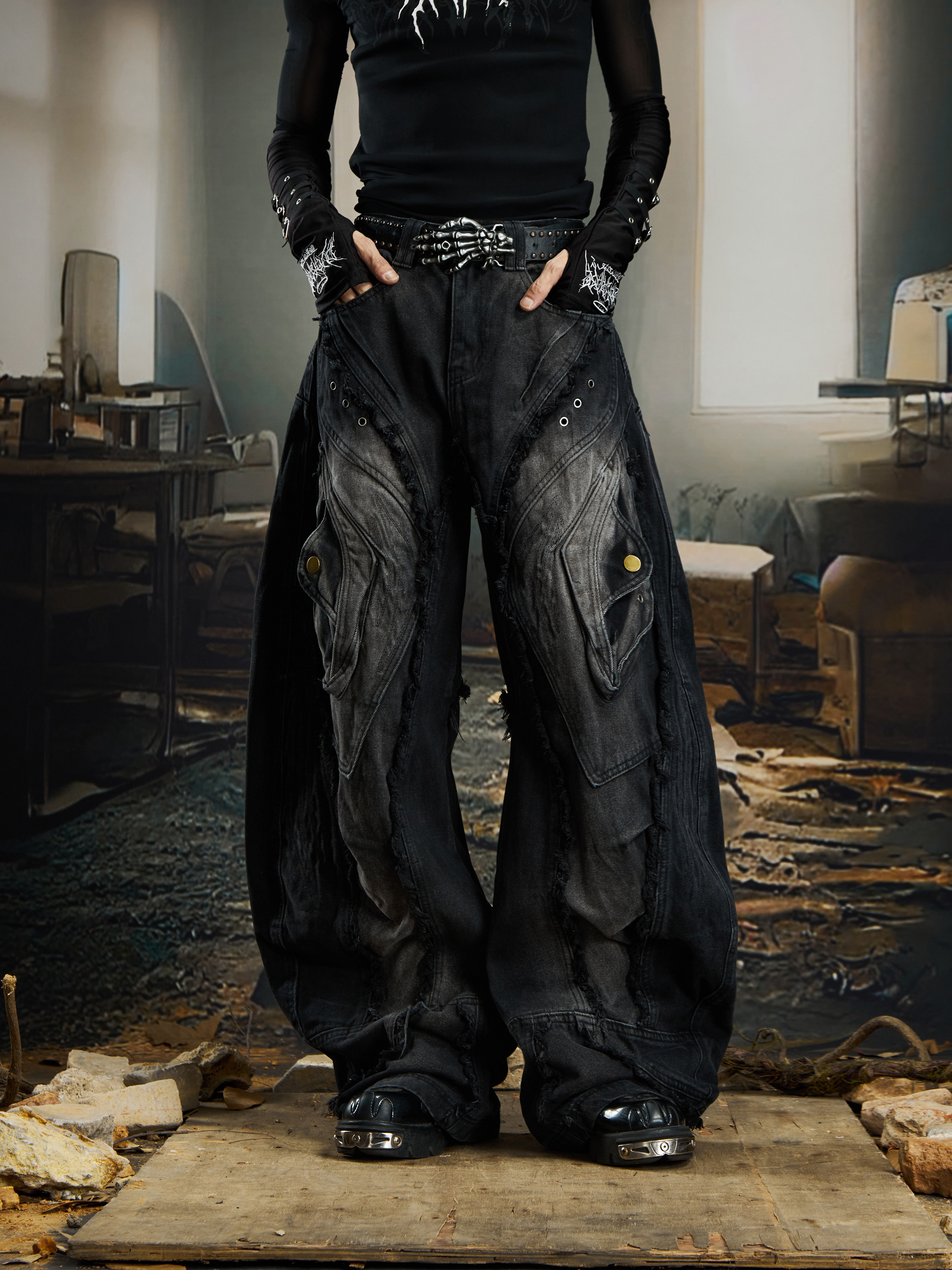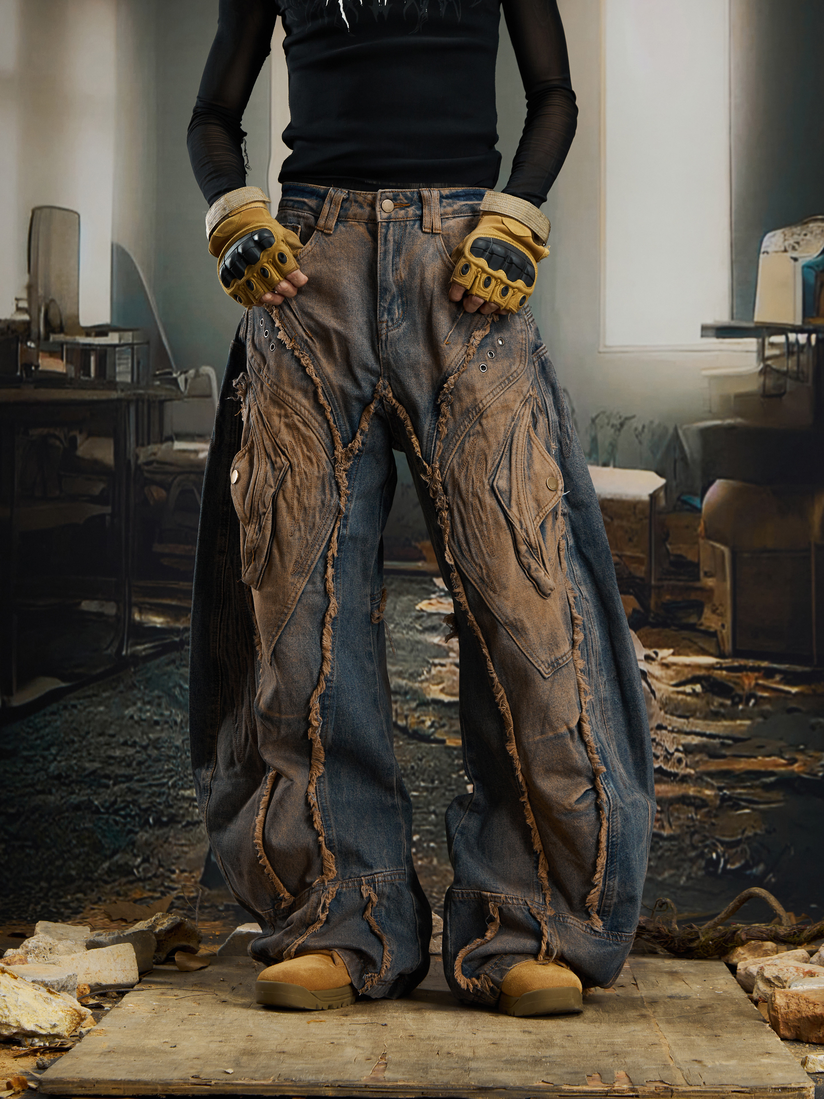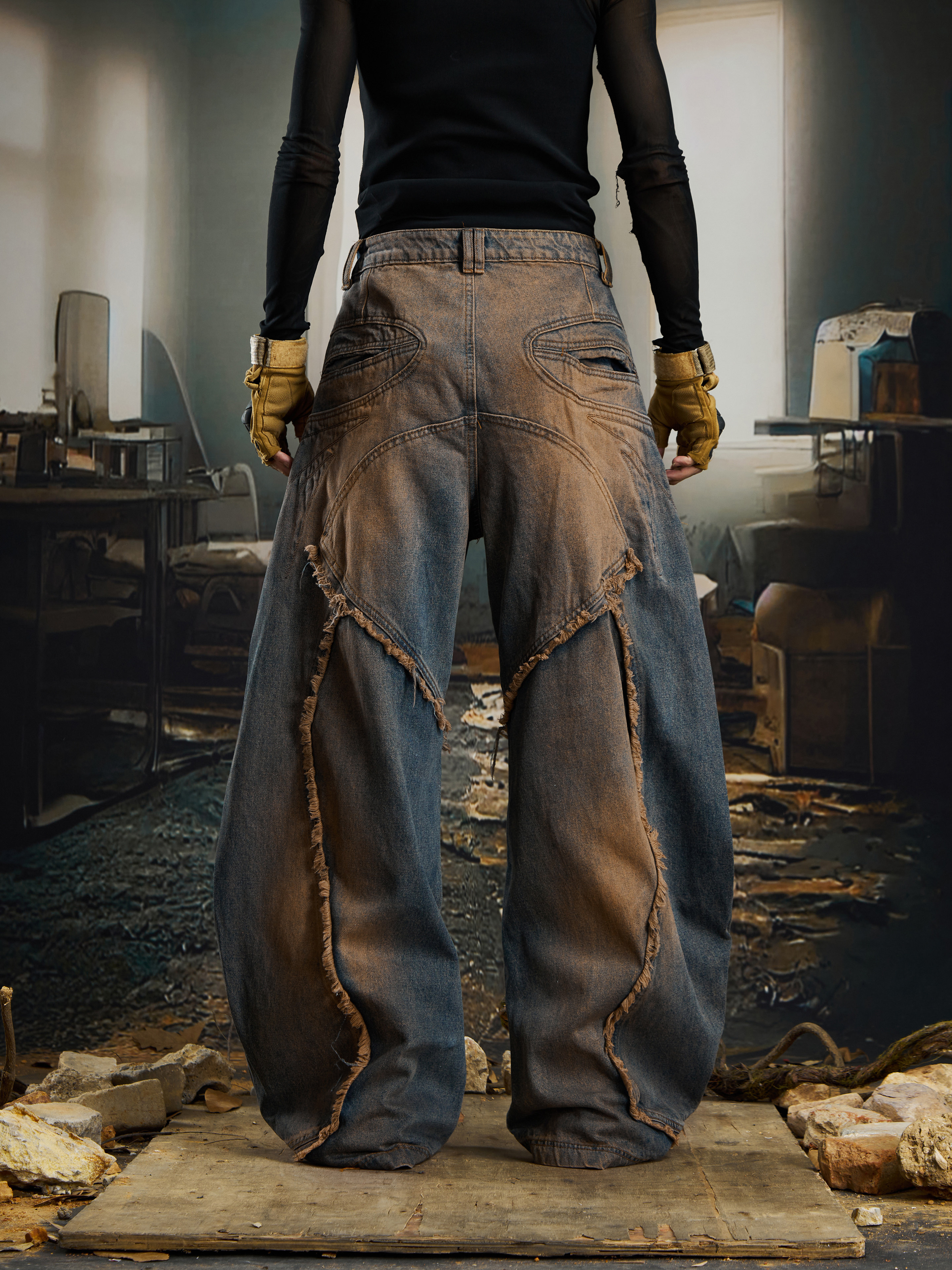 NOMANIAI Overweight Deconstruction Rough Edge Old Structure Scimitar Jeans