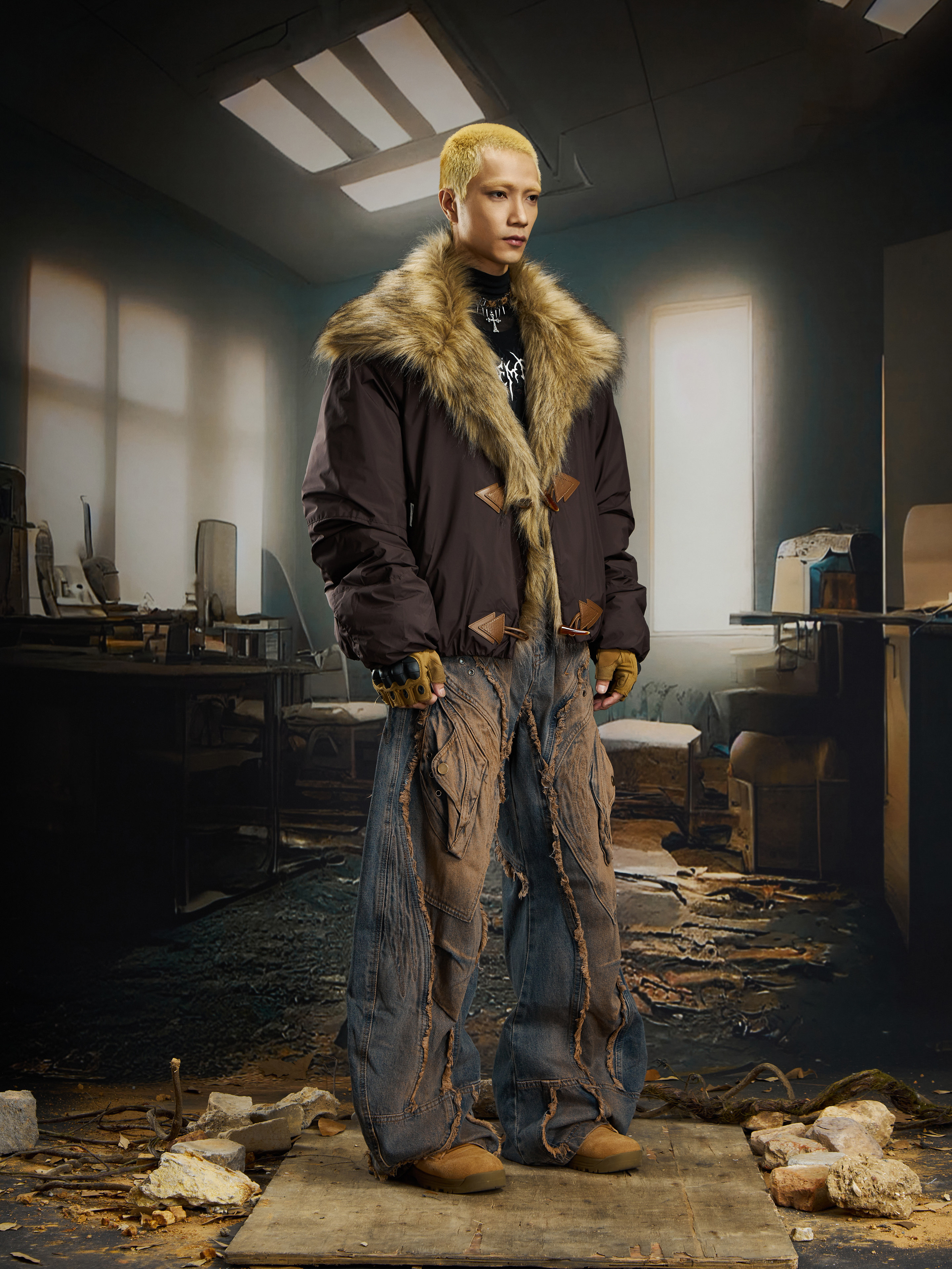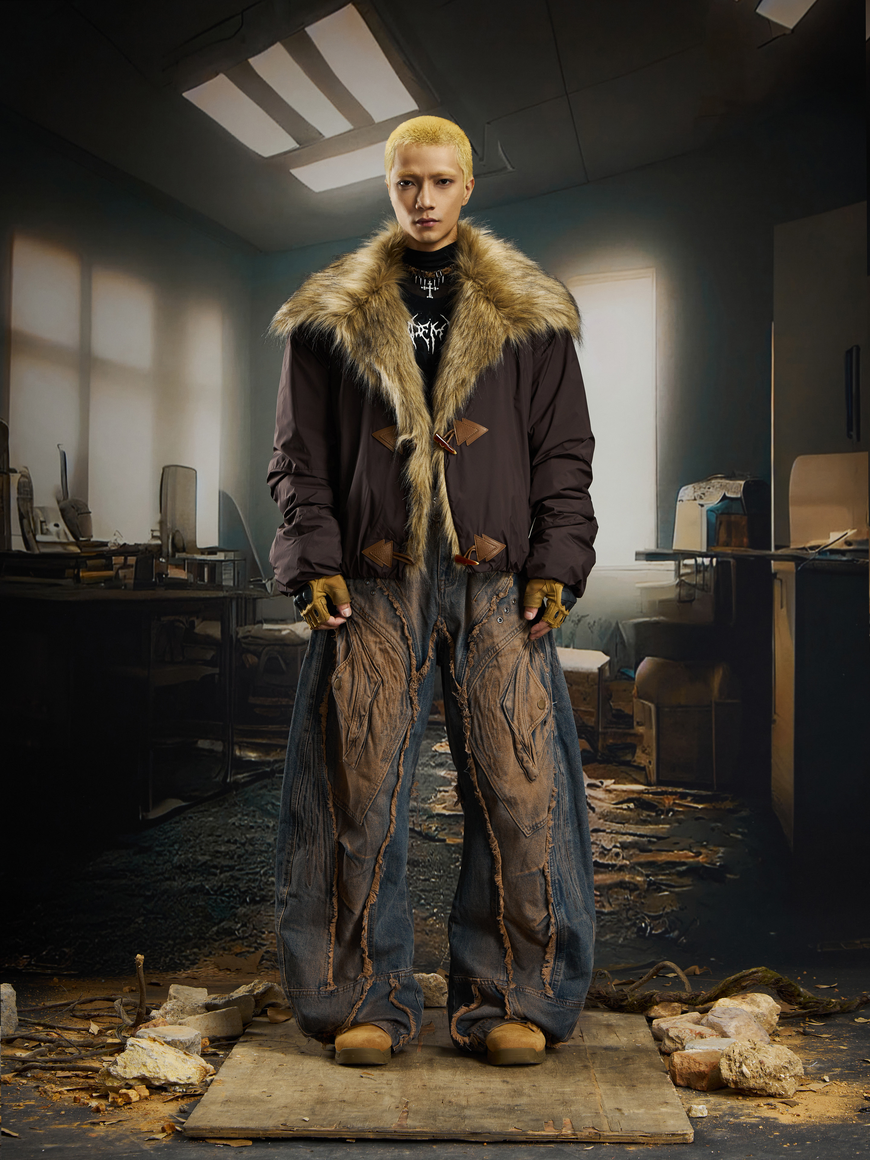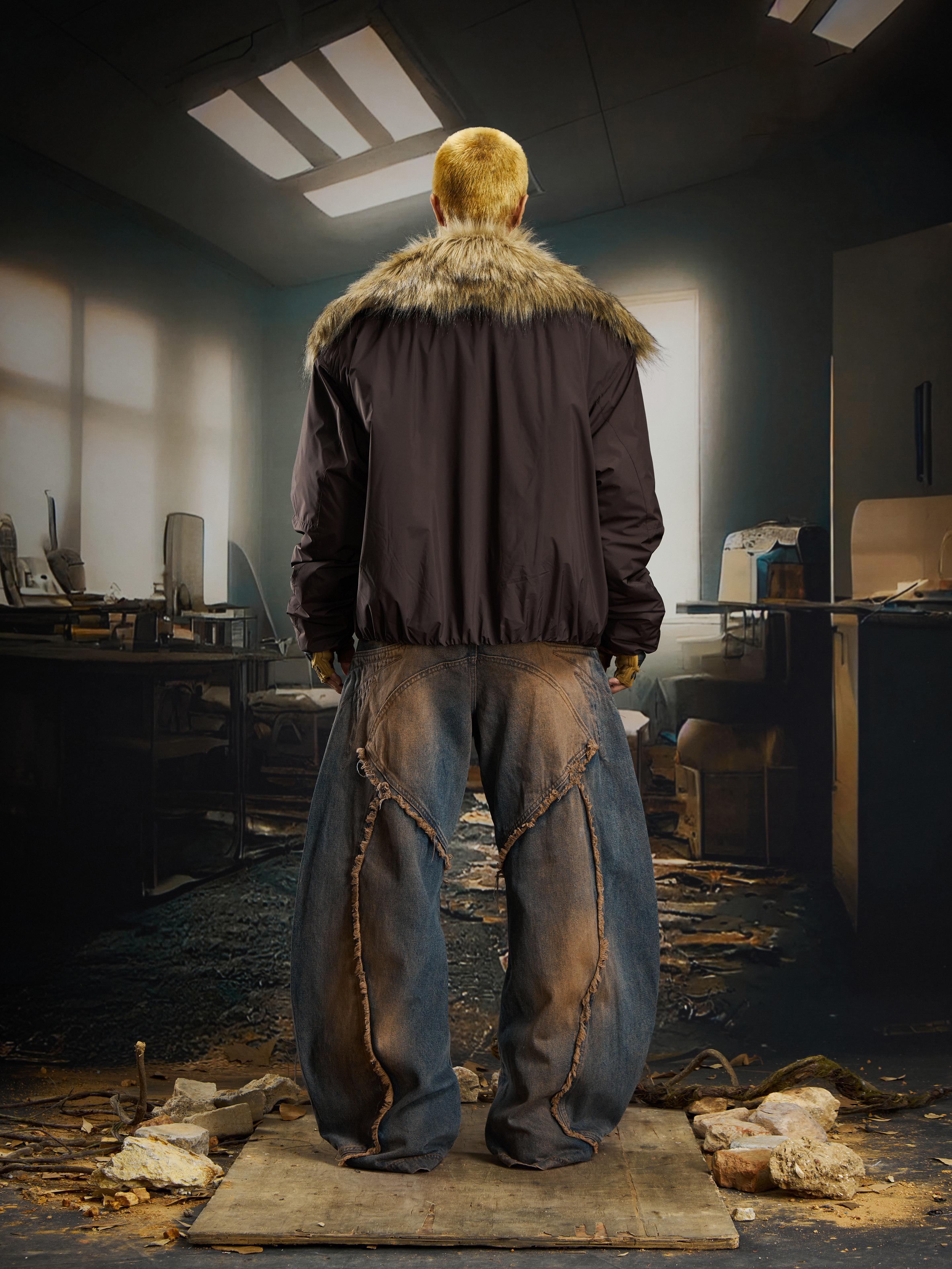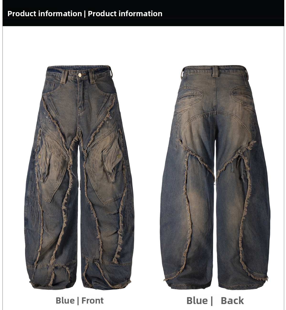 NOMANIAI Overweight Deconstruction Rough Edge Old Structure Scimitar Jeans