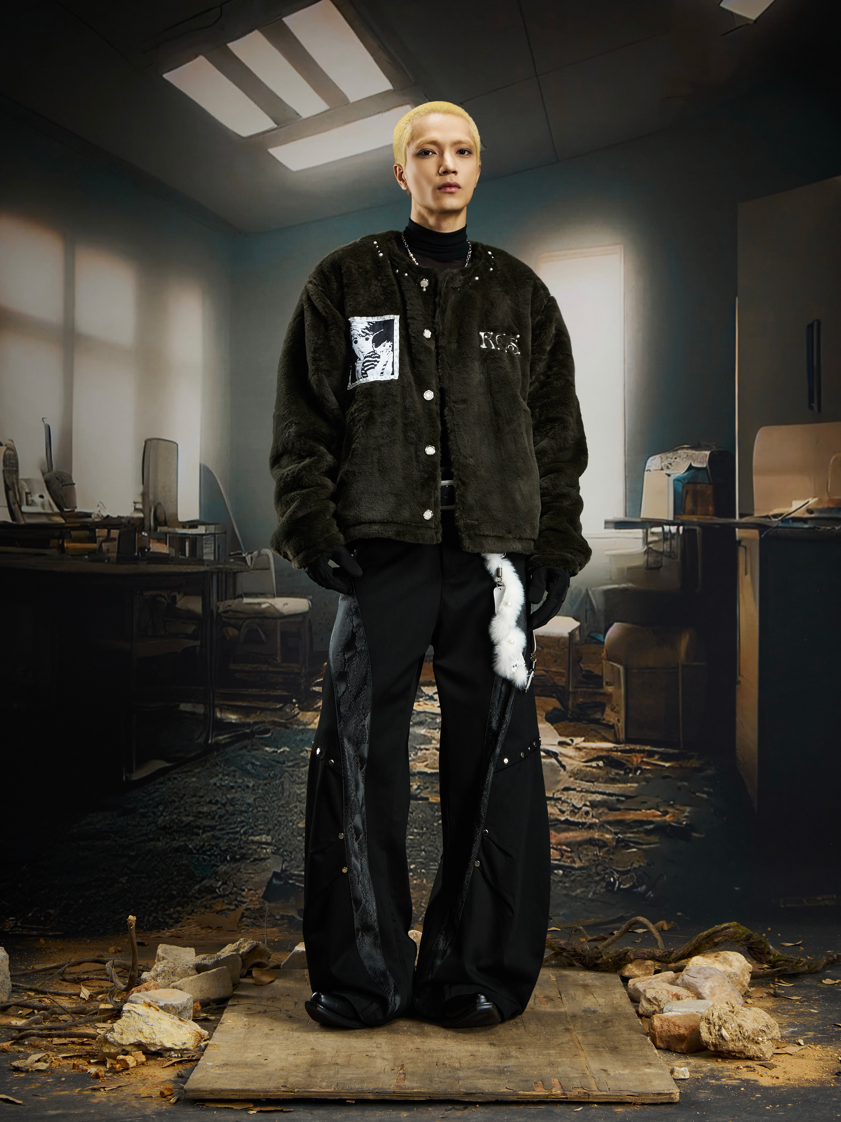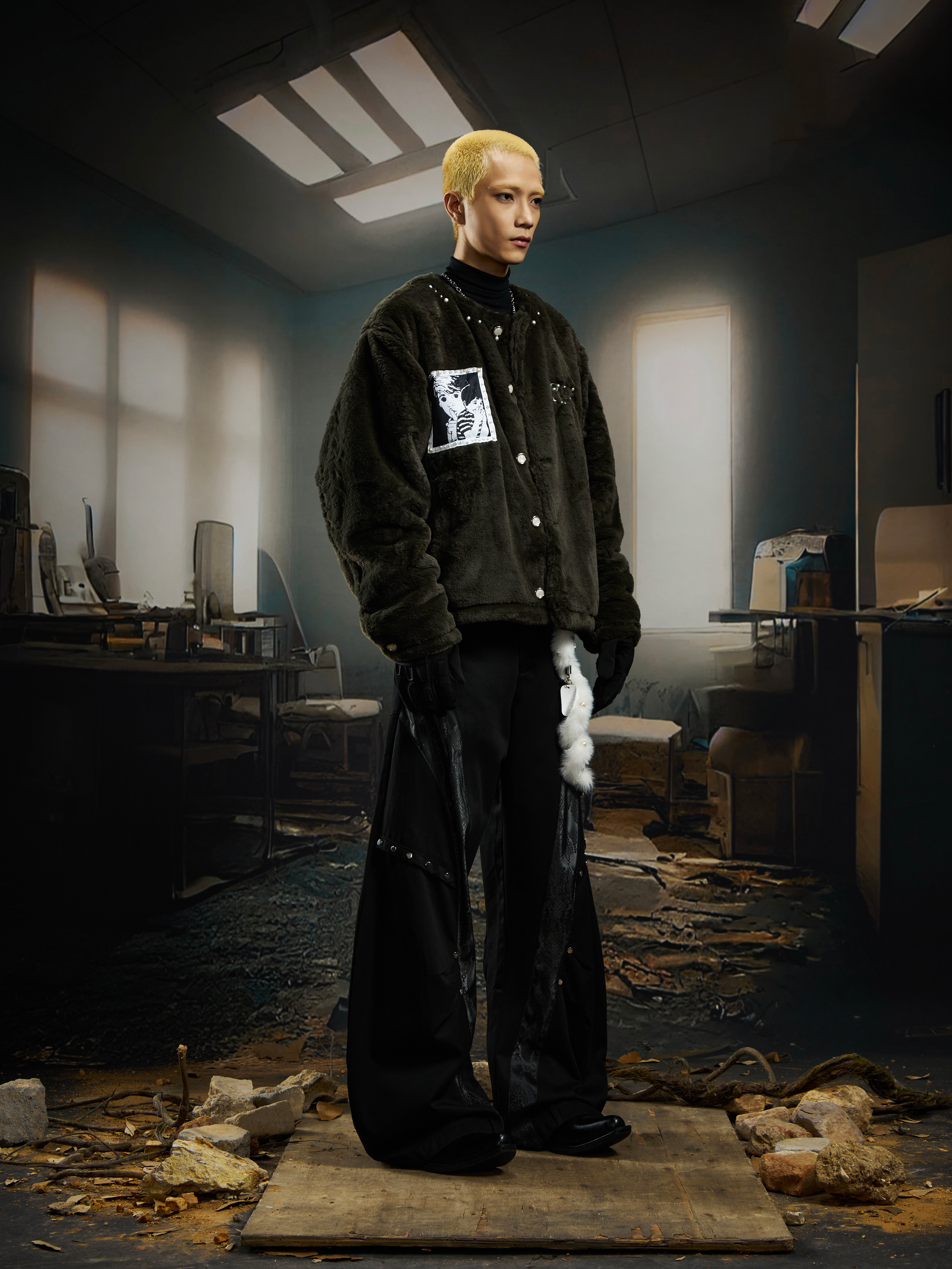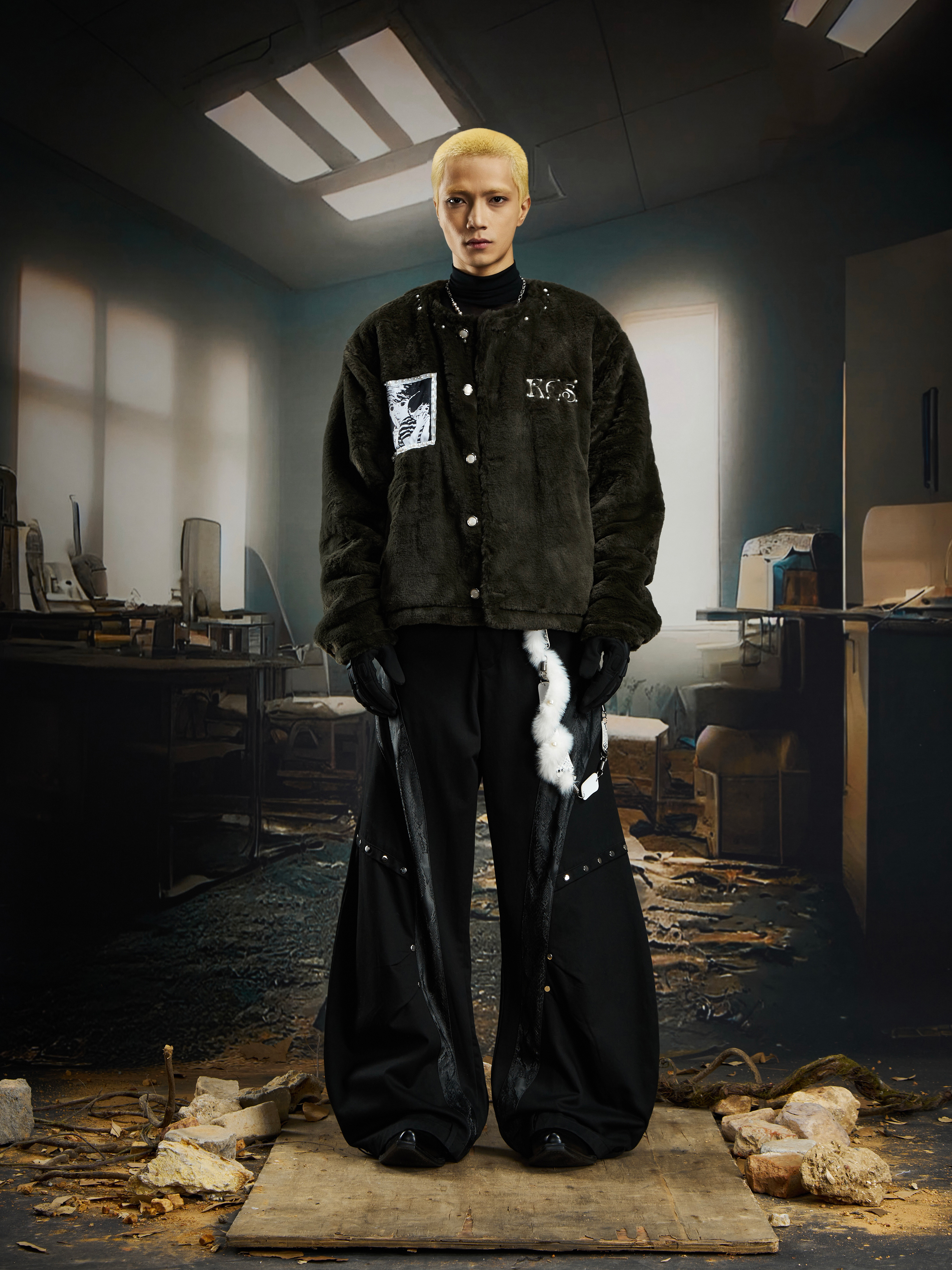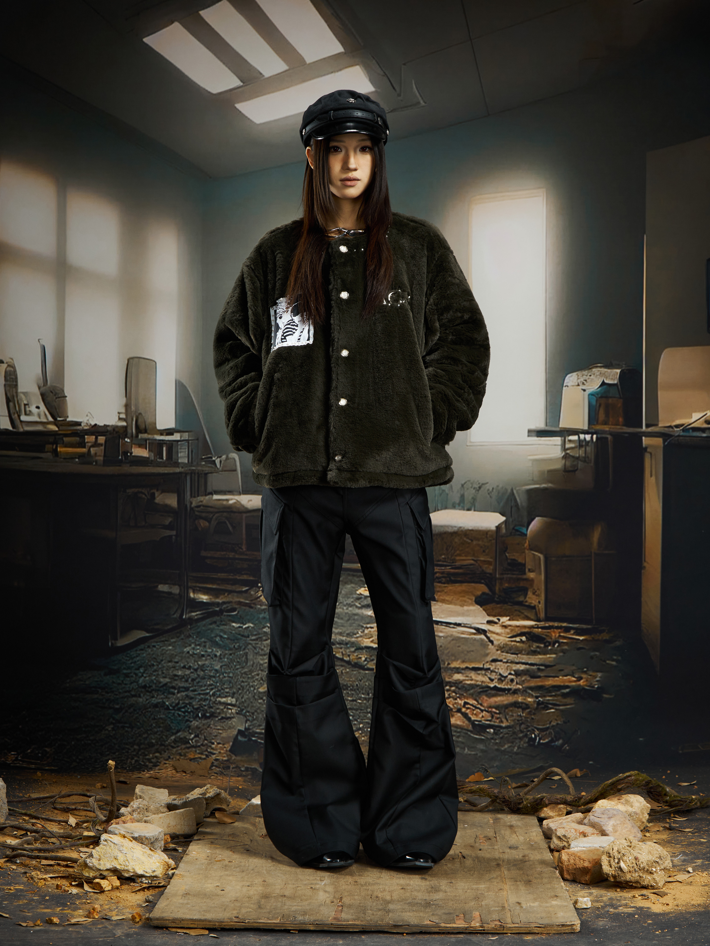 NOMANIAI Plush Comic Patch Short Padded Jacket