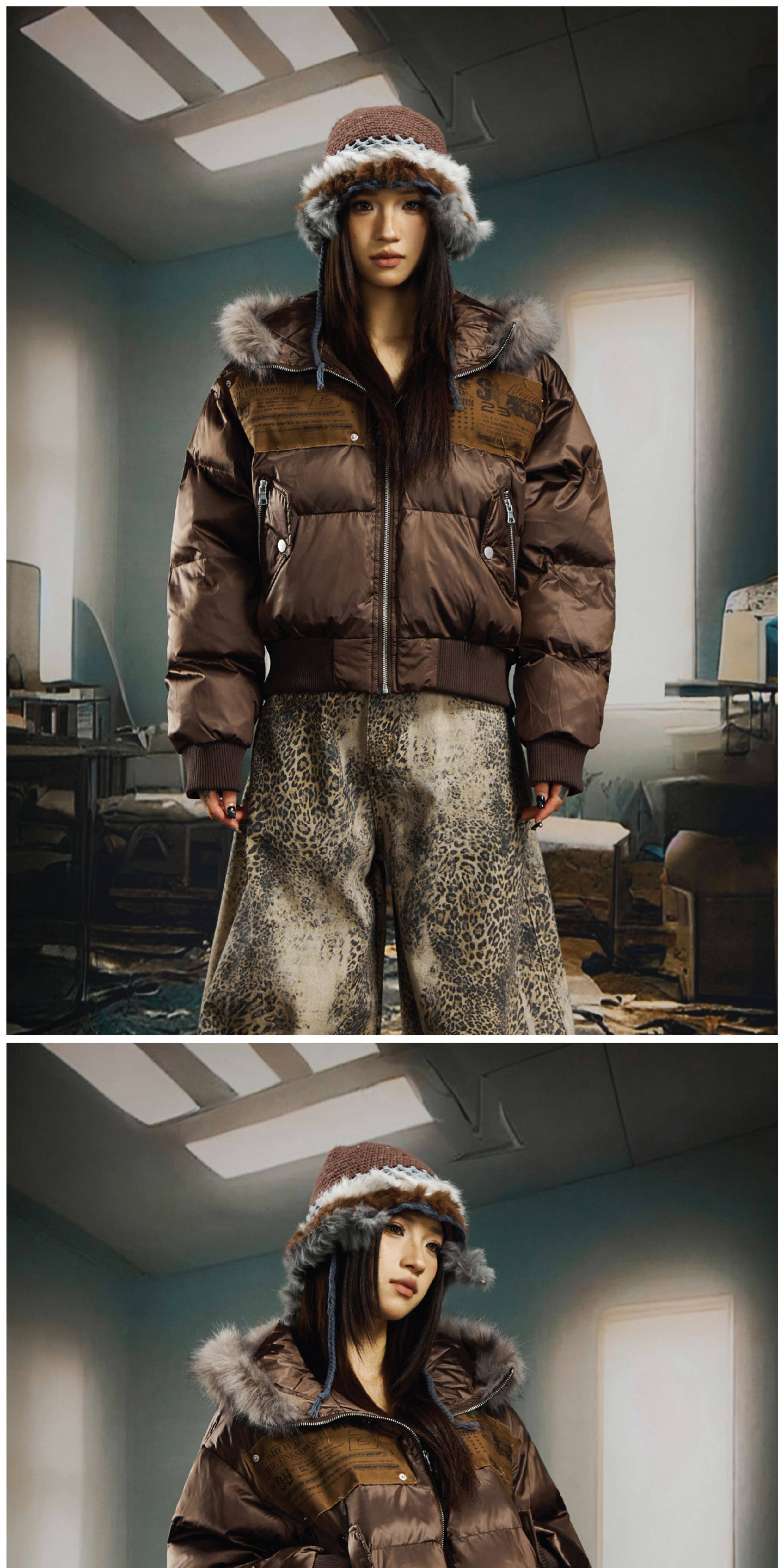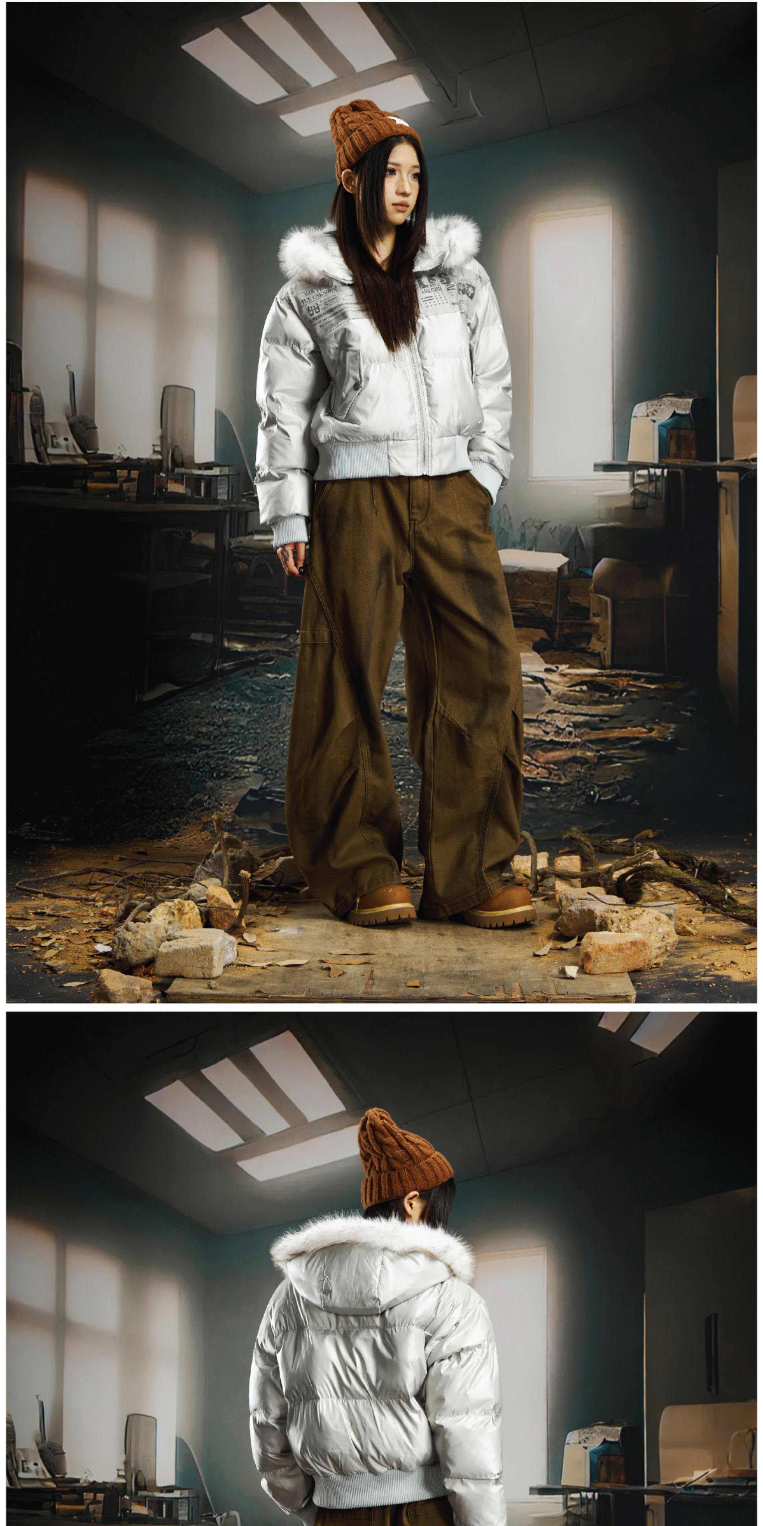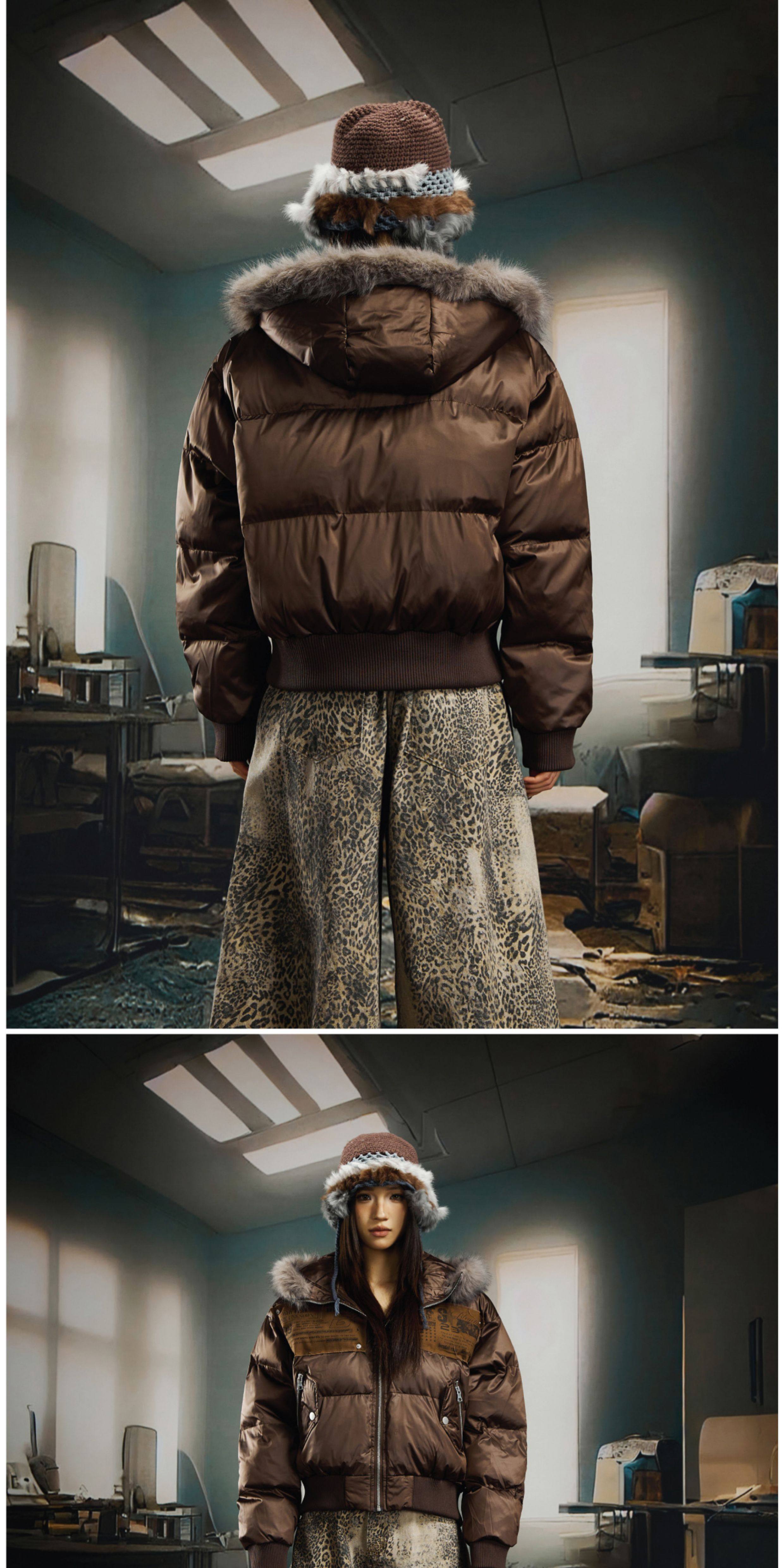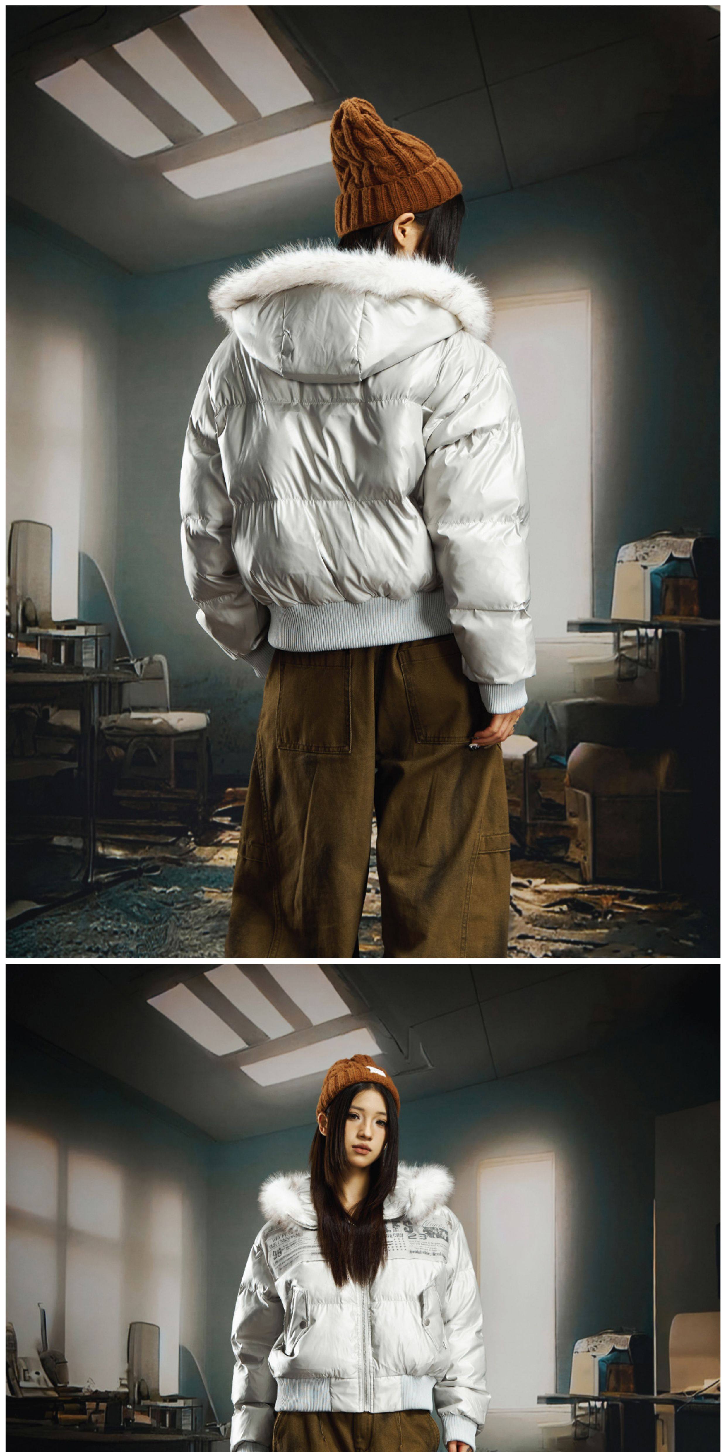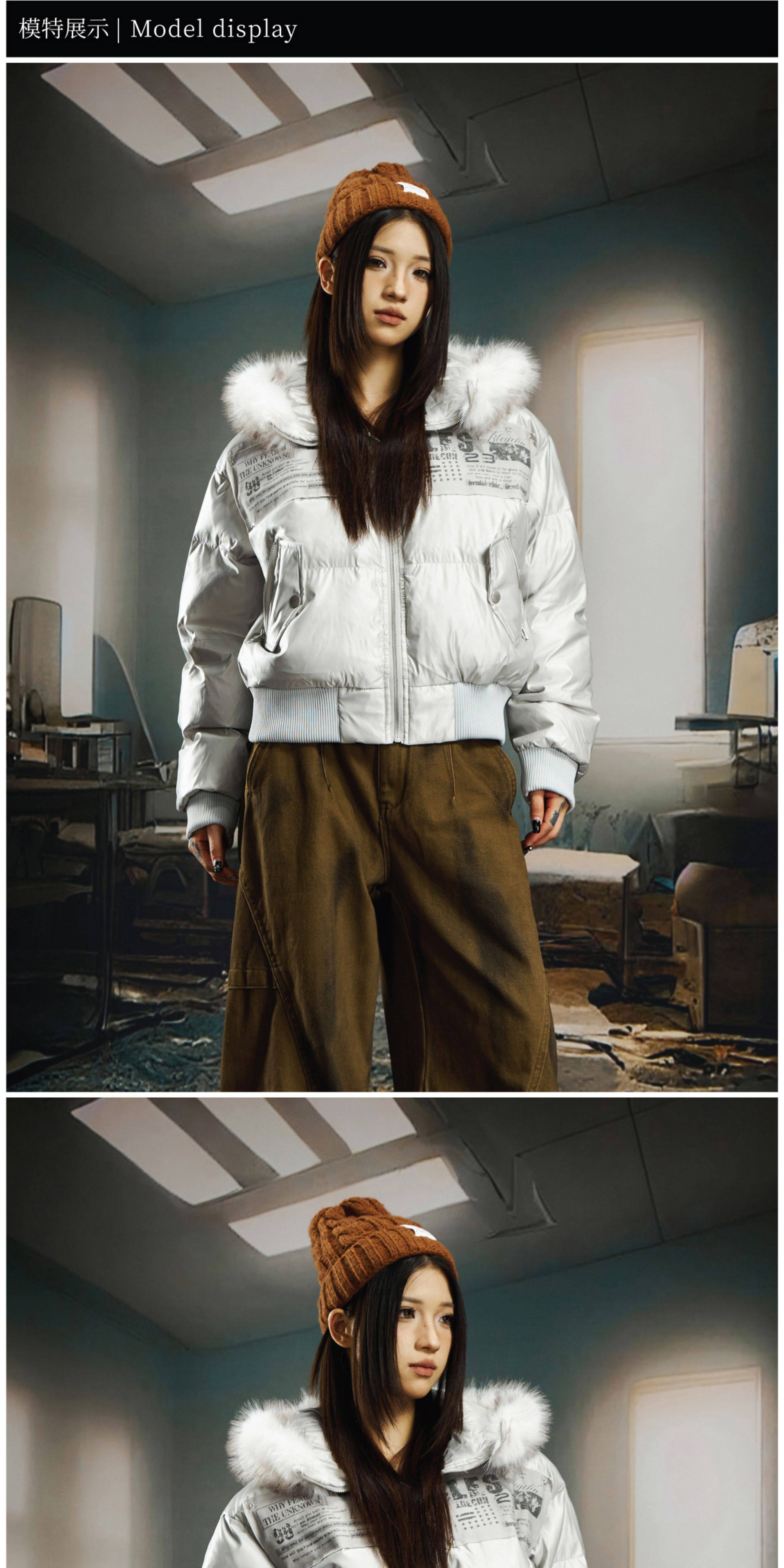 NOMANIAI Sticker Fur Collar Ultra-short Thickened Warm Cotton Clothes