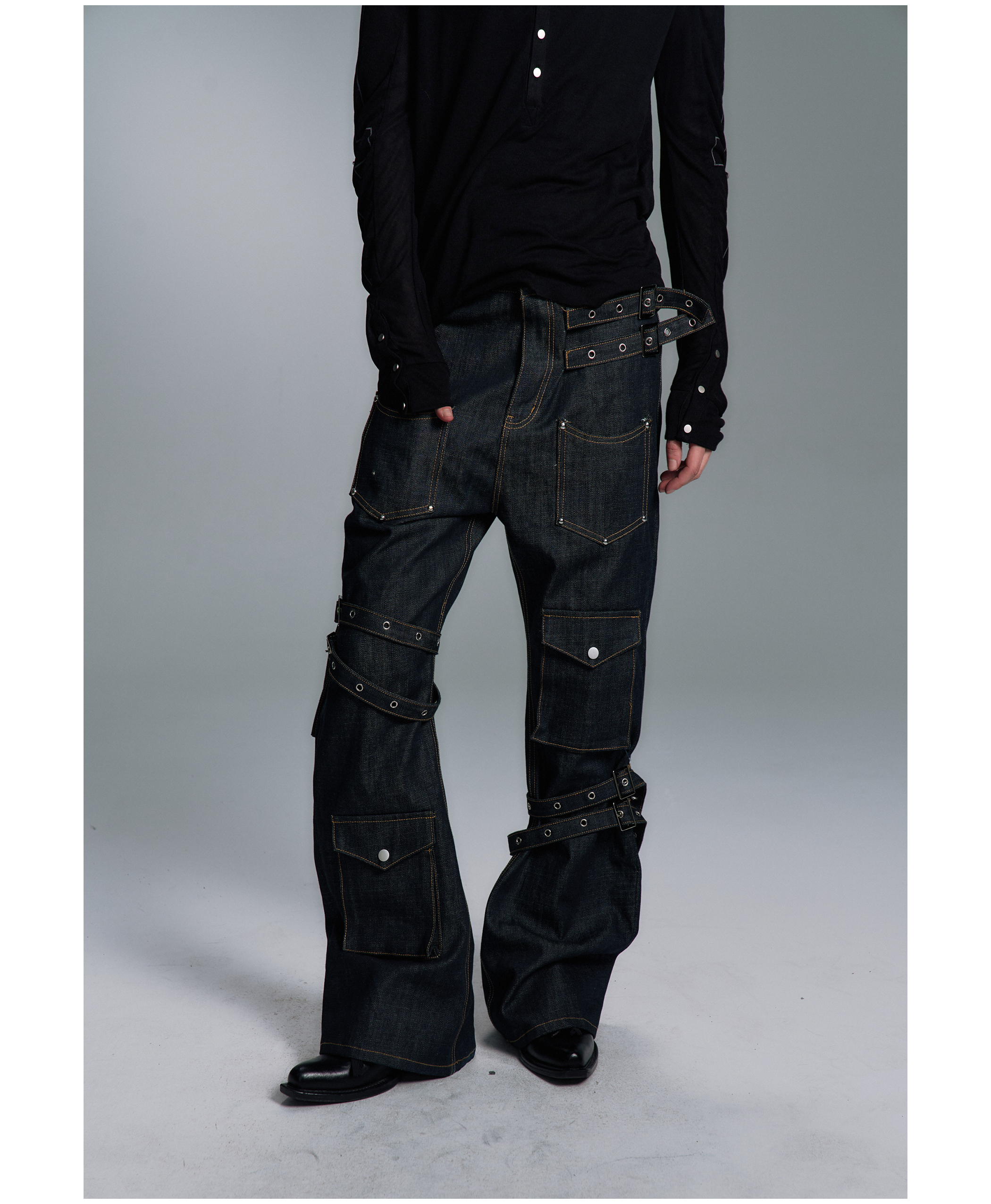 PAIKI Strap Straight Versatile Jeans
