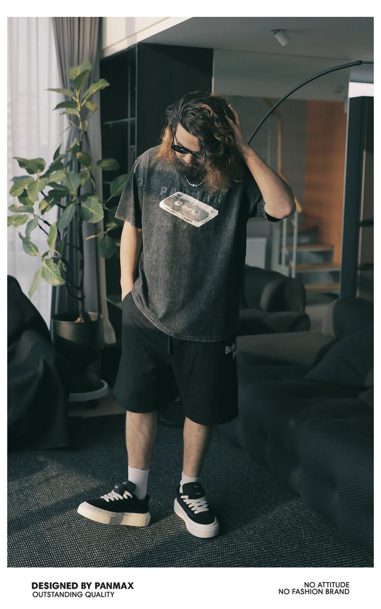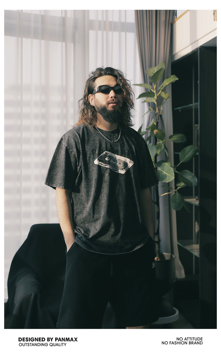 PANMAX Street Lazy Loose Car Old Printing Tee