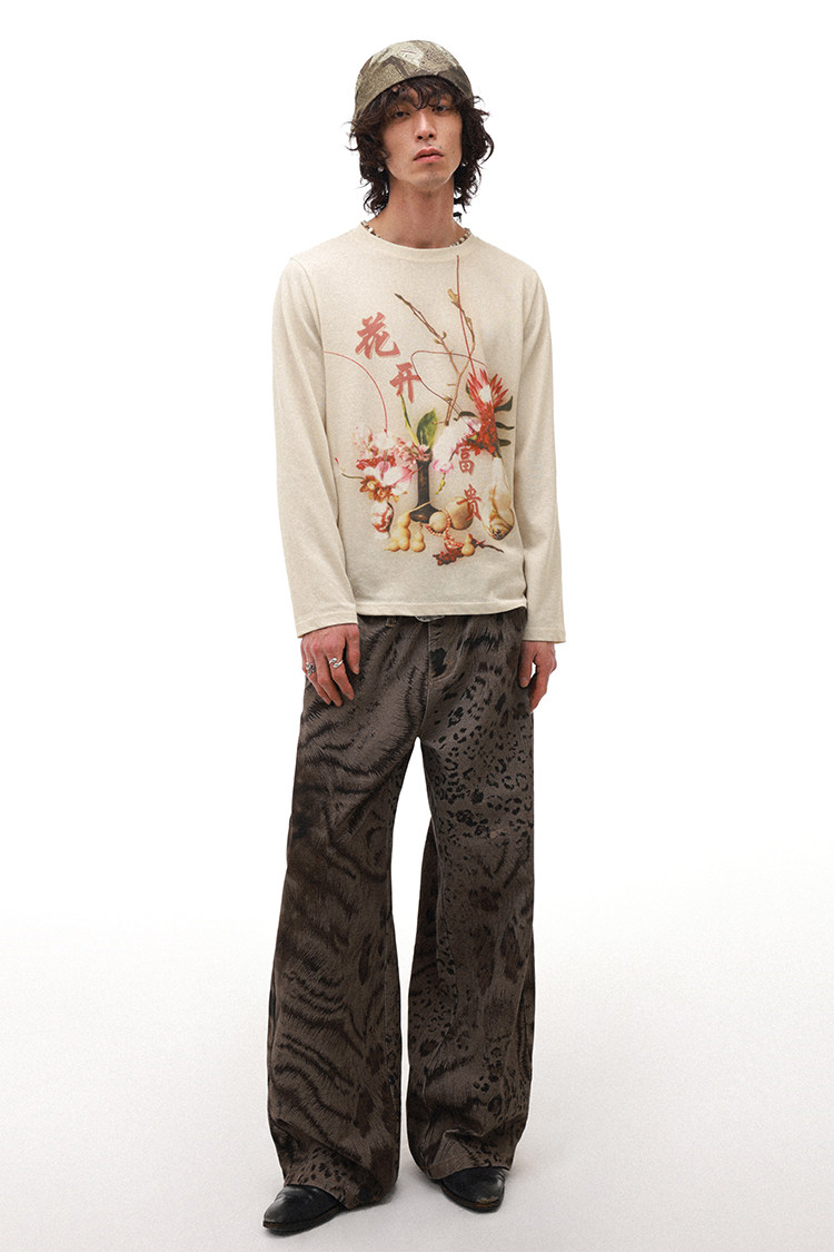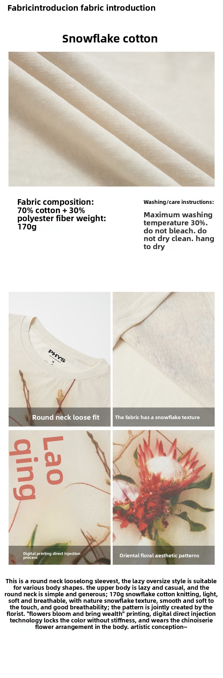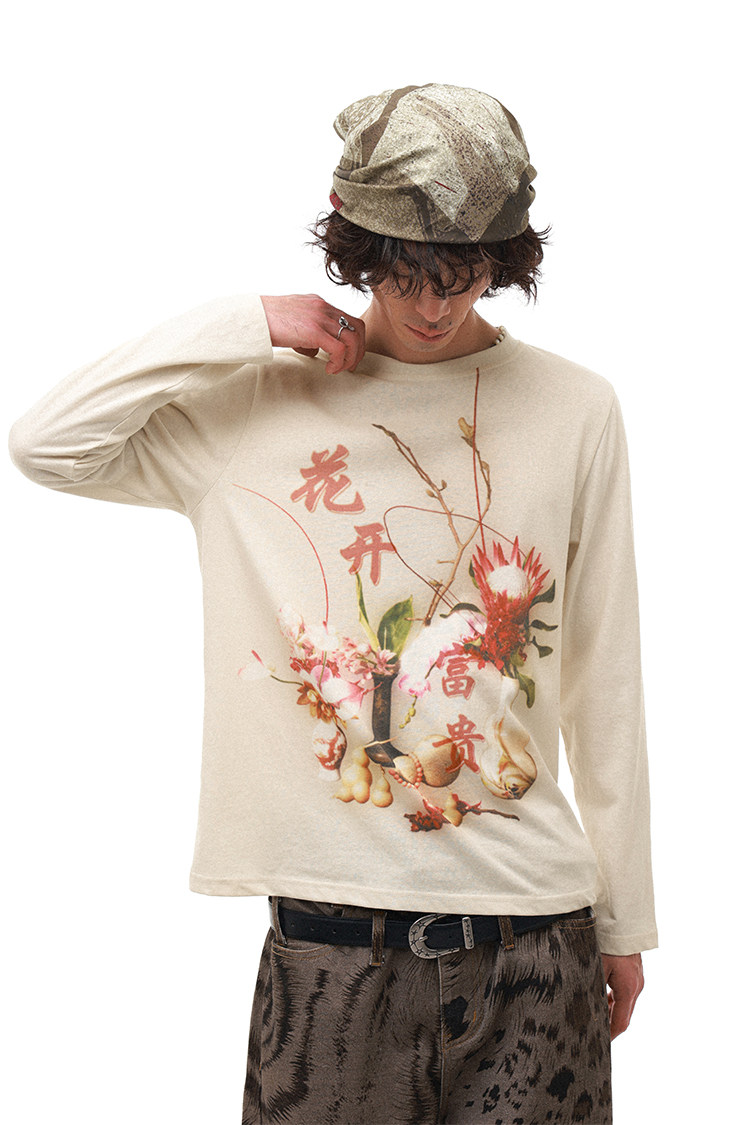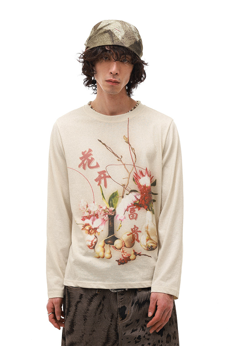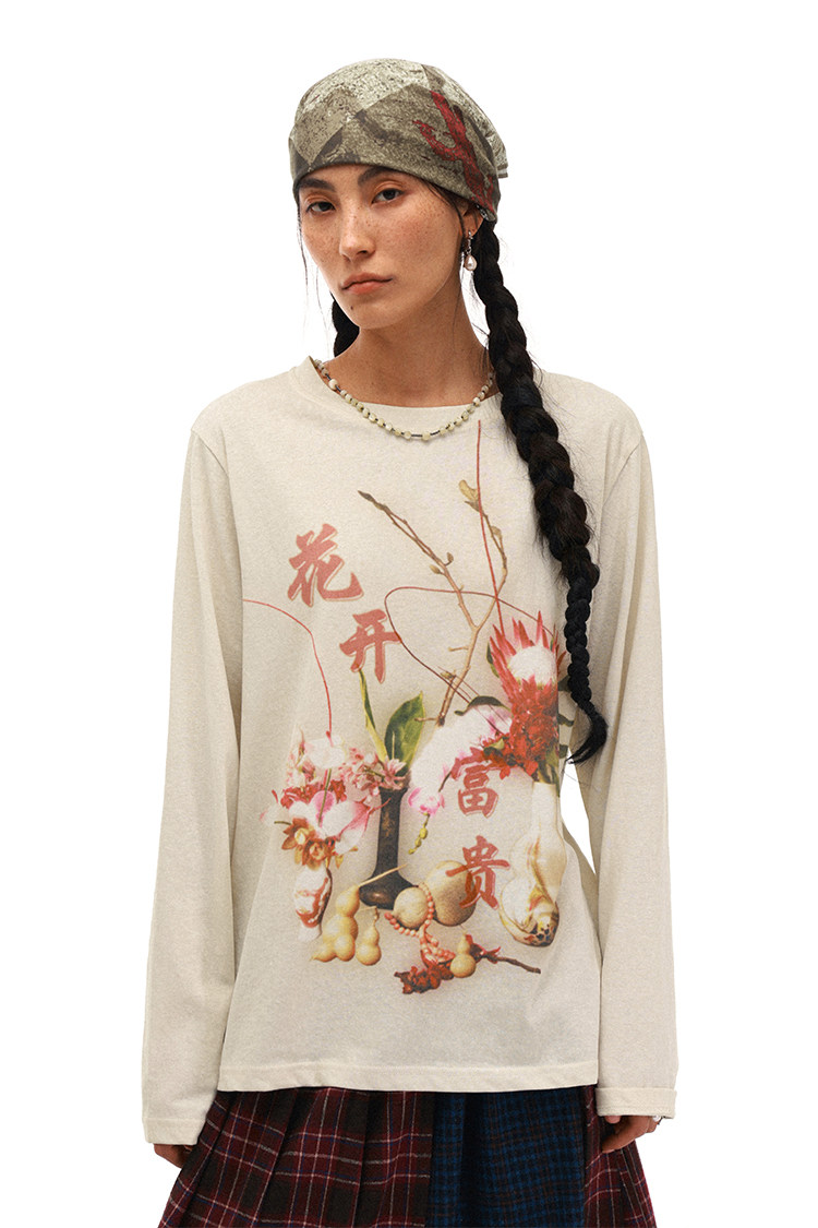 PHYS Chinese Floral Print Lazy Long-sleeved T-shirt