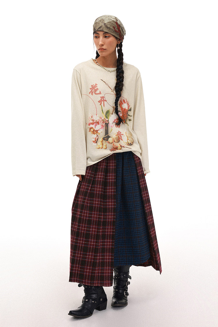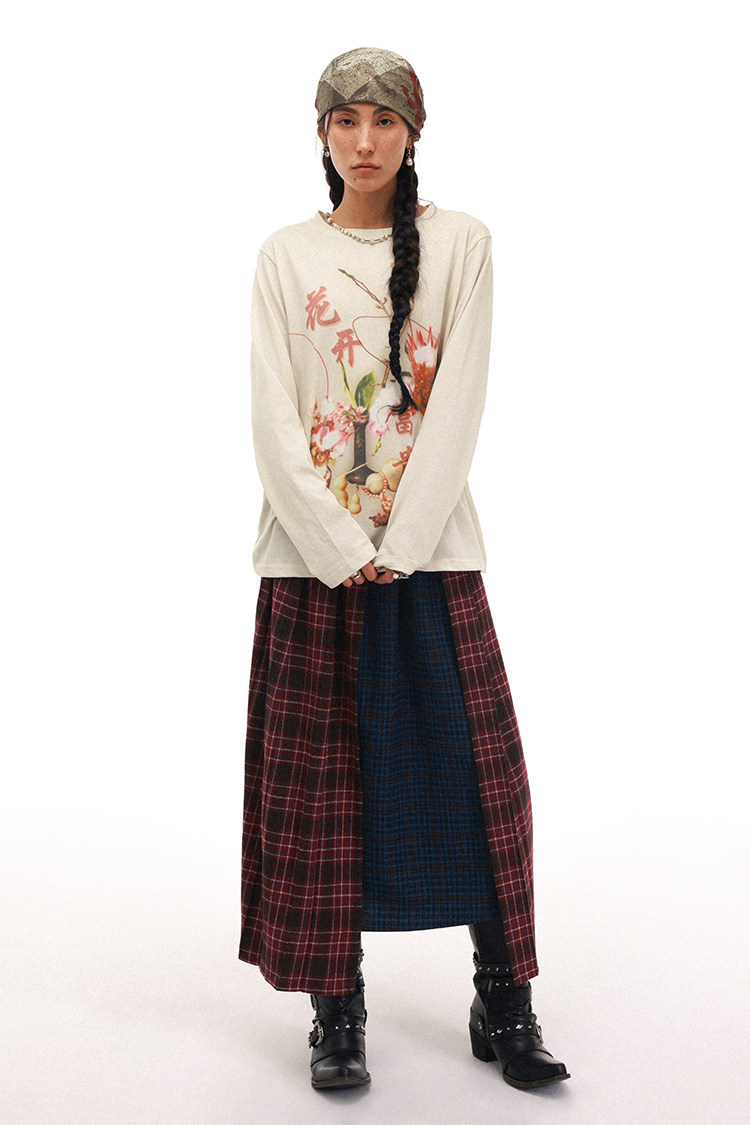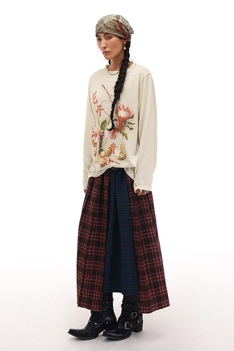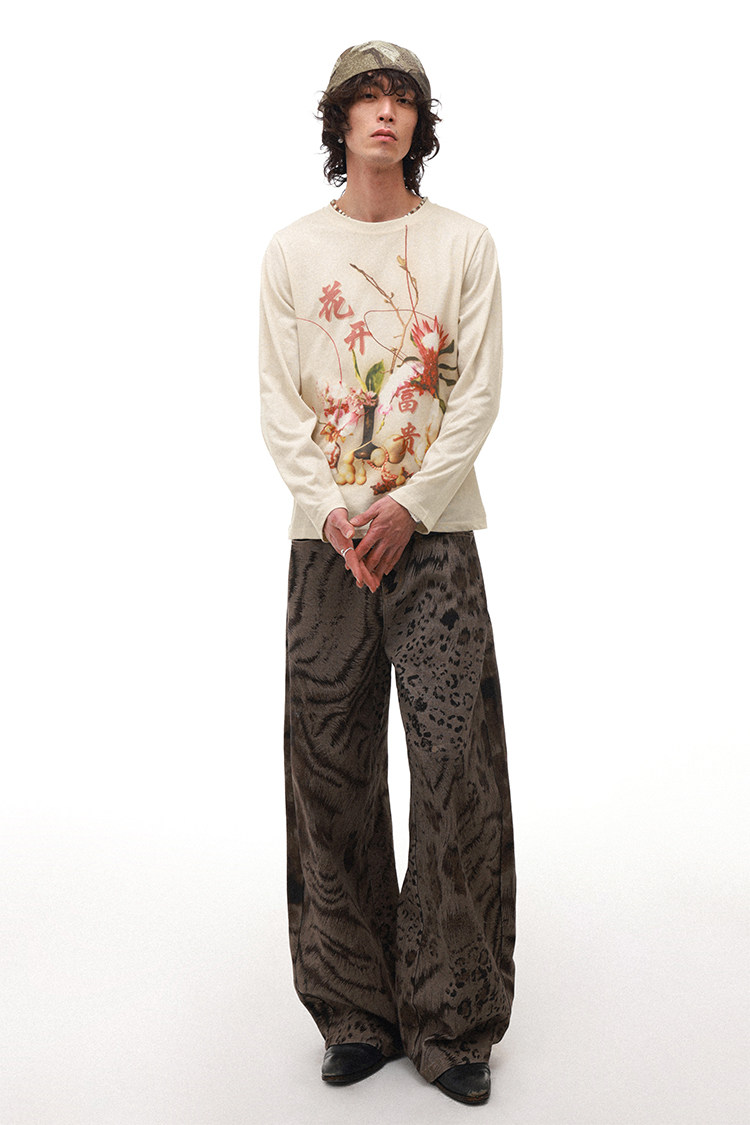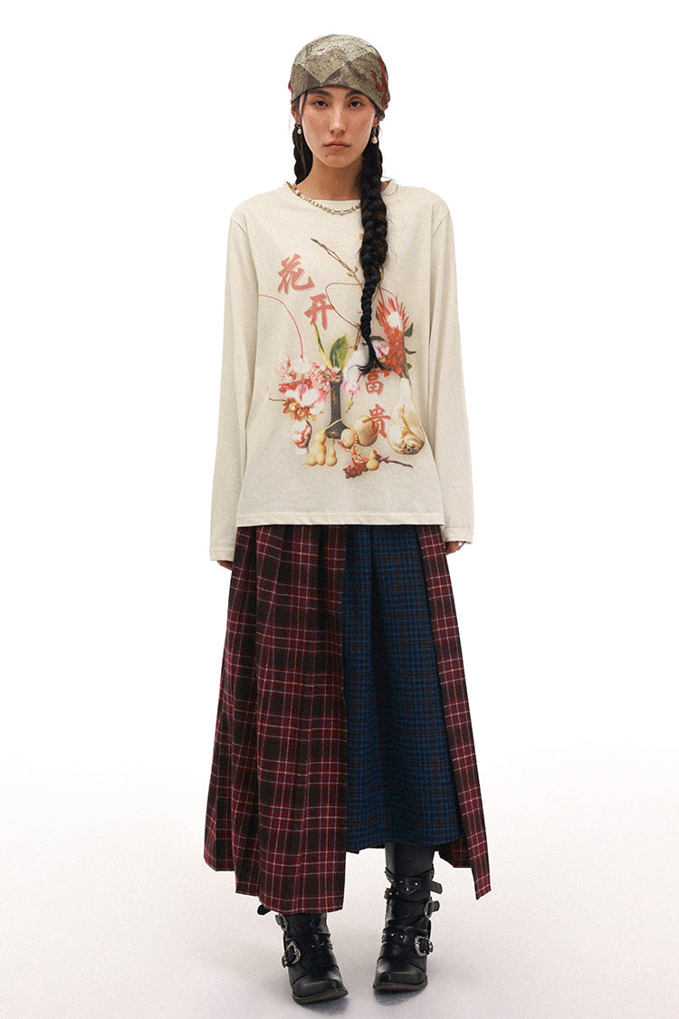 PHYS Chinese Floral Print Lazy Long-sleeved T-shirt