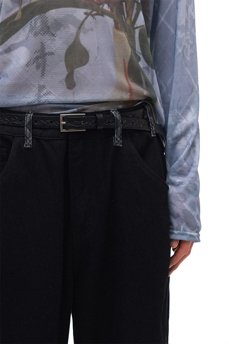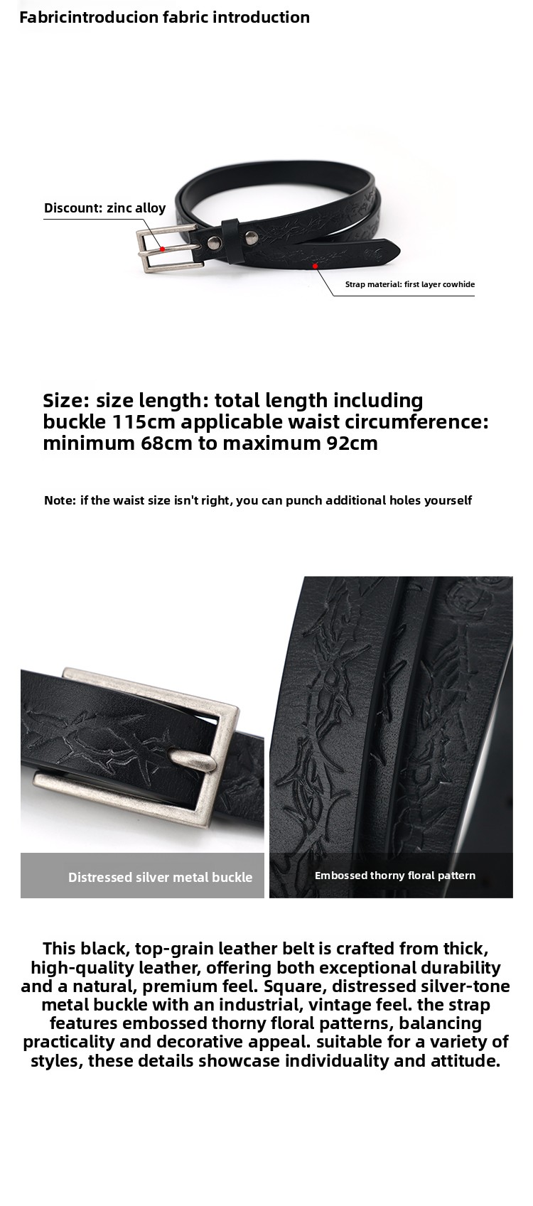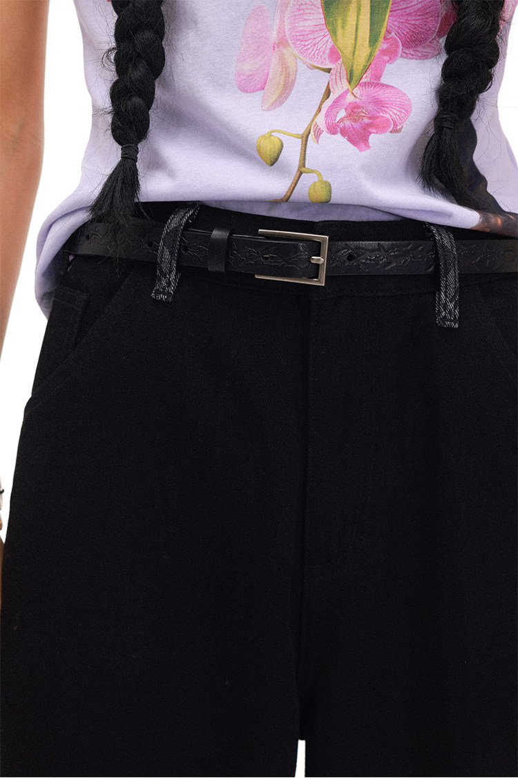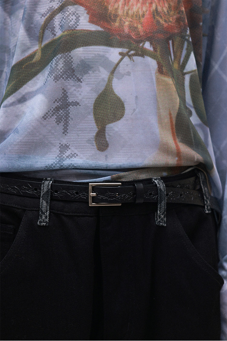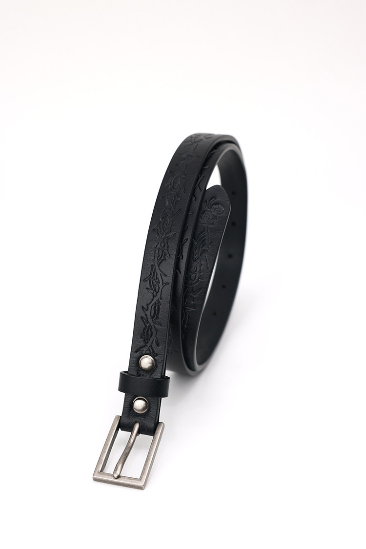 PHYS Retro Embossed Thorn Flower First Layer Cowhide Belt