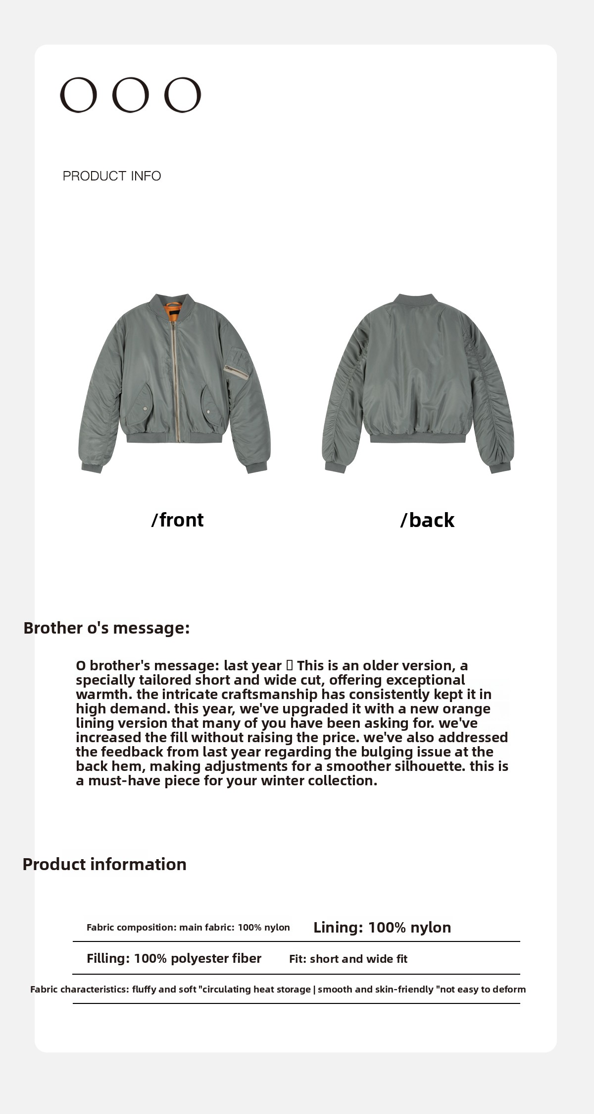 PLUS NO LOGO 25AW MA1 short and wide cotton bomber jacket