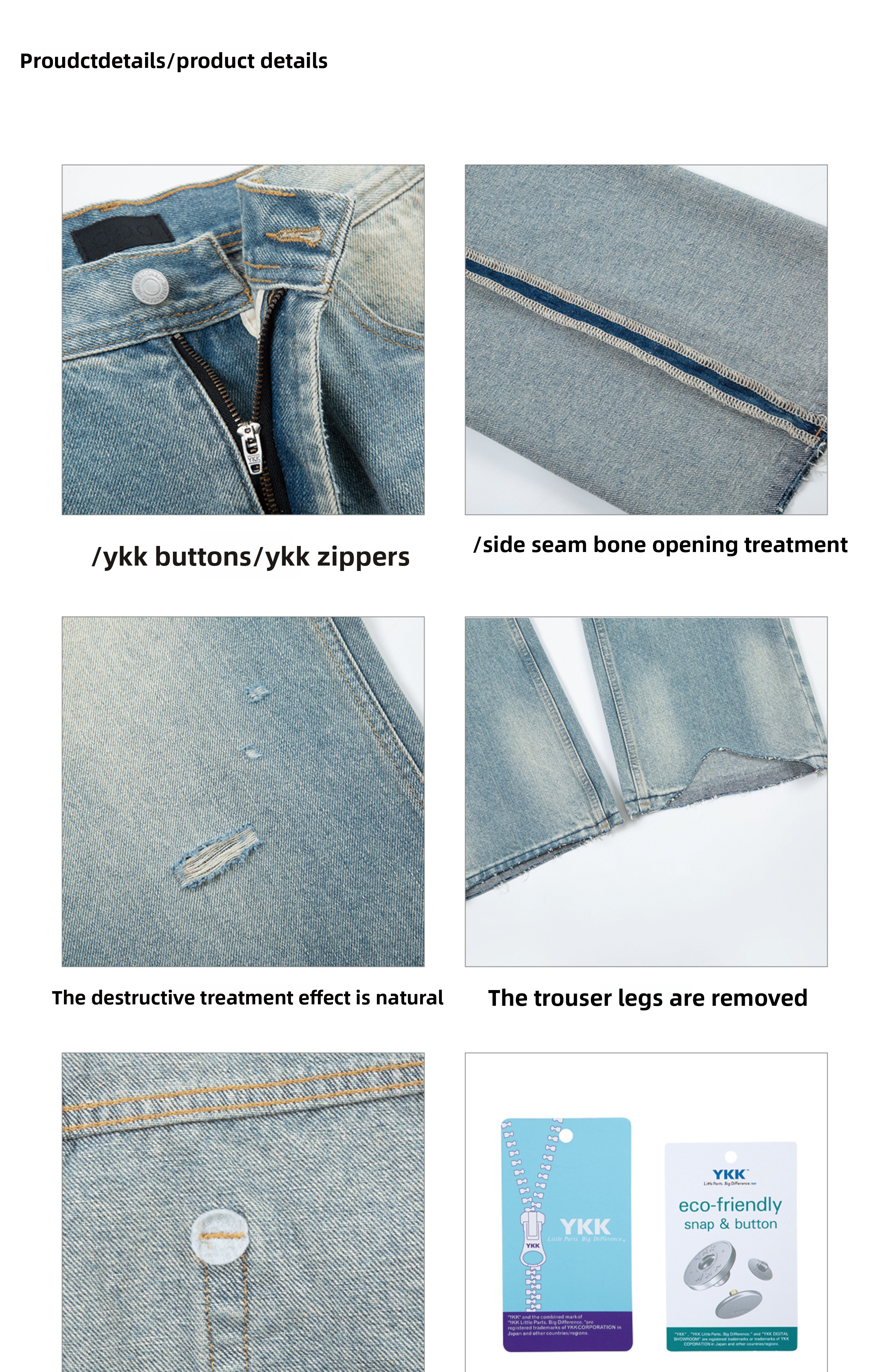 PLUS NO LOGO Damage Rim Removal Straight Tube Micro-pull Jeans
