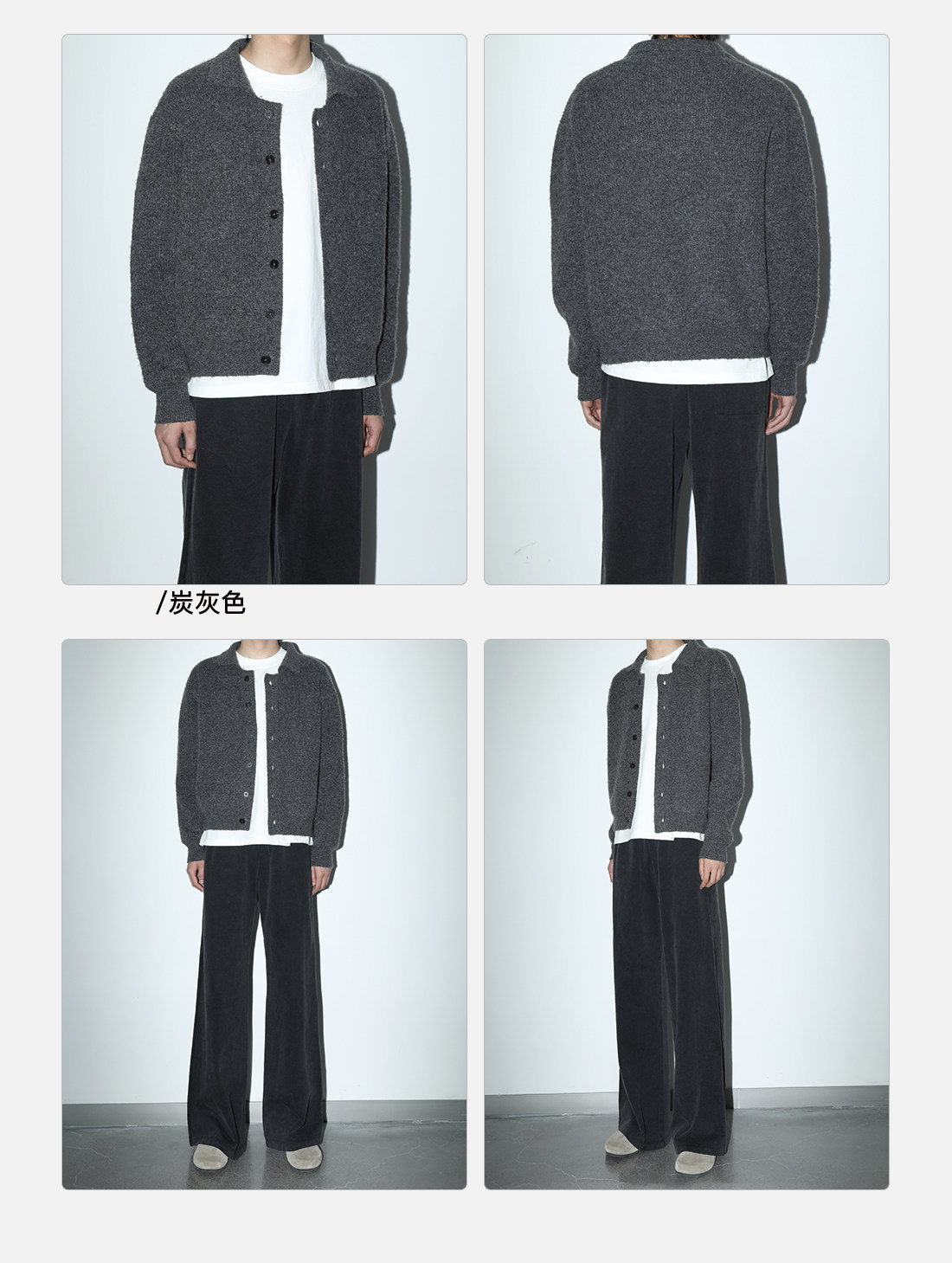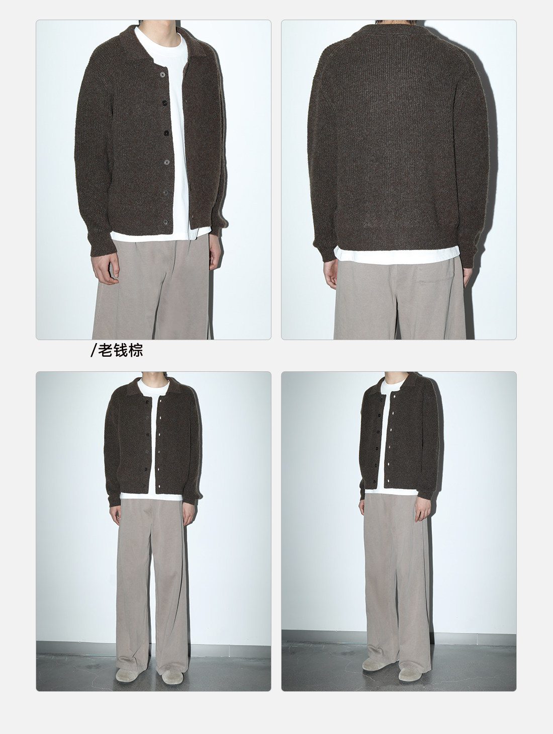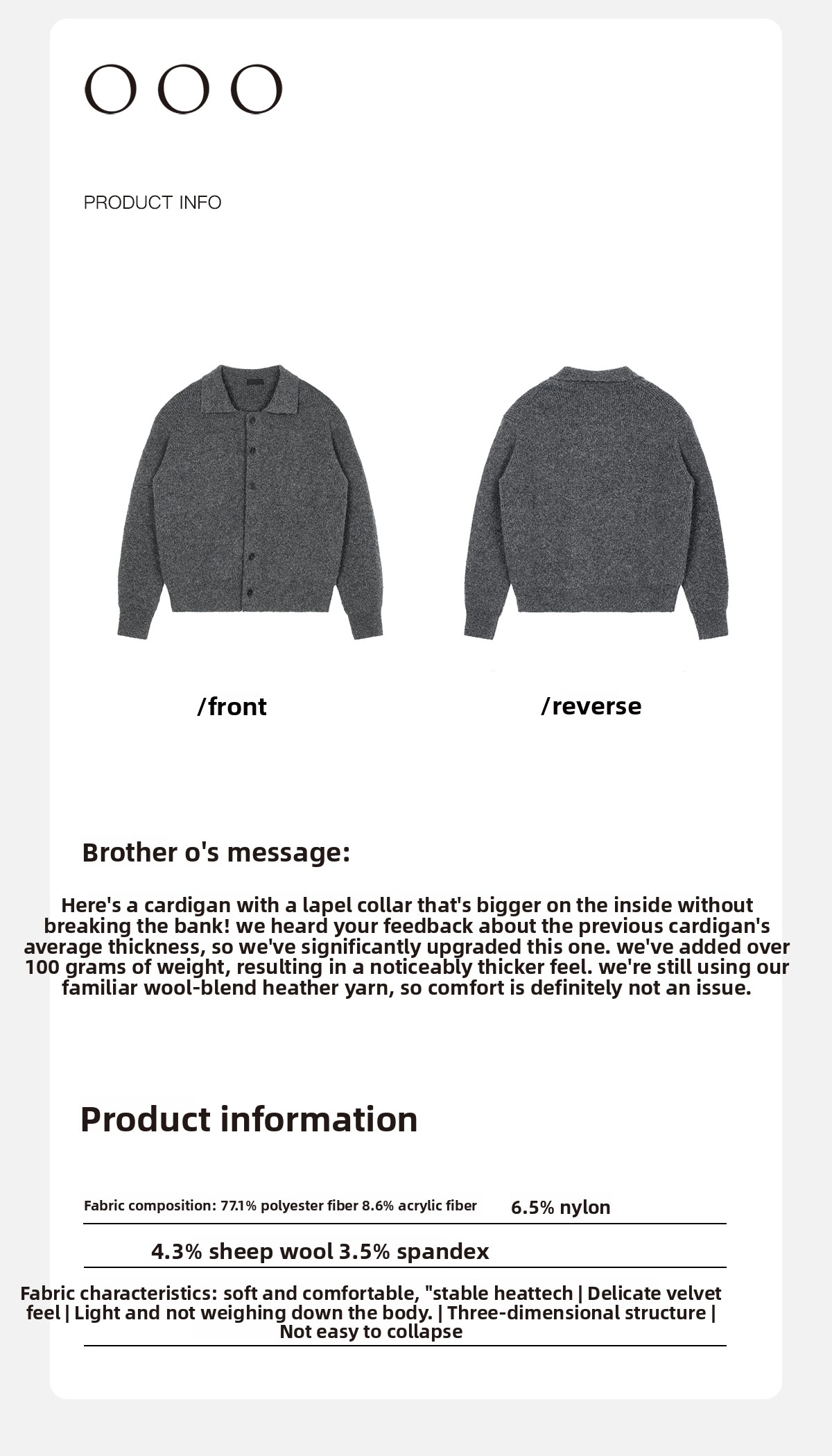 PLUS NO LOGO Thickened Lapel Short Sweater Cardigan