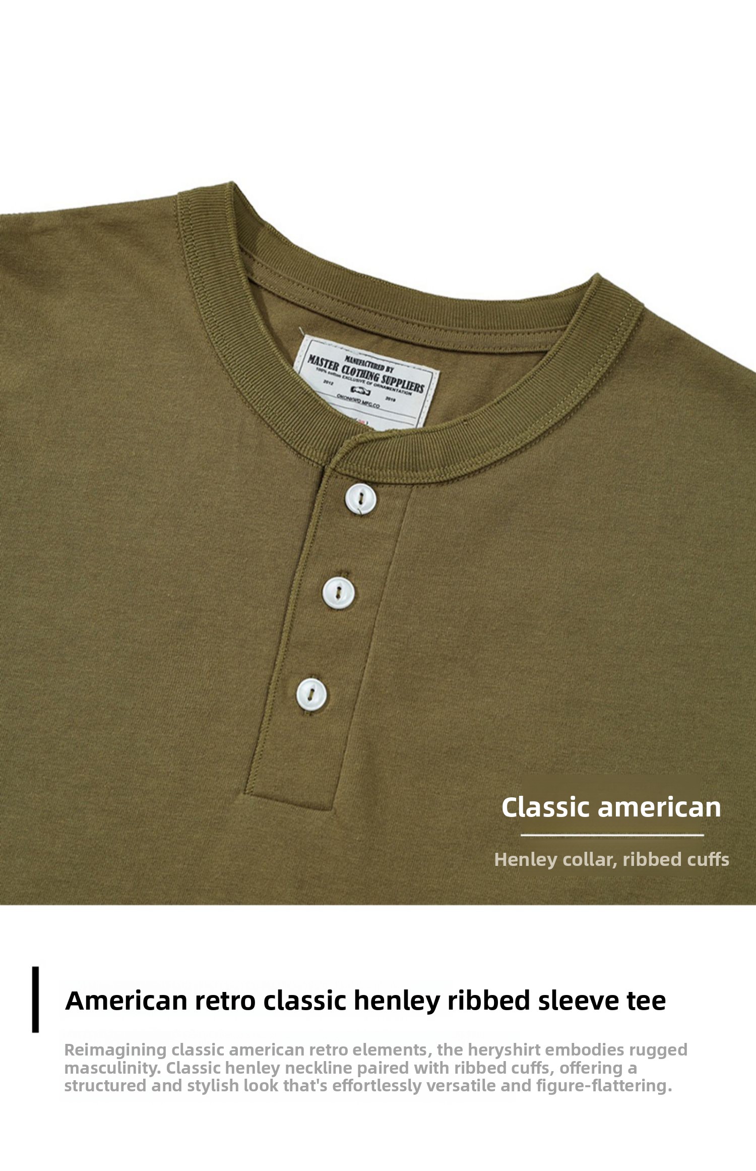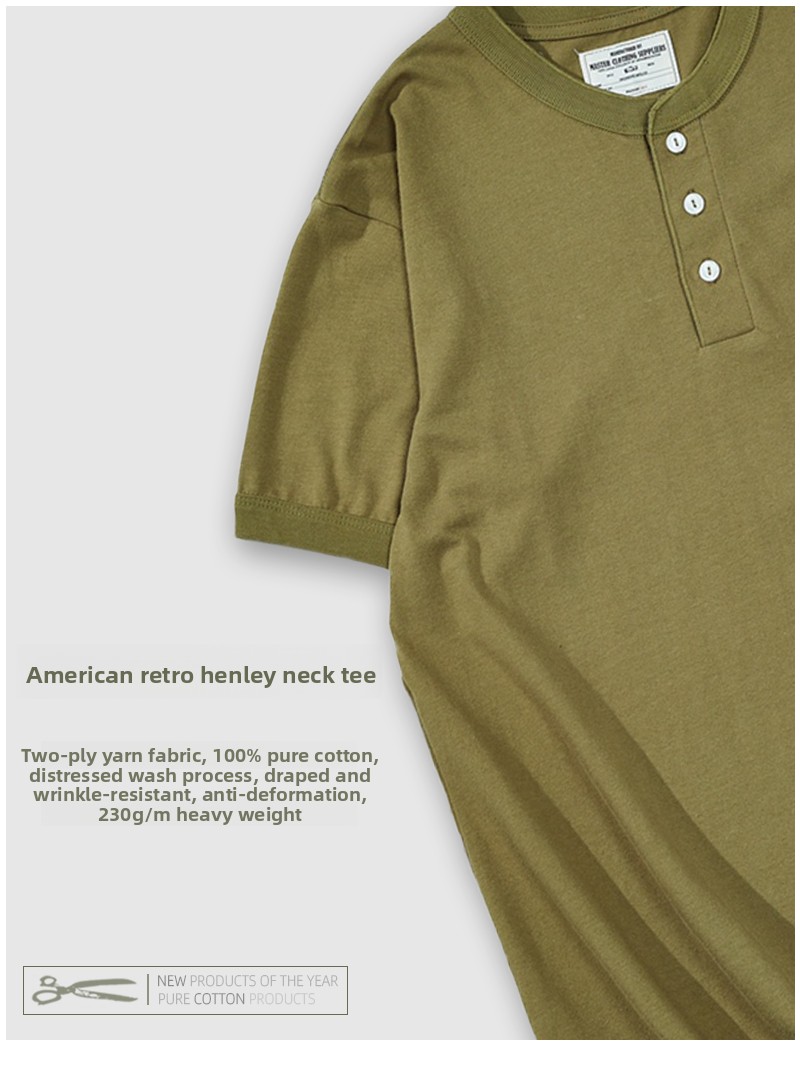 PrintAce Vintage Henry Neck Button Shirt TEE