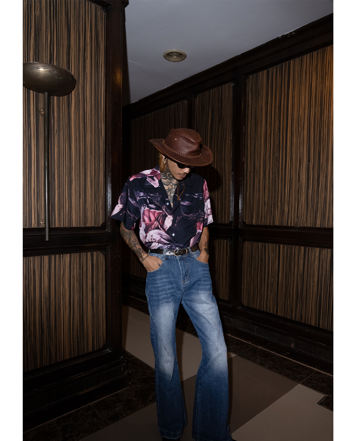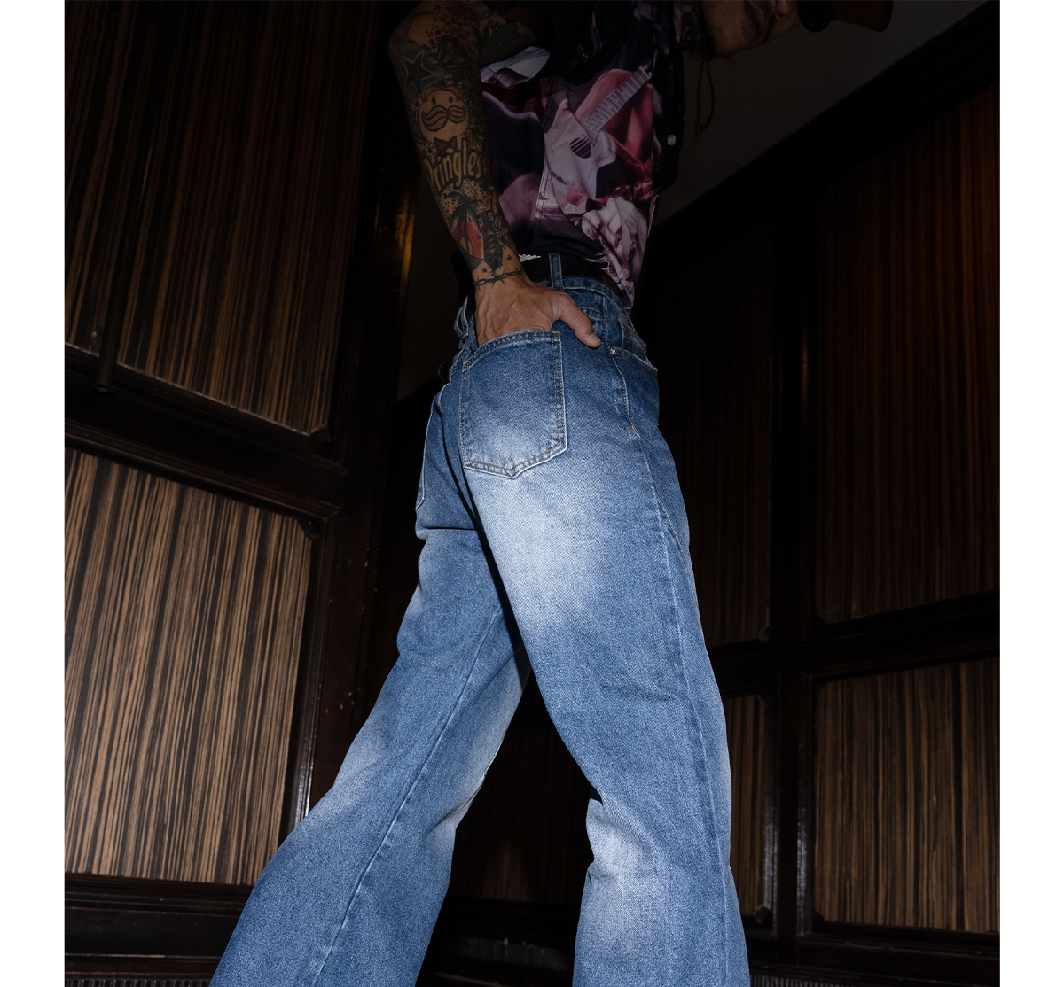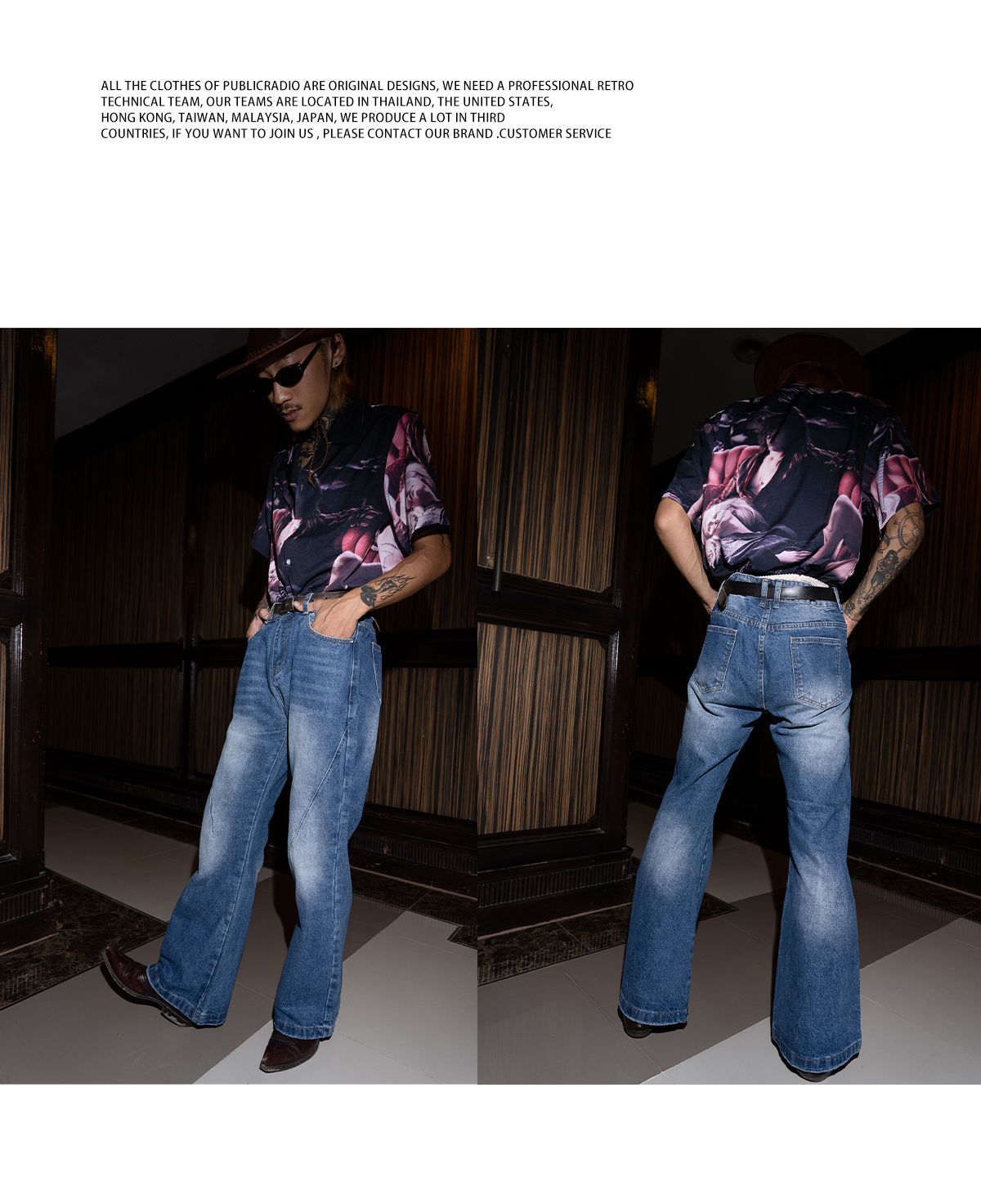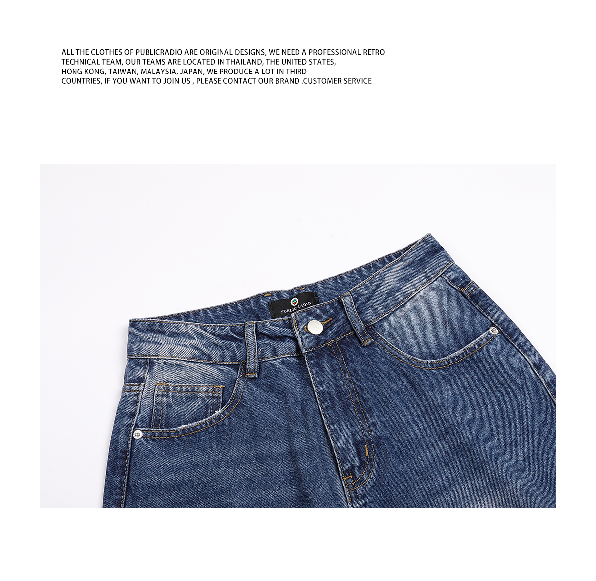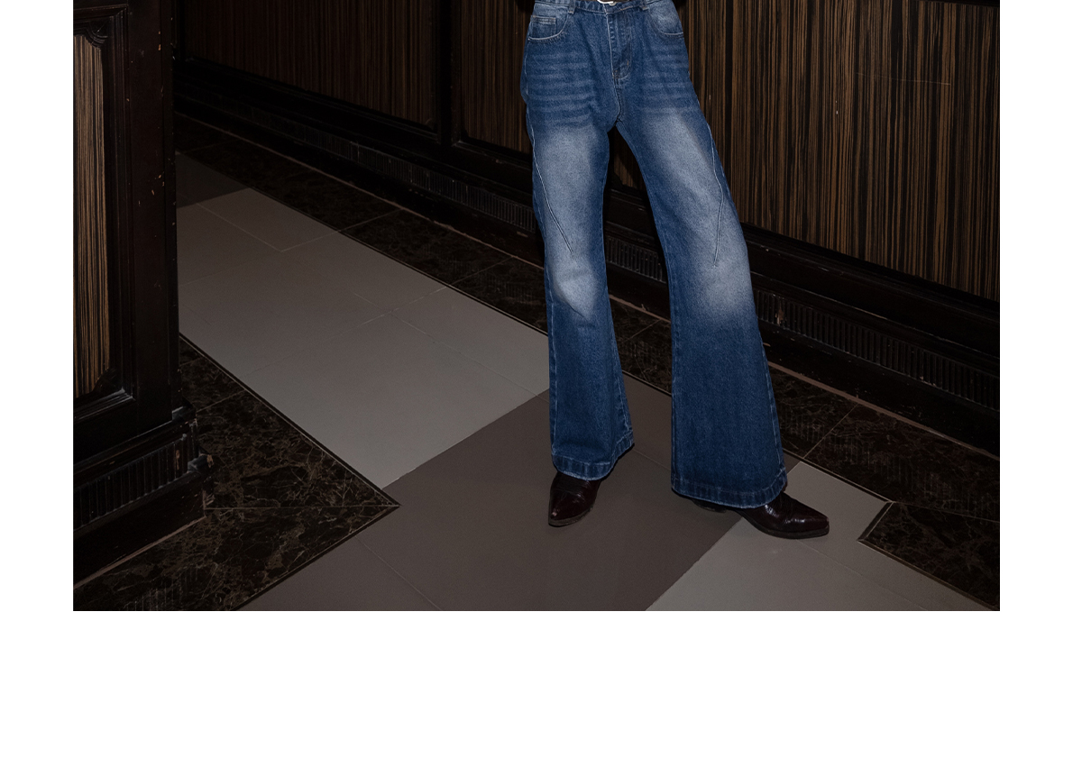 PUBLICRADIO Vintage Stitched Washed Denim Flared Pants
