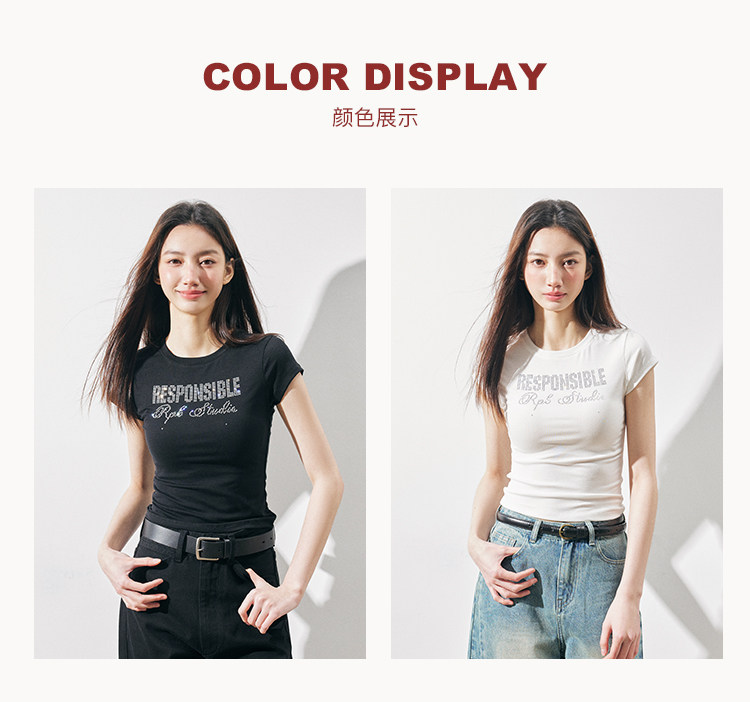 RPB BRAND Hot Diamond Crew Neck Slim Spice Girl Short Tee