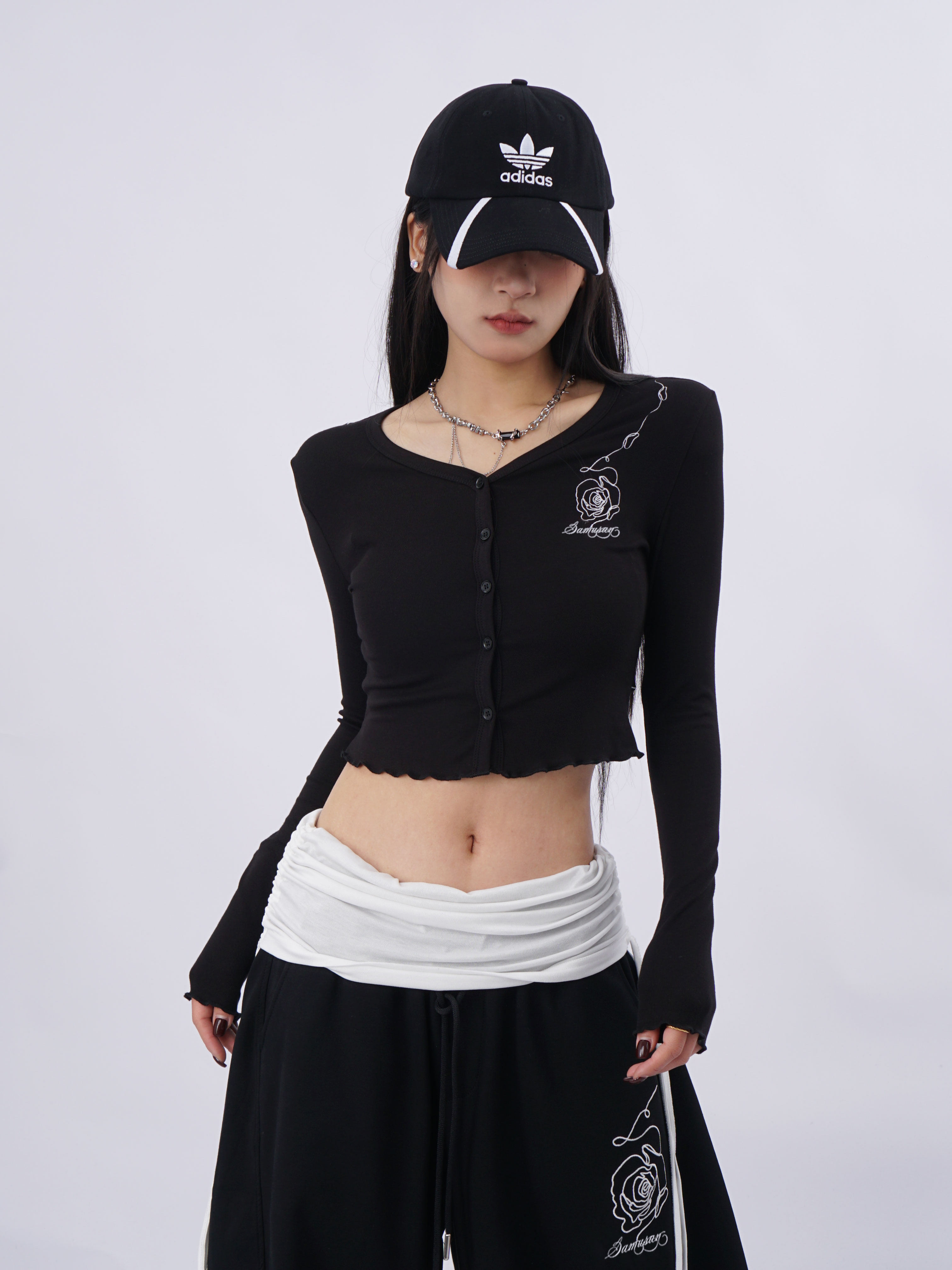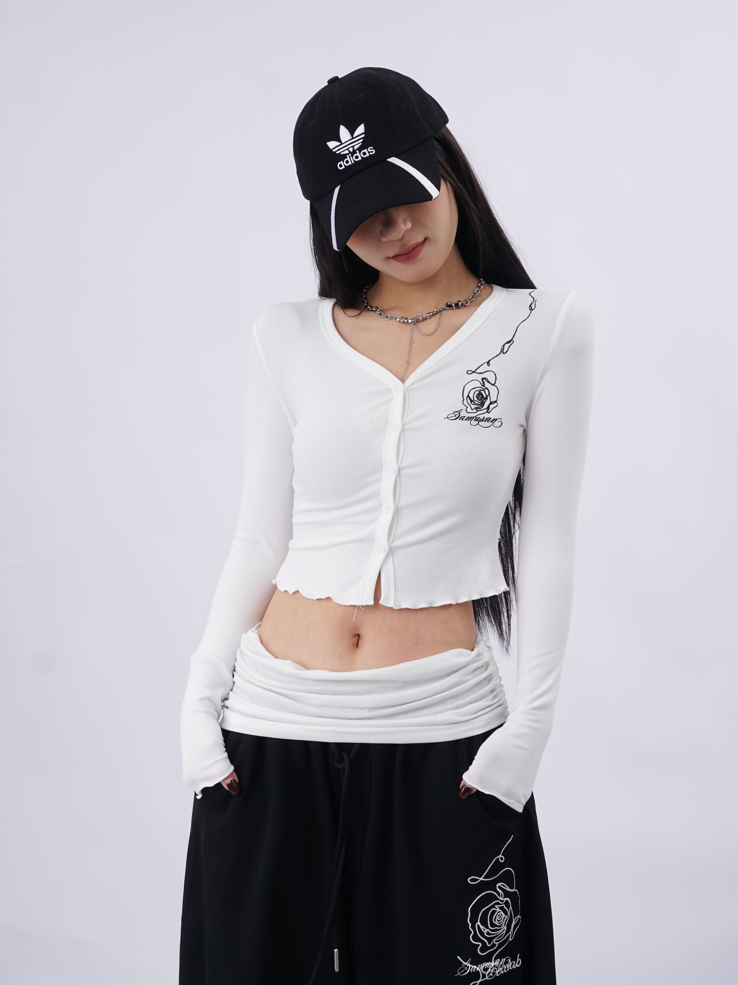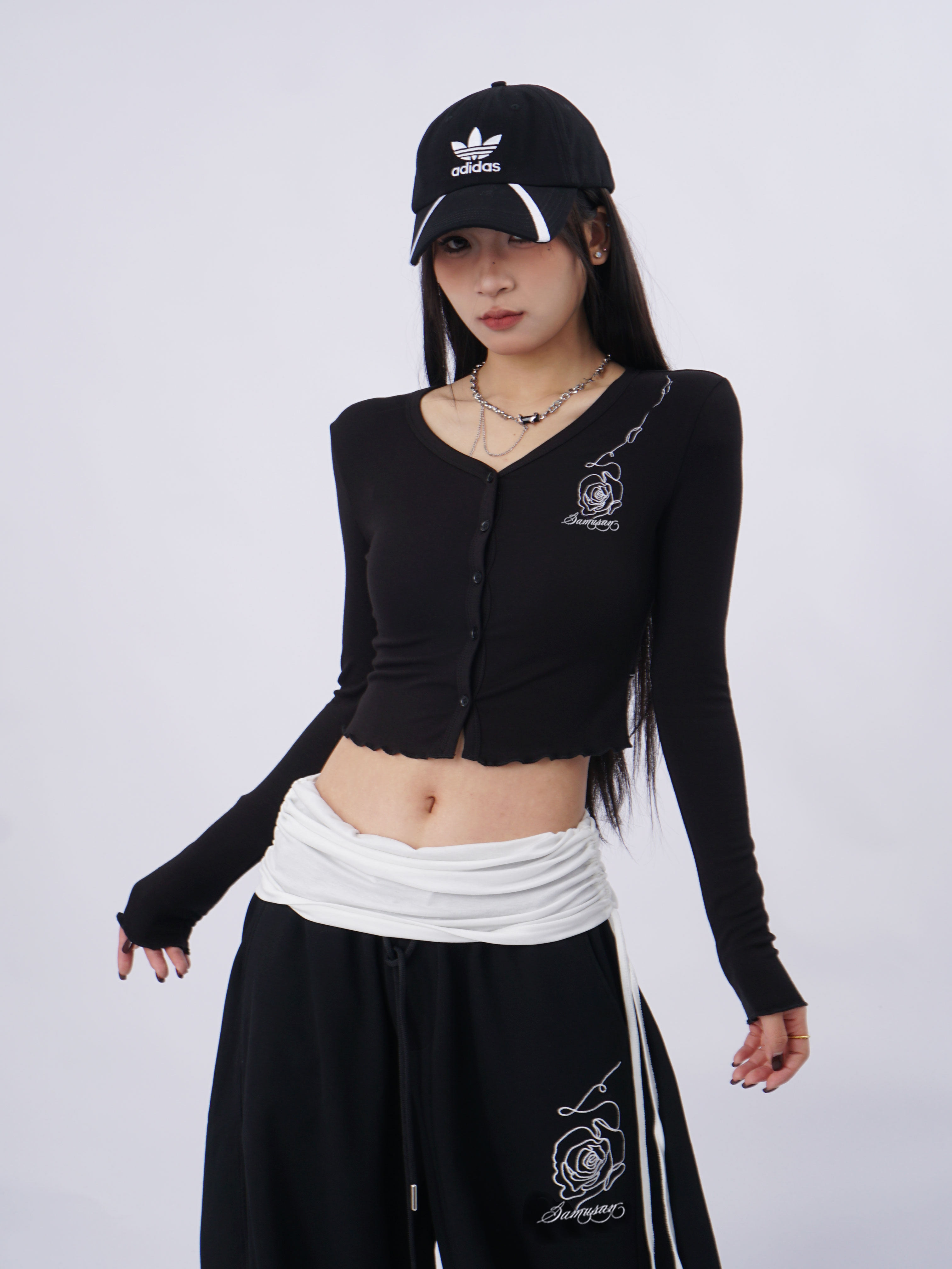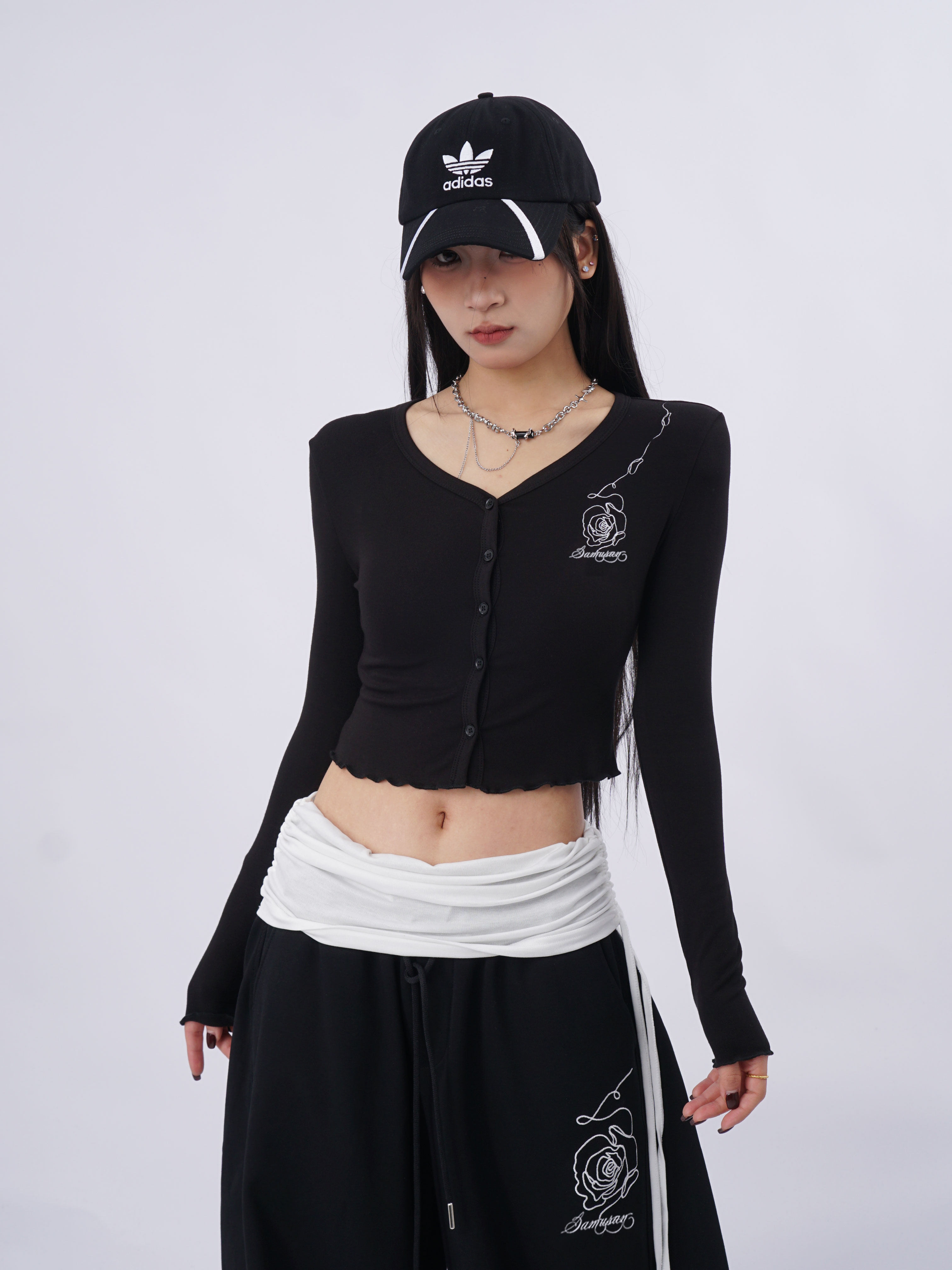 SAMUSAN V-neck Single-breasted Short Long Sleeve