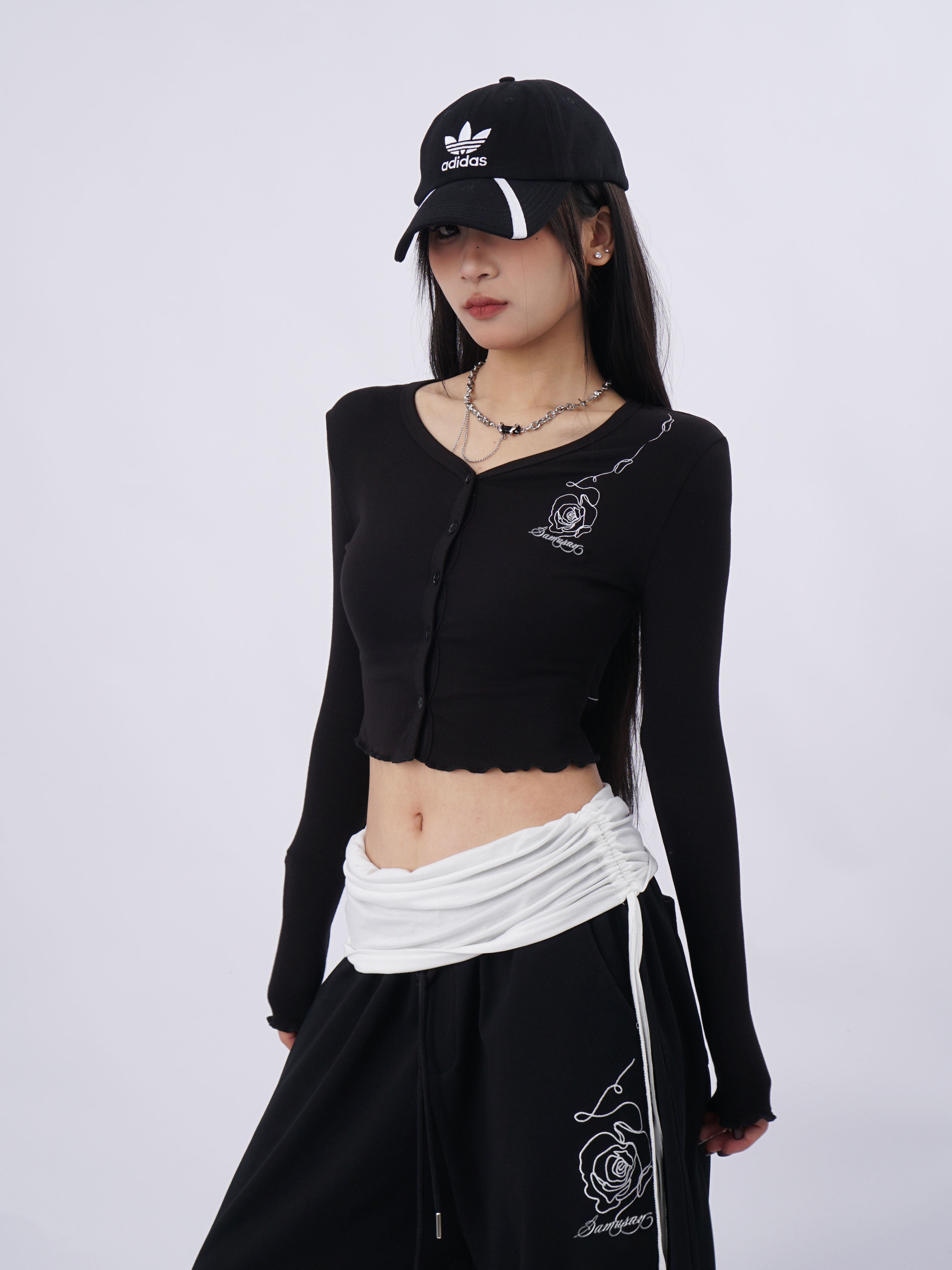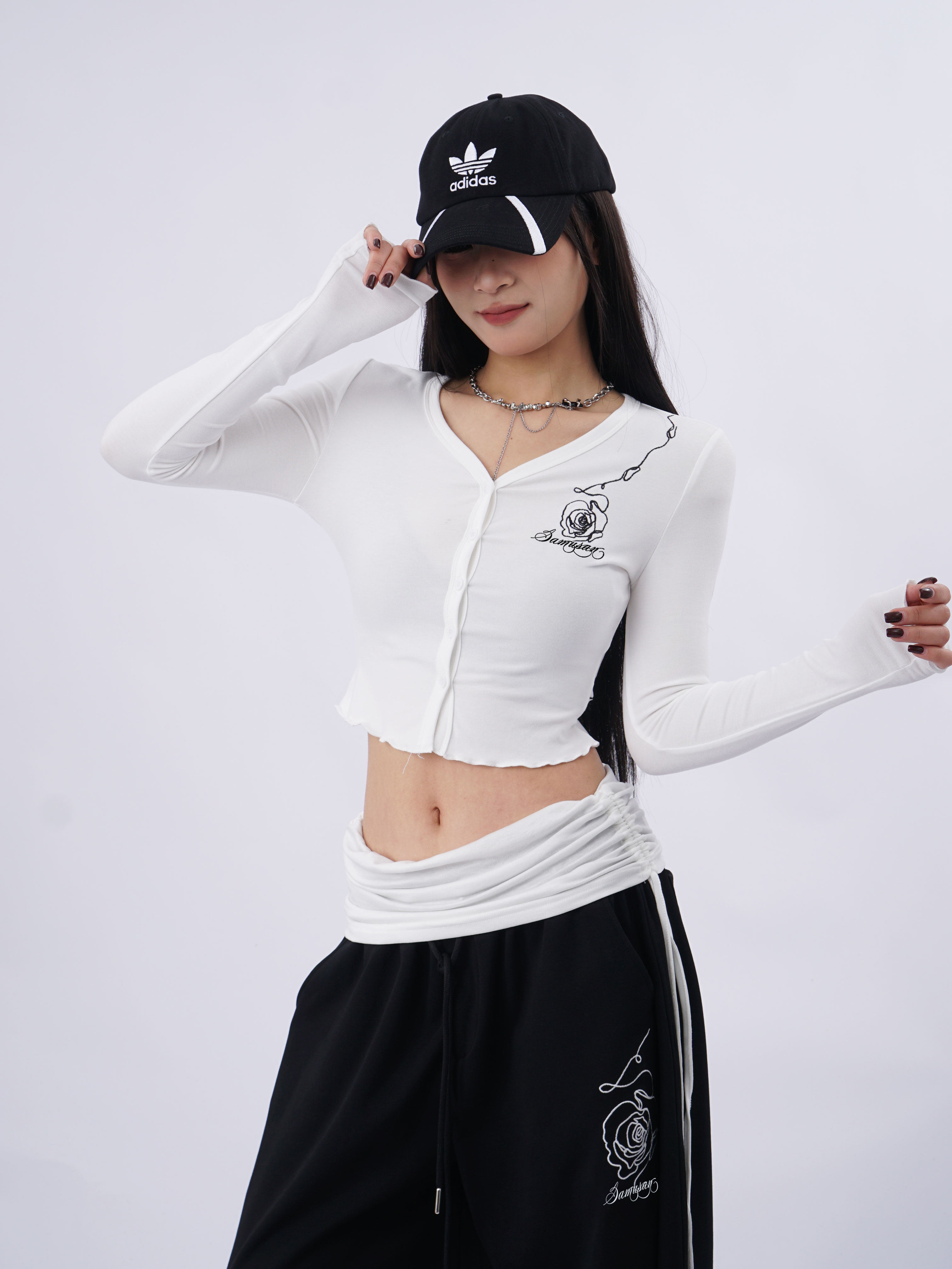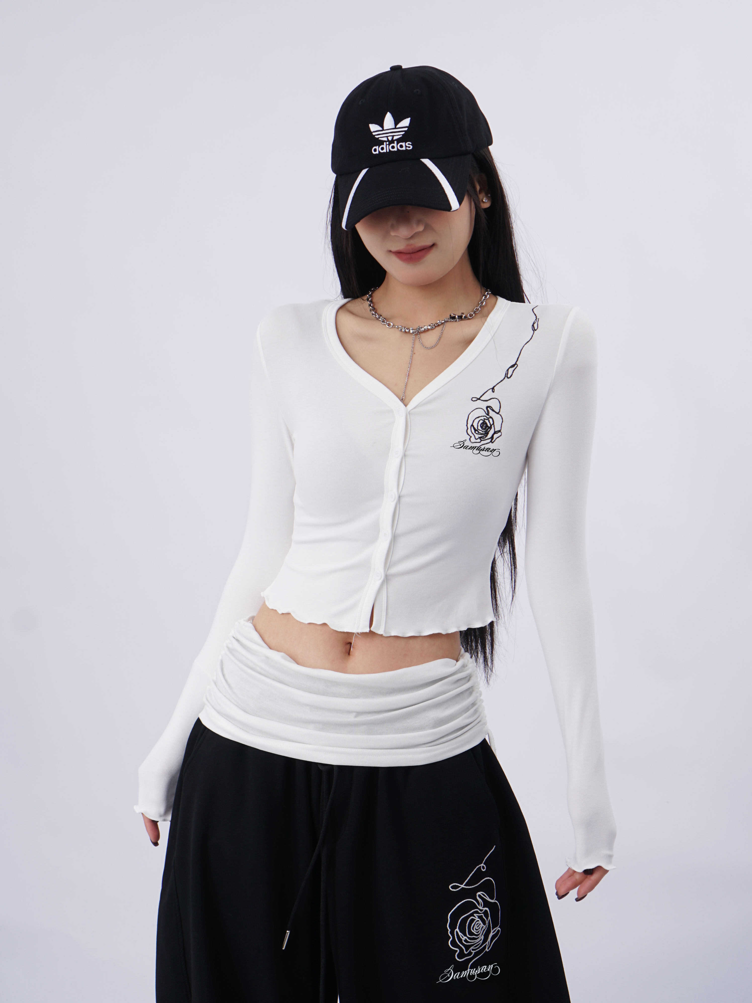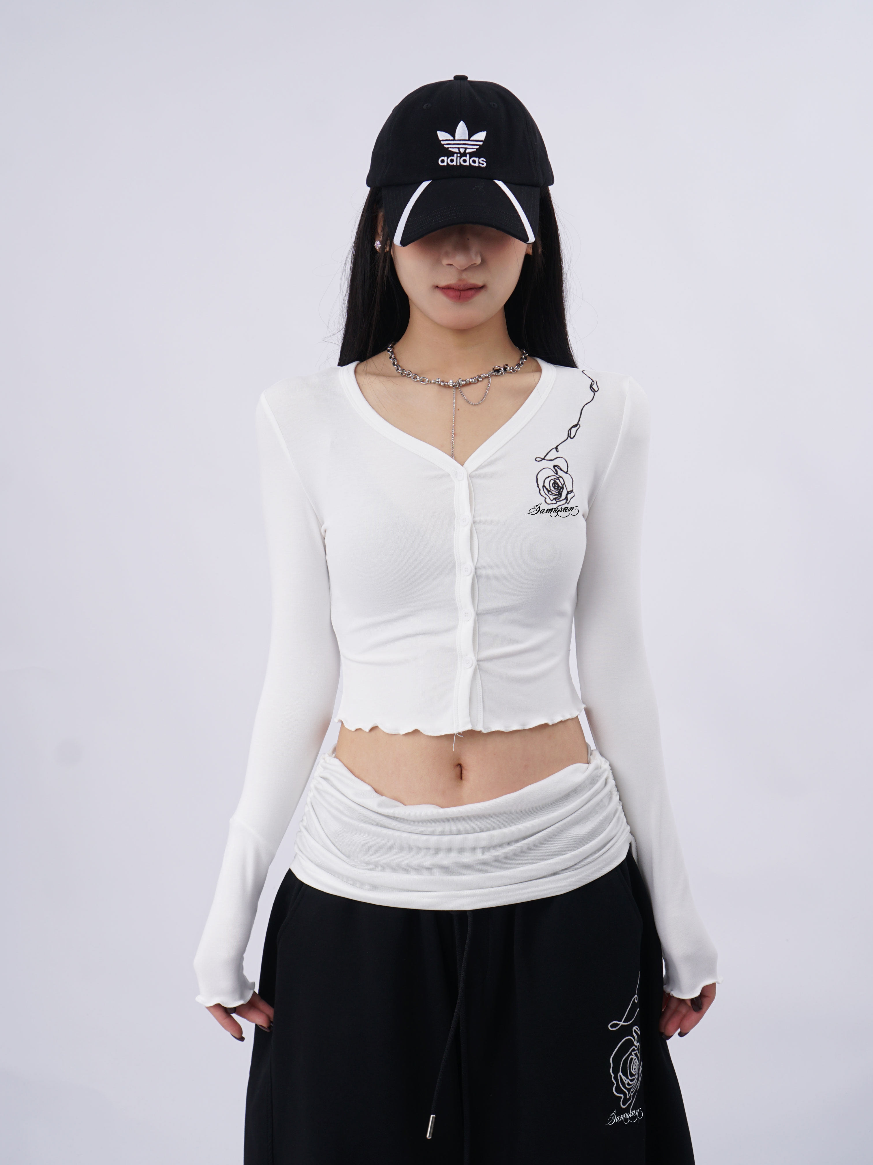 SAMUSAN V-neck Single-breasted Short Long Sleeve