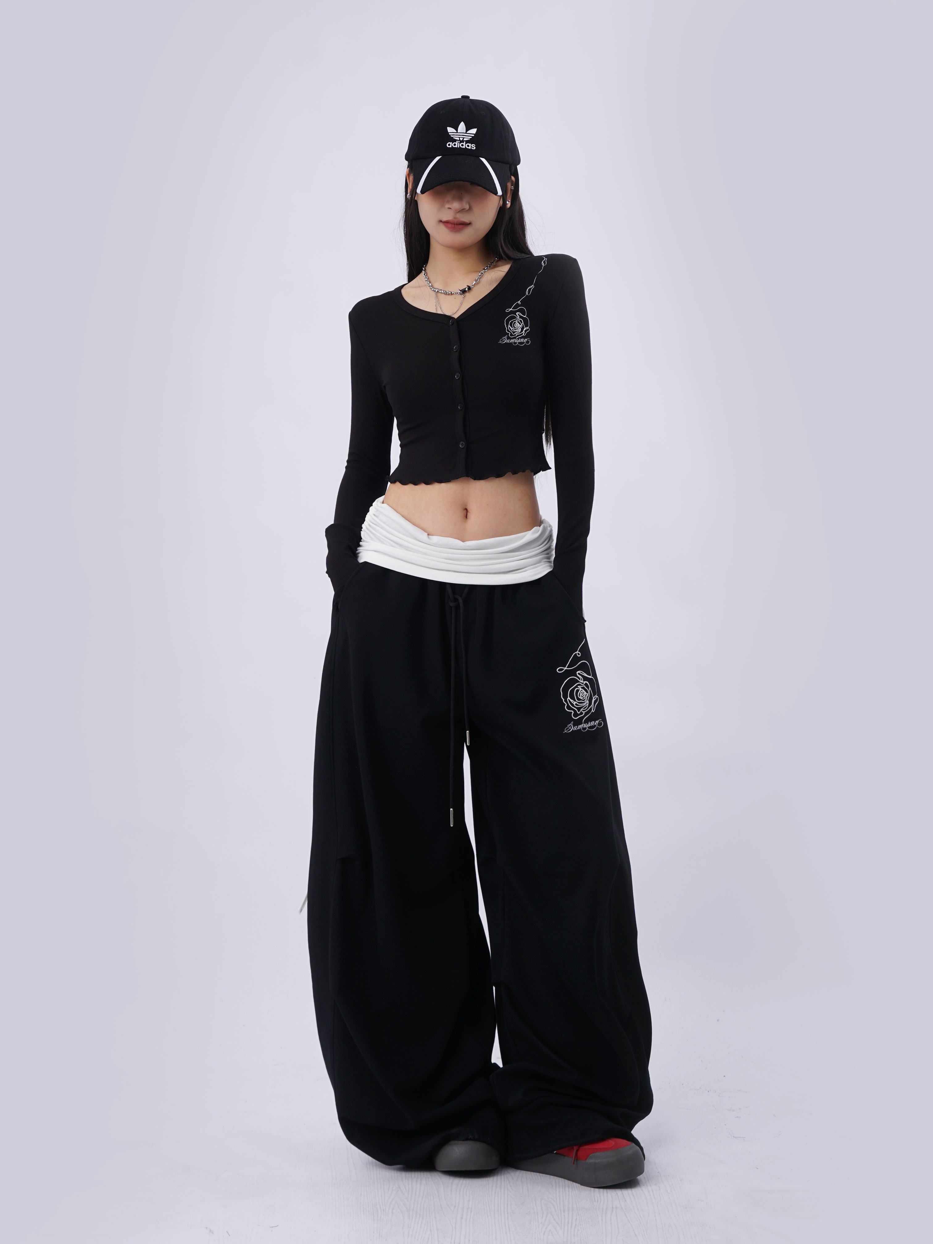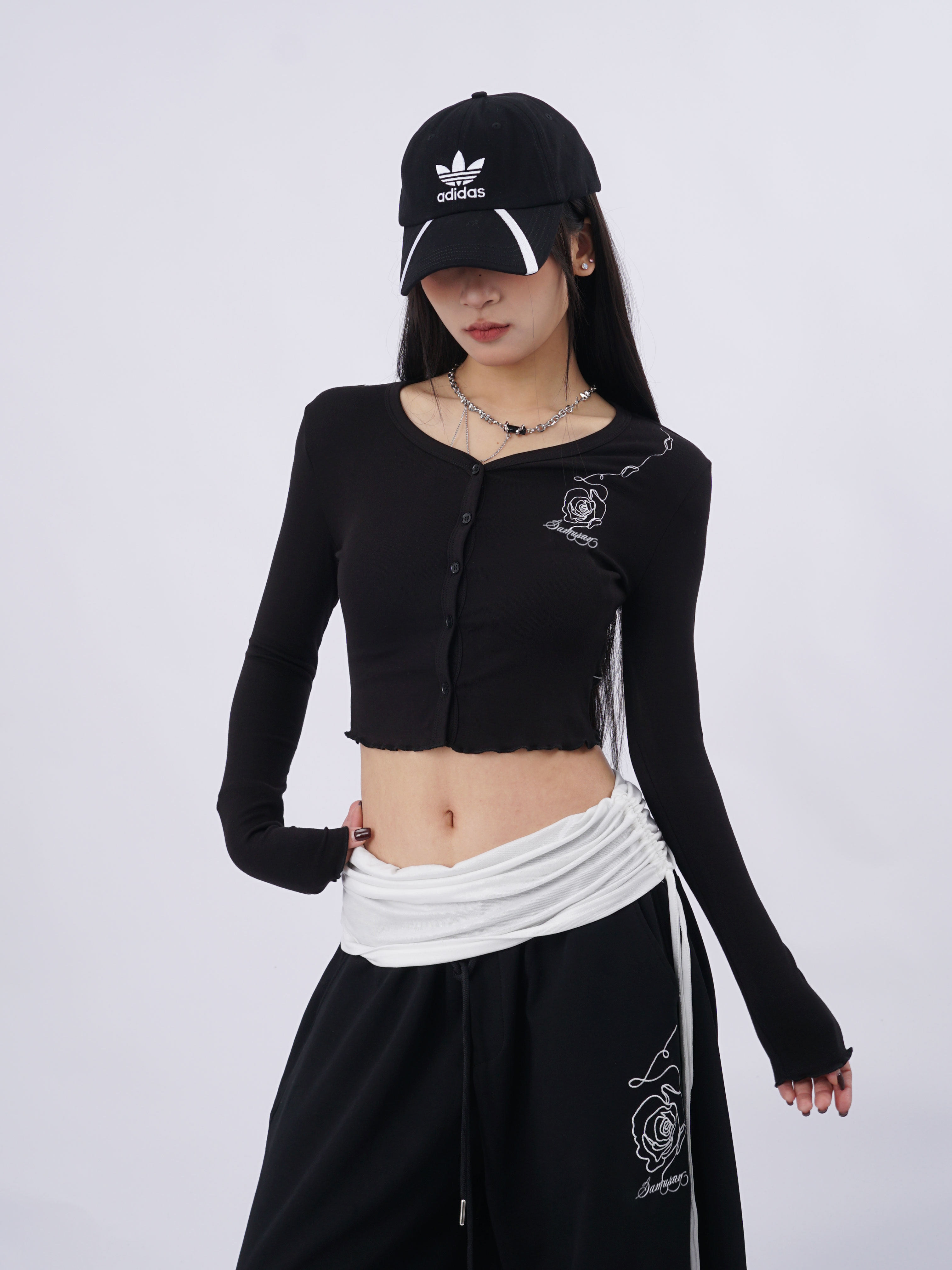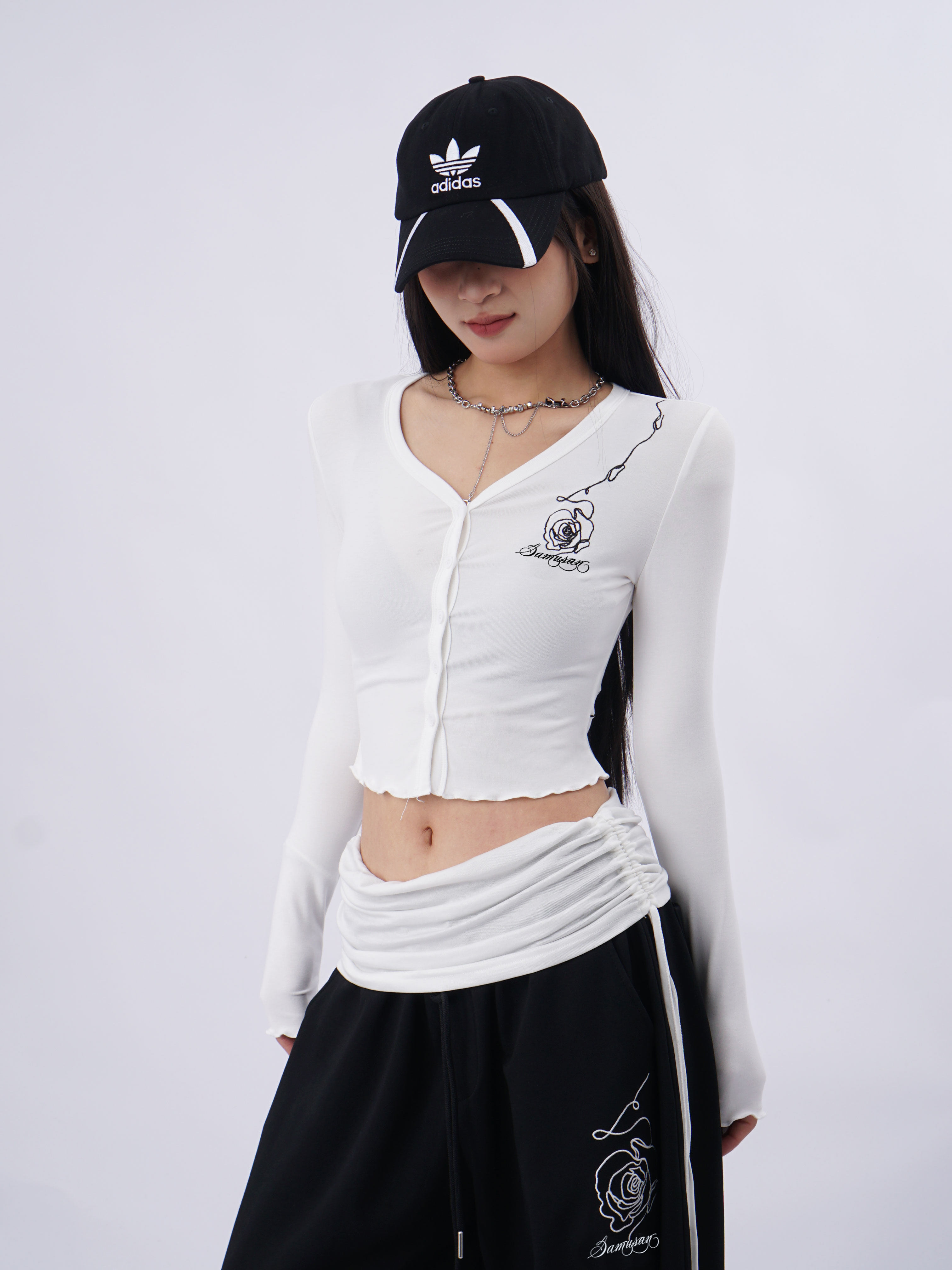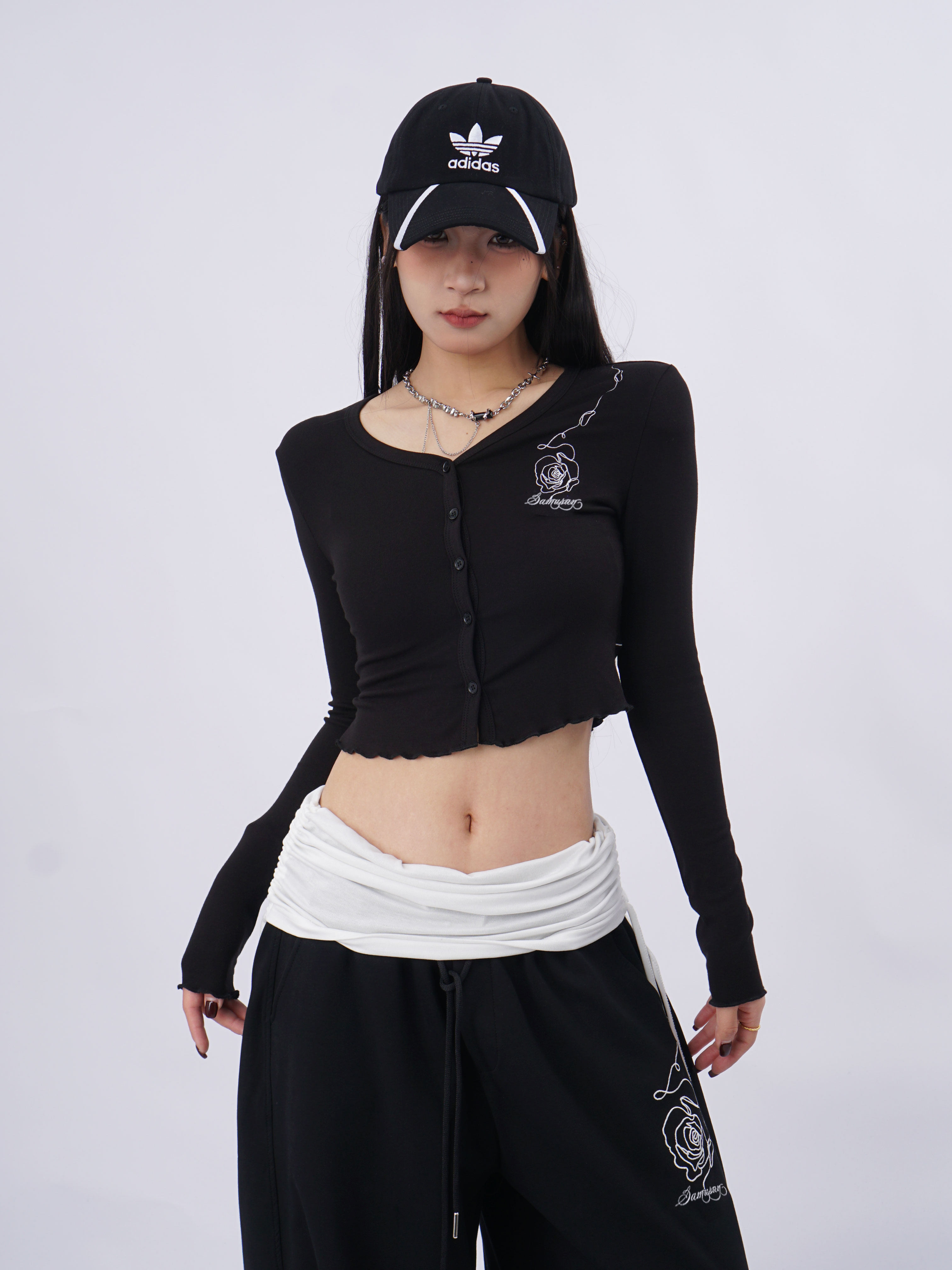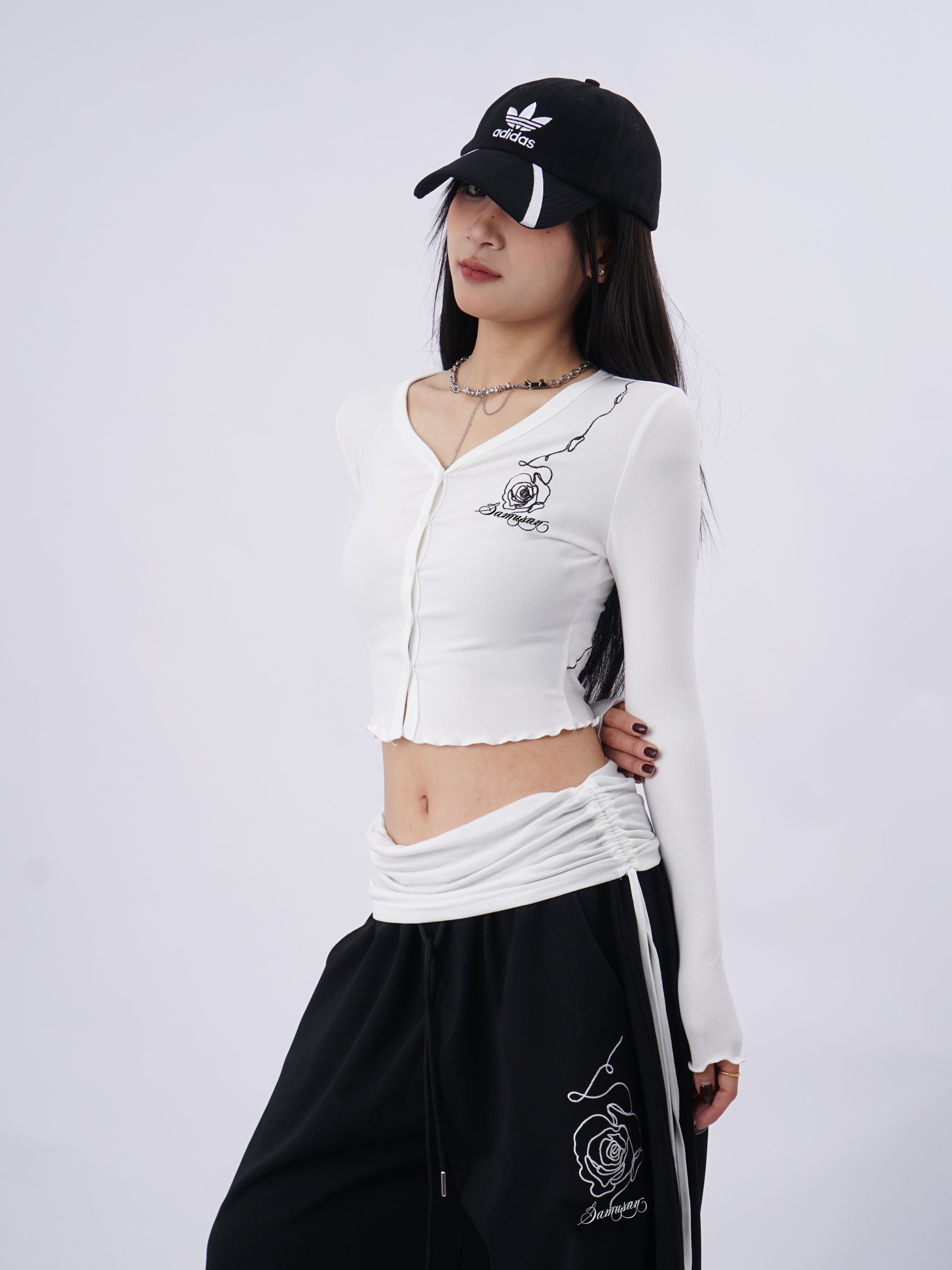 SAMUSAN V-neck Single-breasted Short Long Sleeve