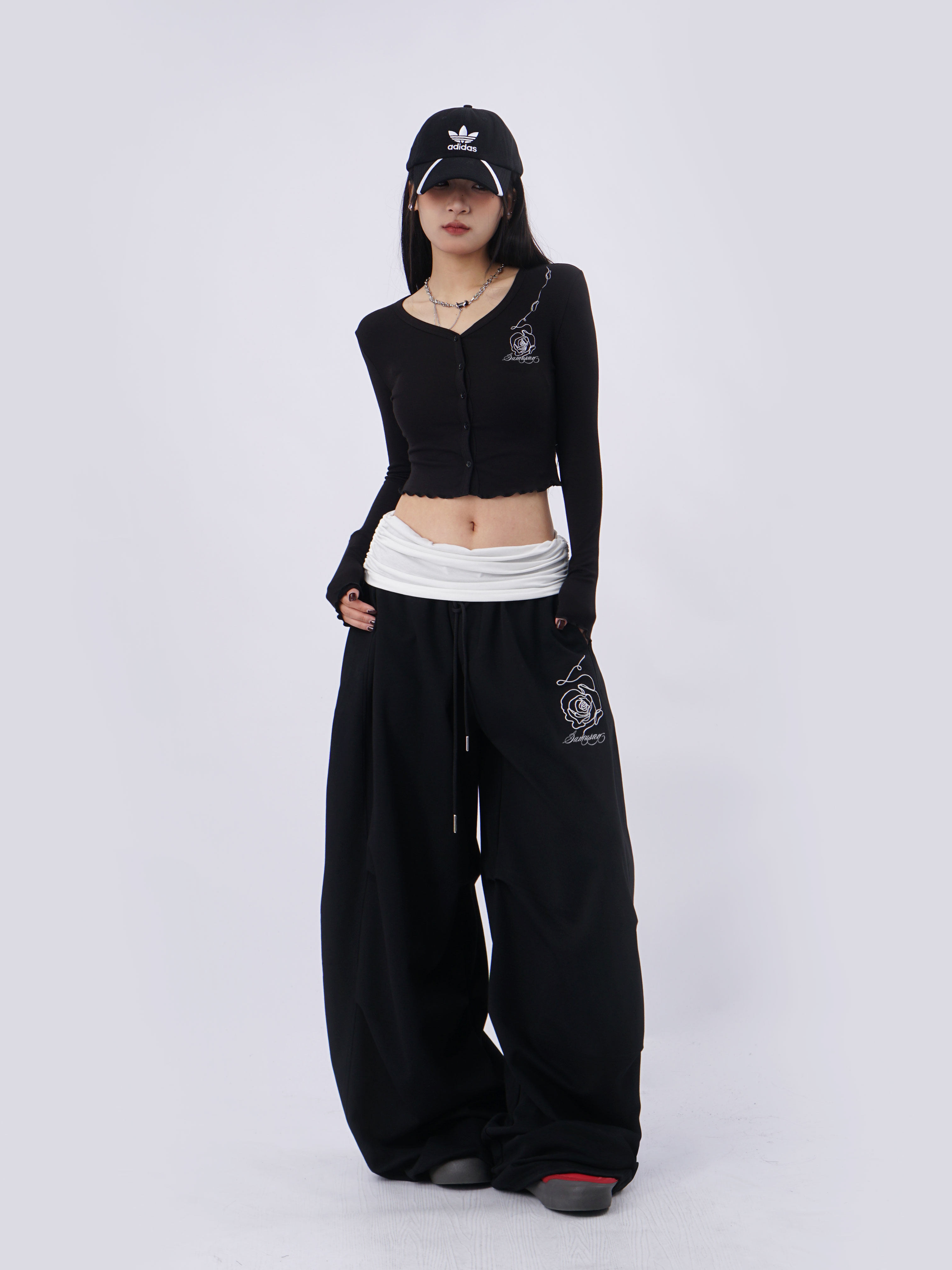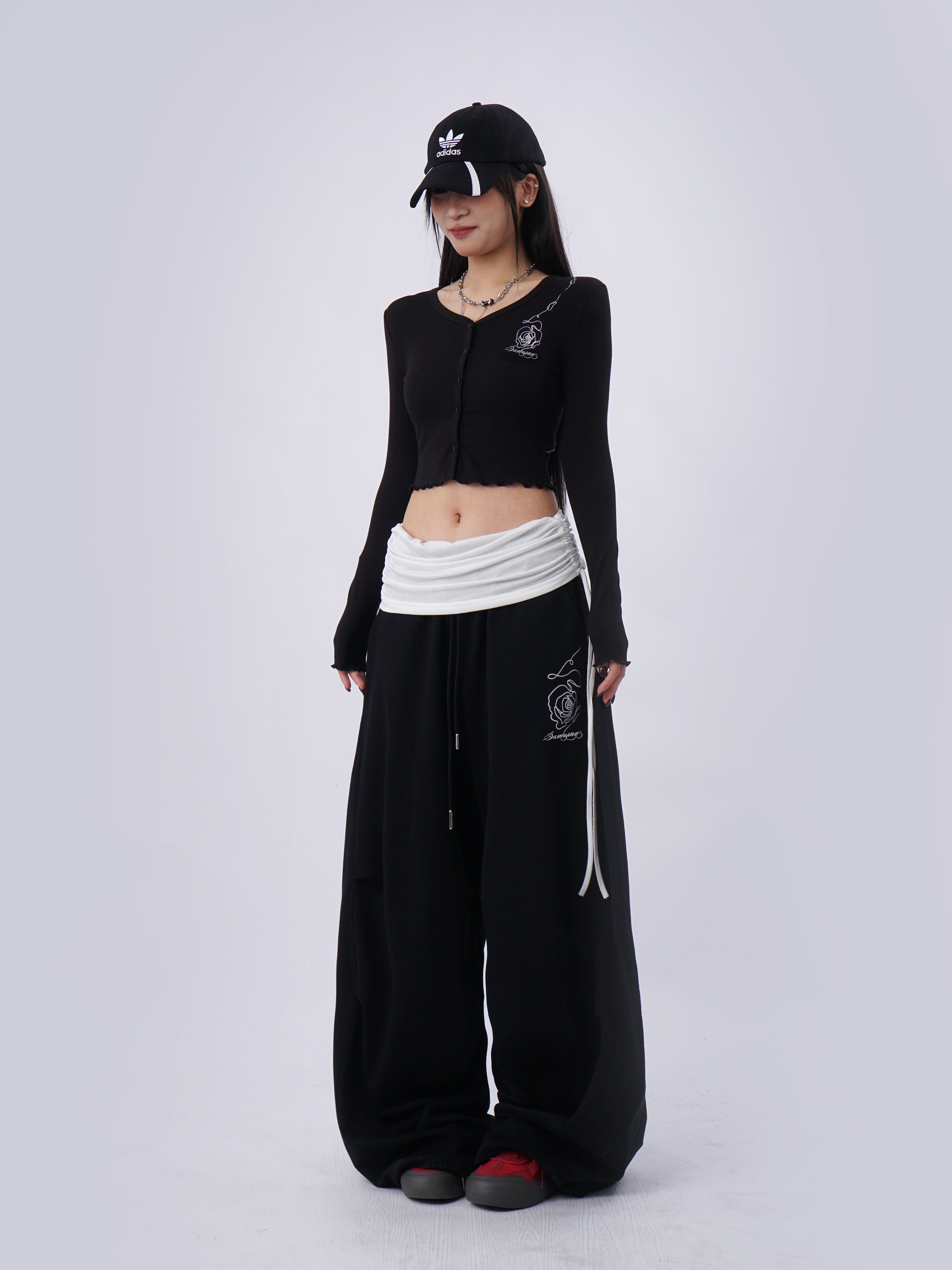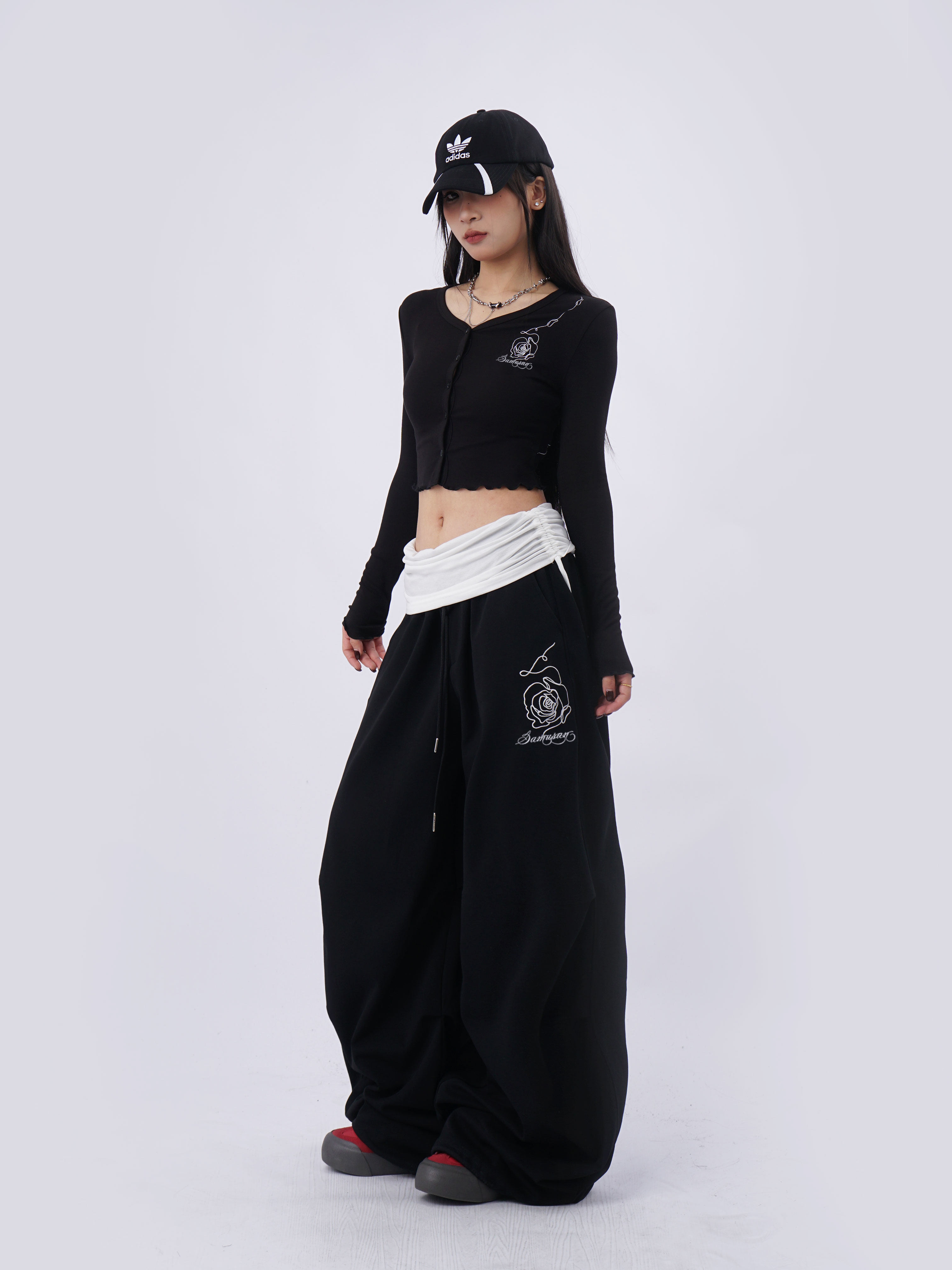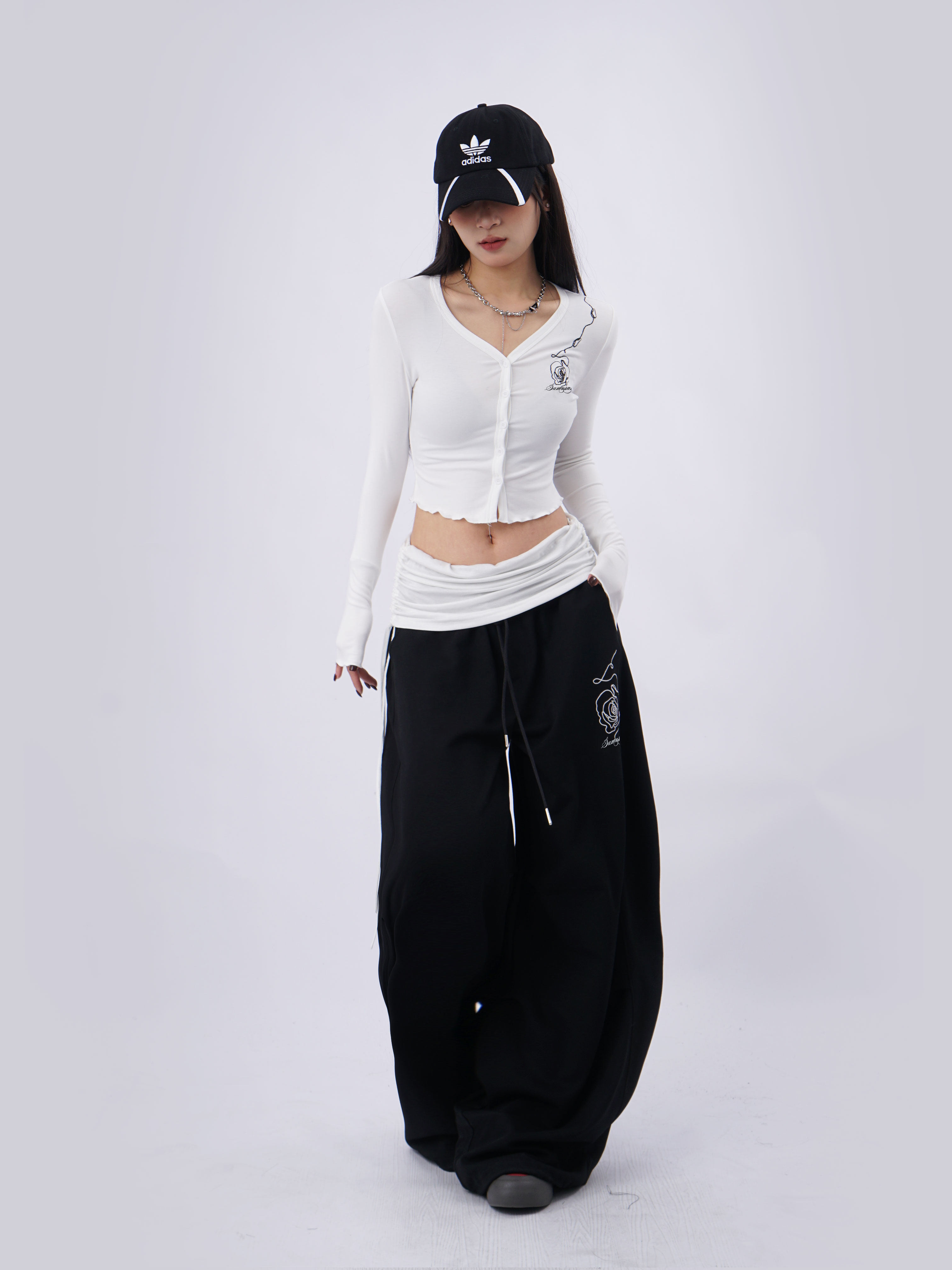 SAMUSAN V-neck Single-breasted Short Long Sleeve