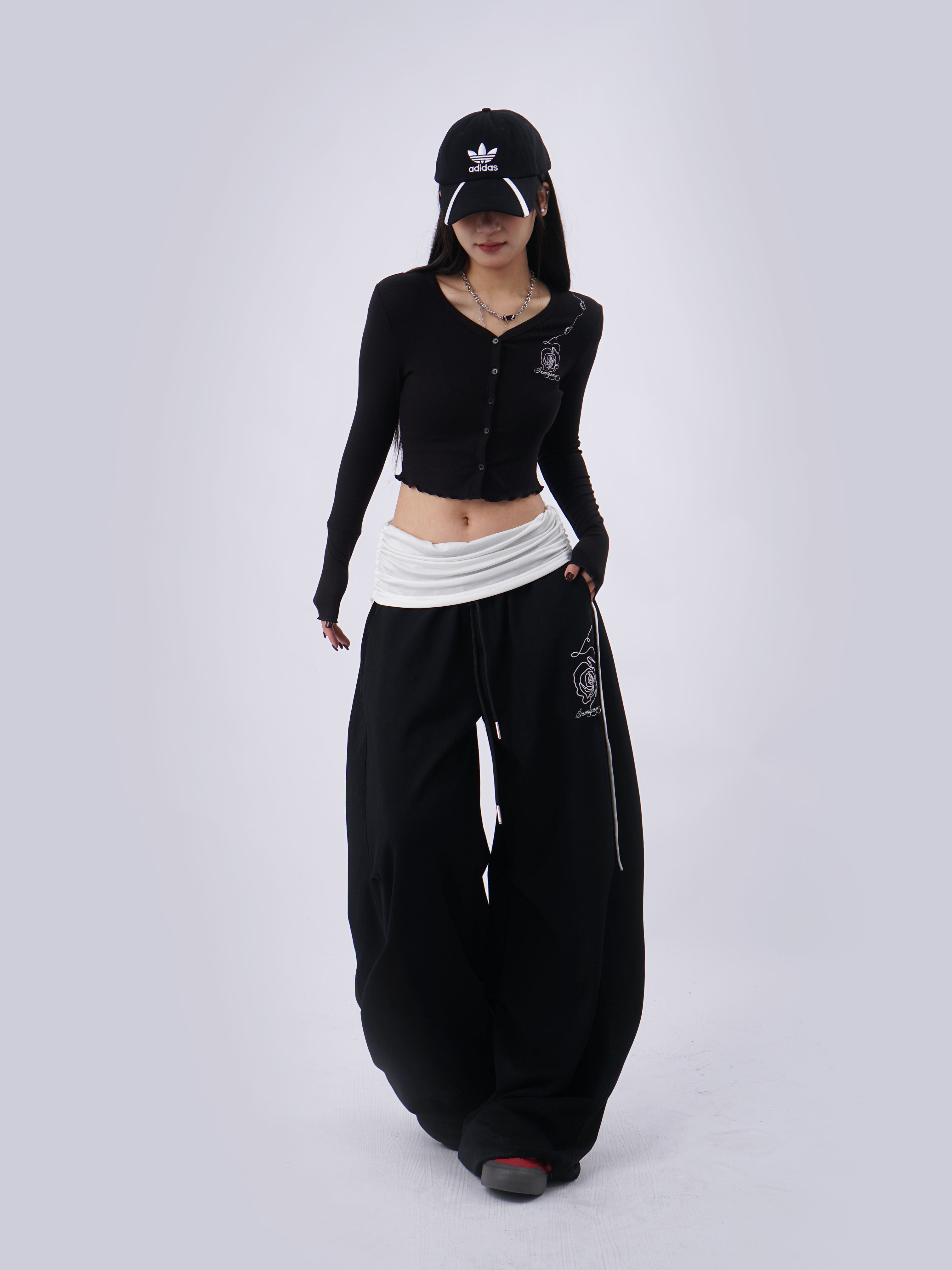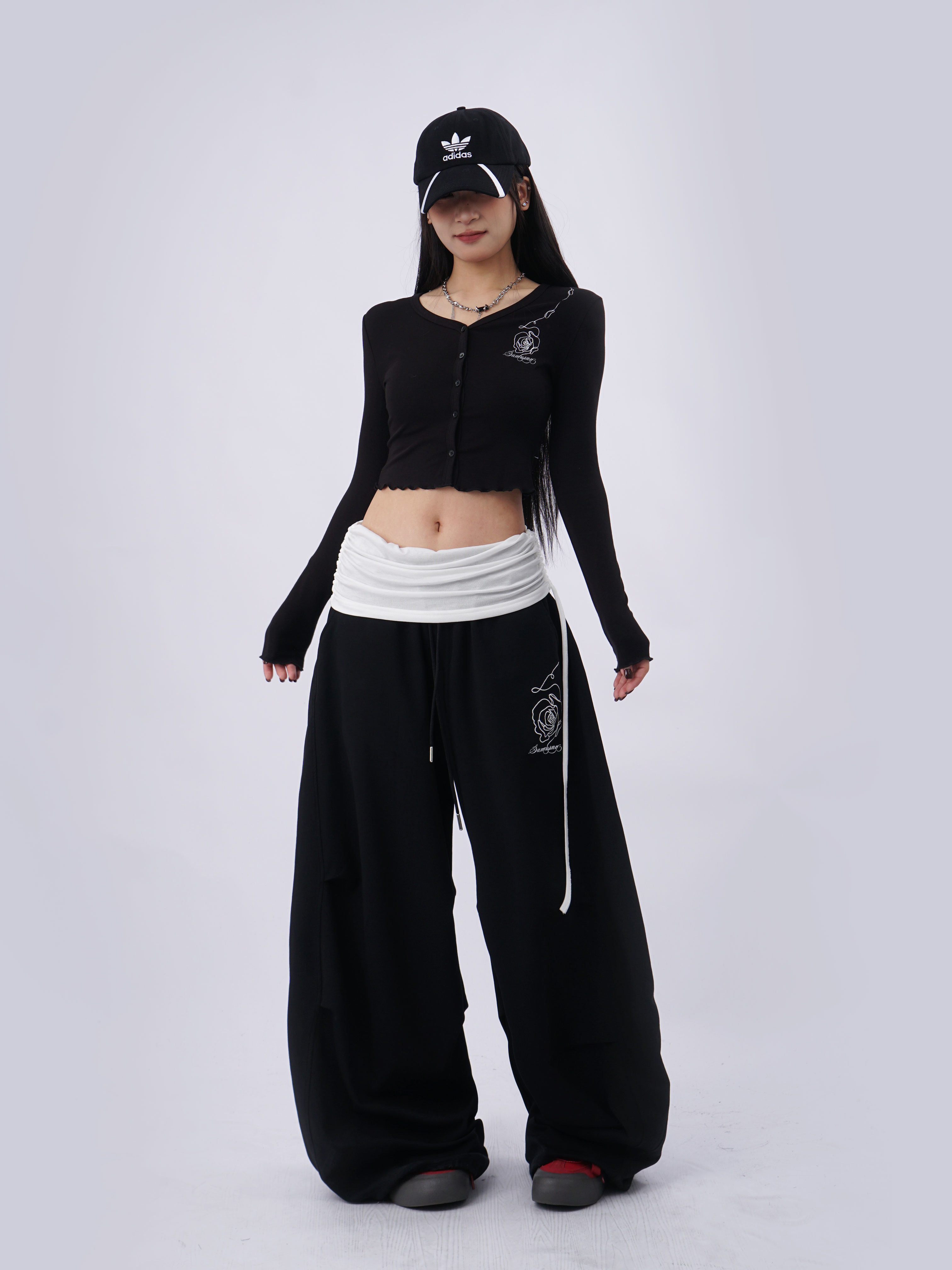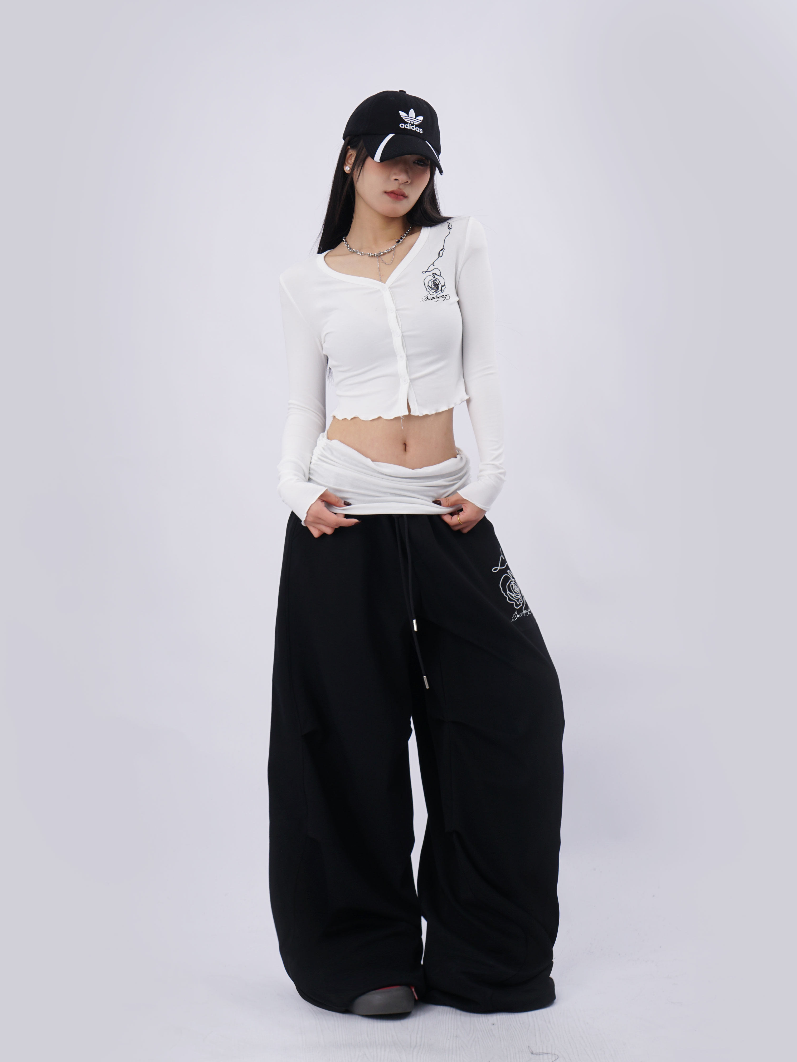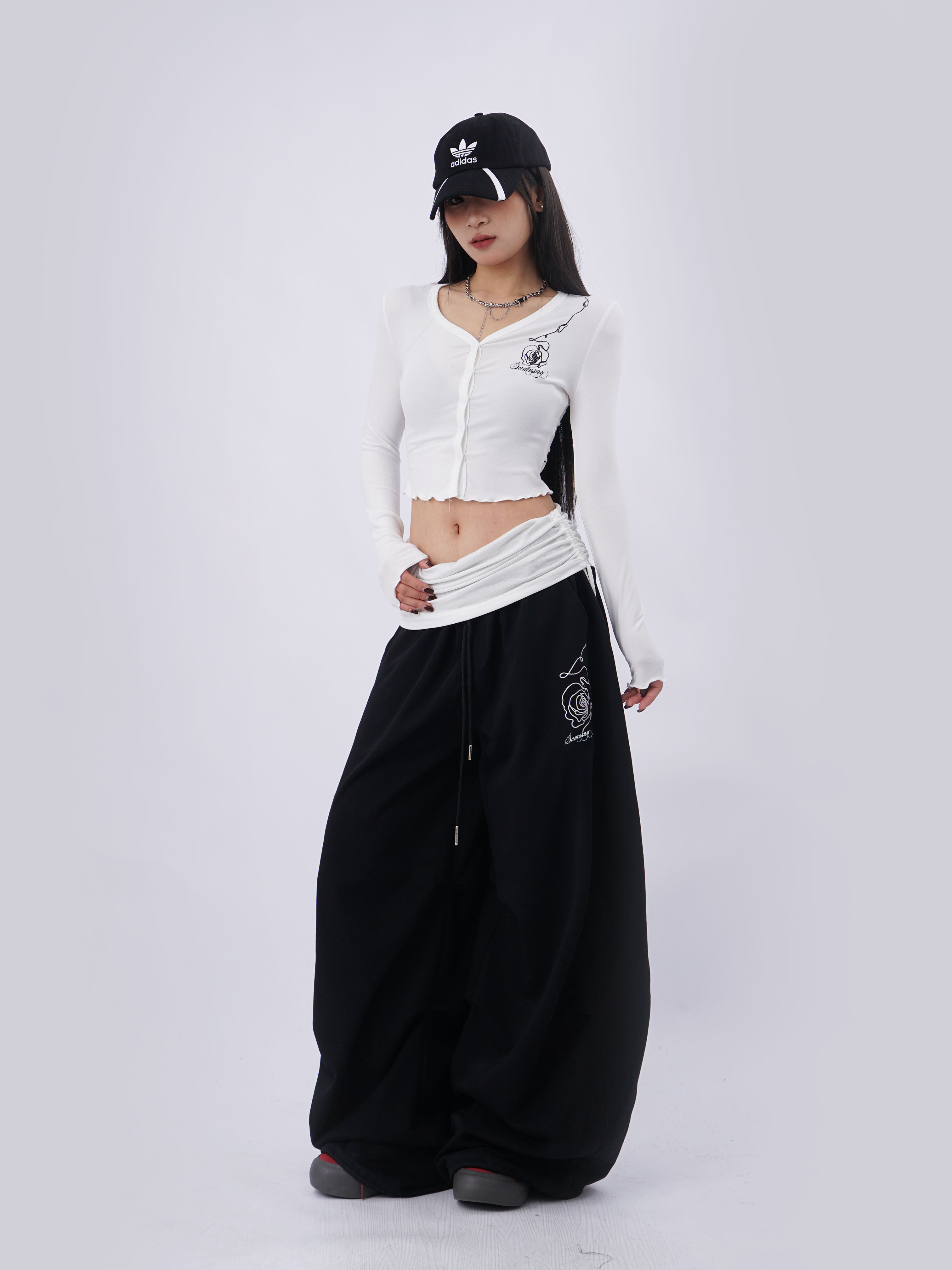 SAMUSAN V-neck Single-breasted Short Long Sleeve