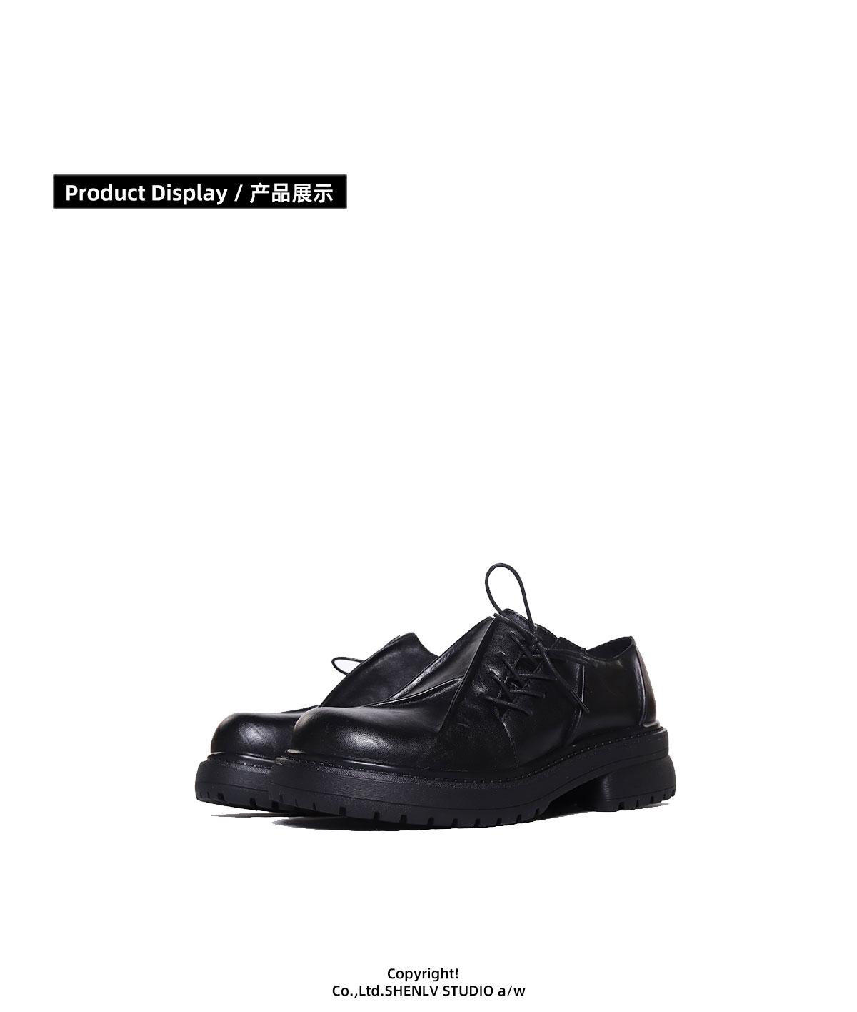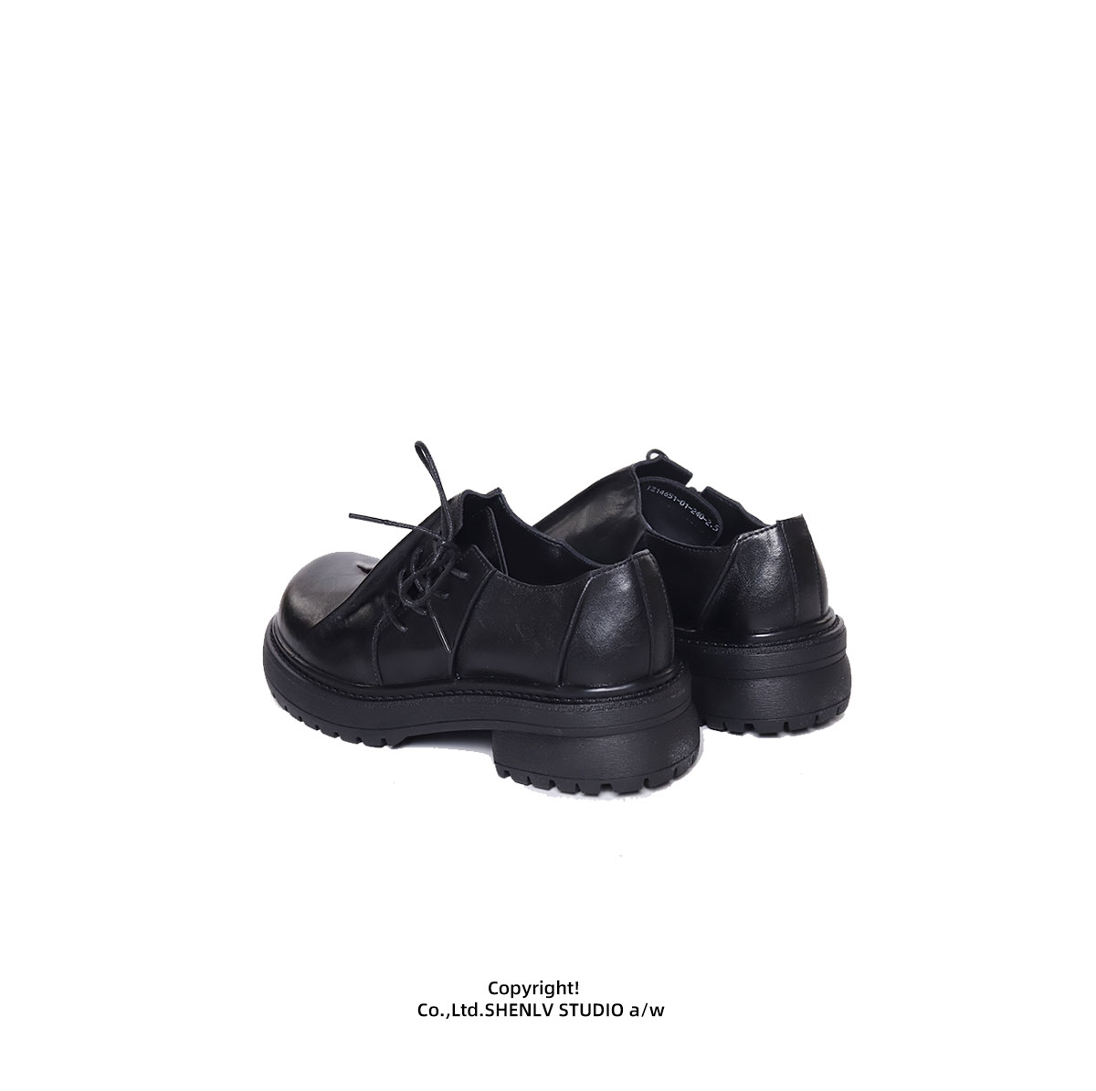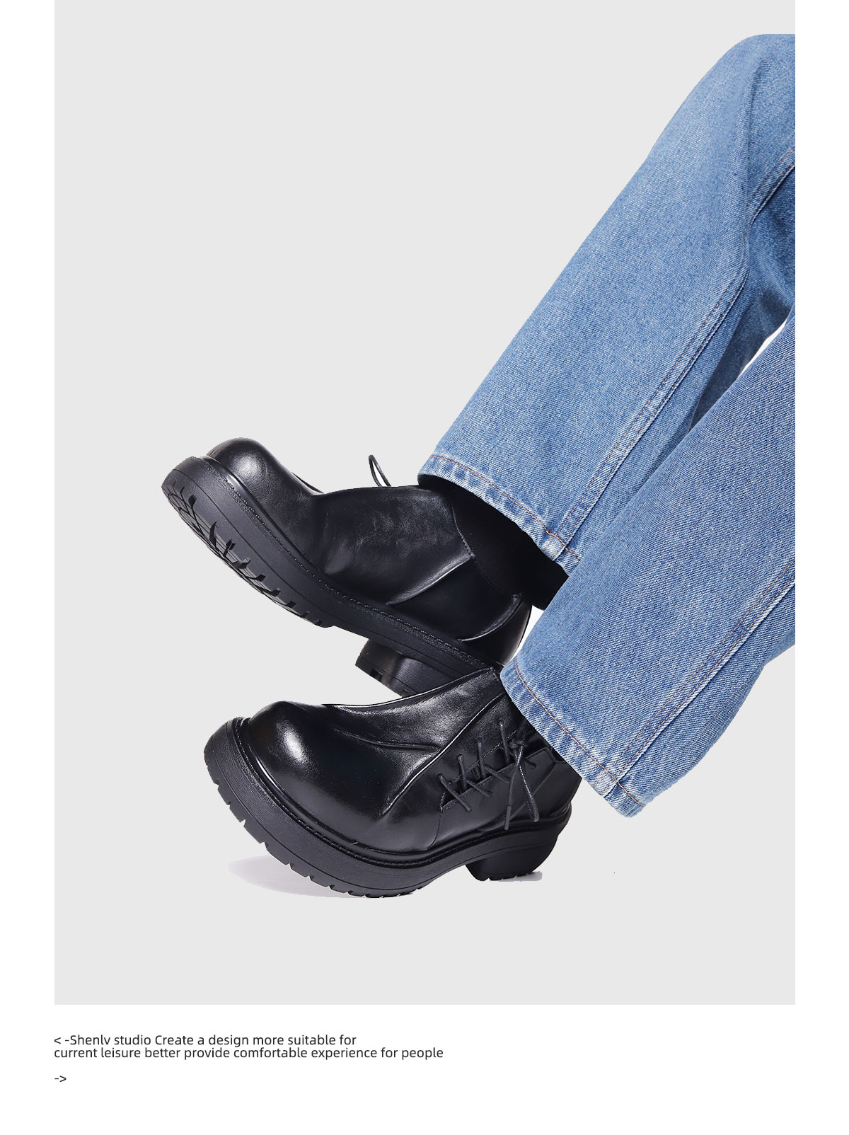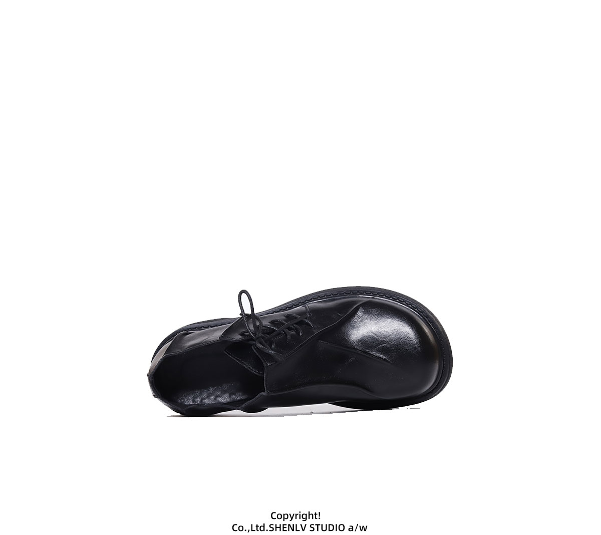 SHENLV STUDIO Asymmetrical Hand-pleated Thick-soled Heightening Leather Shoes