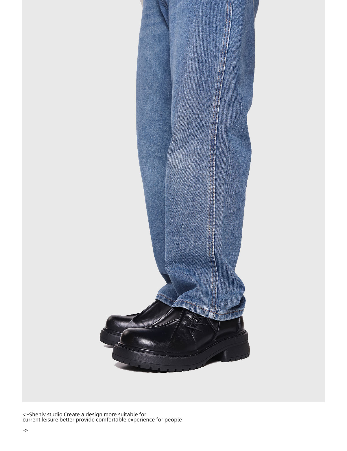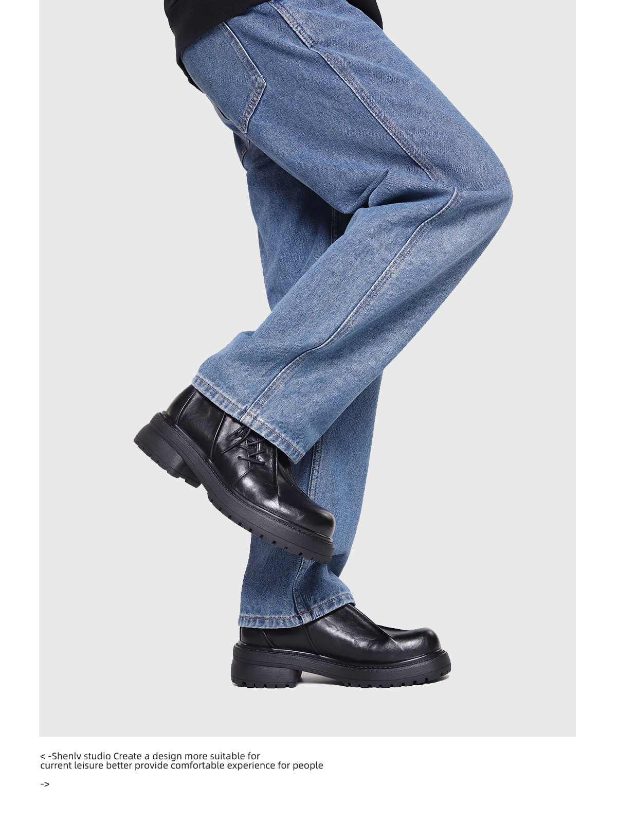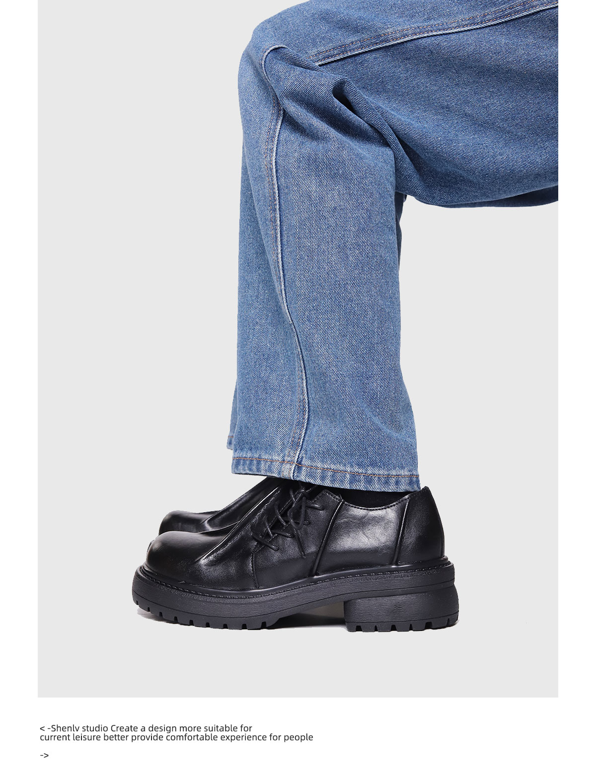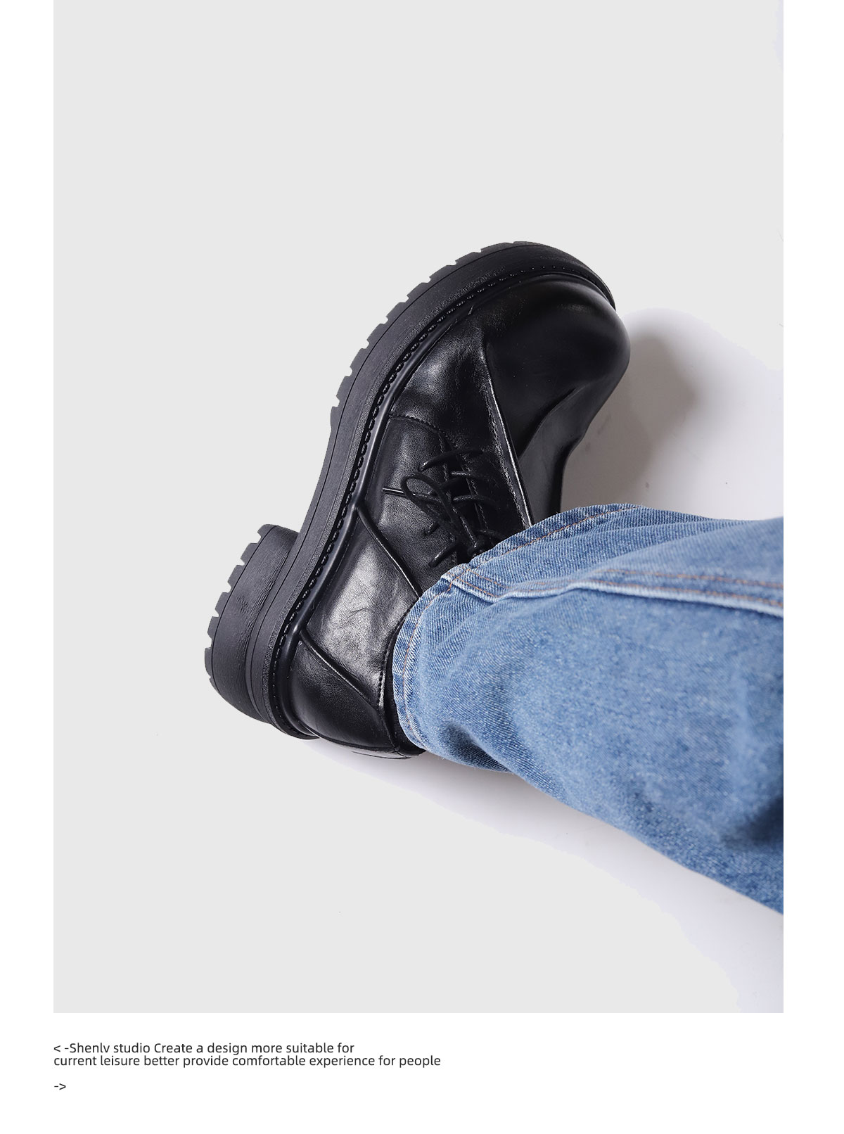 SHENLV STUDIO Asymmetrical Hand-pleated Thick-soled Heightening Leather Shoes