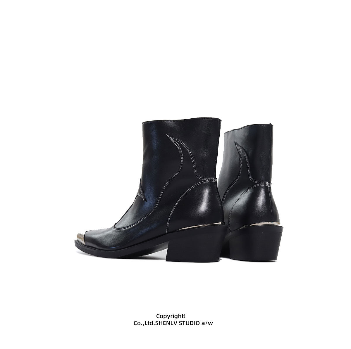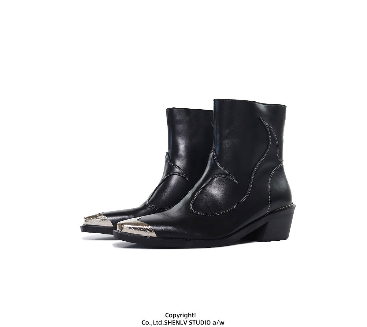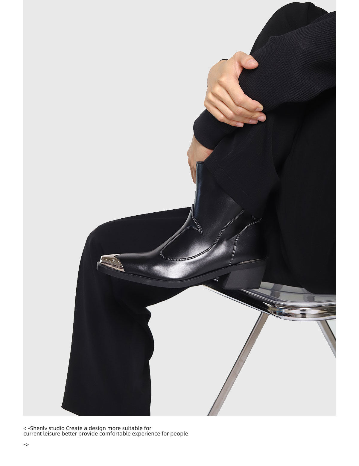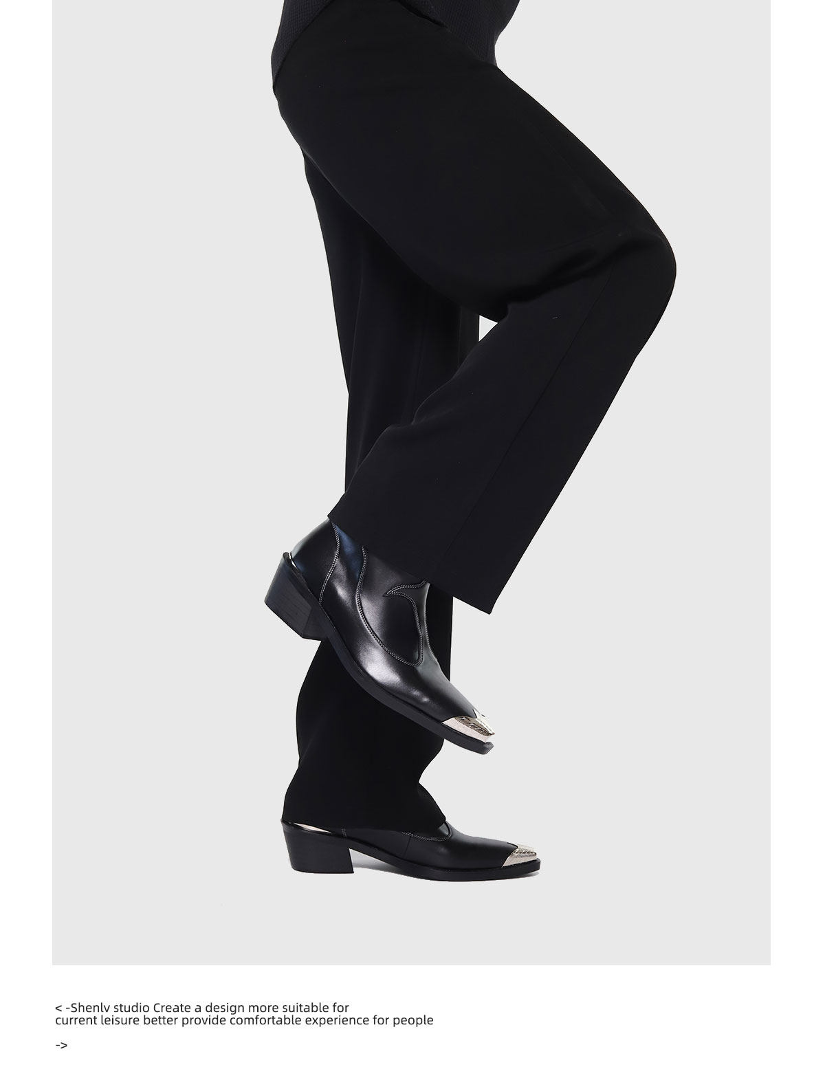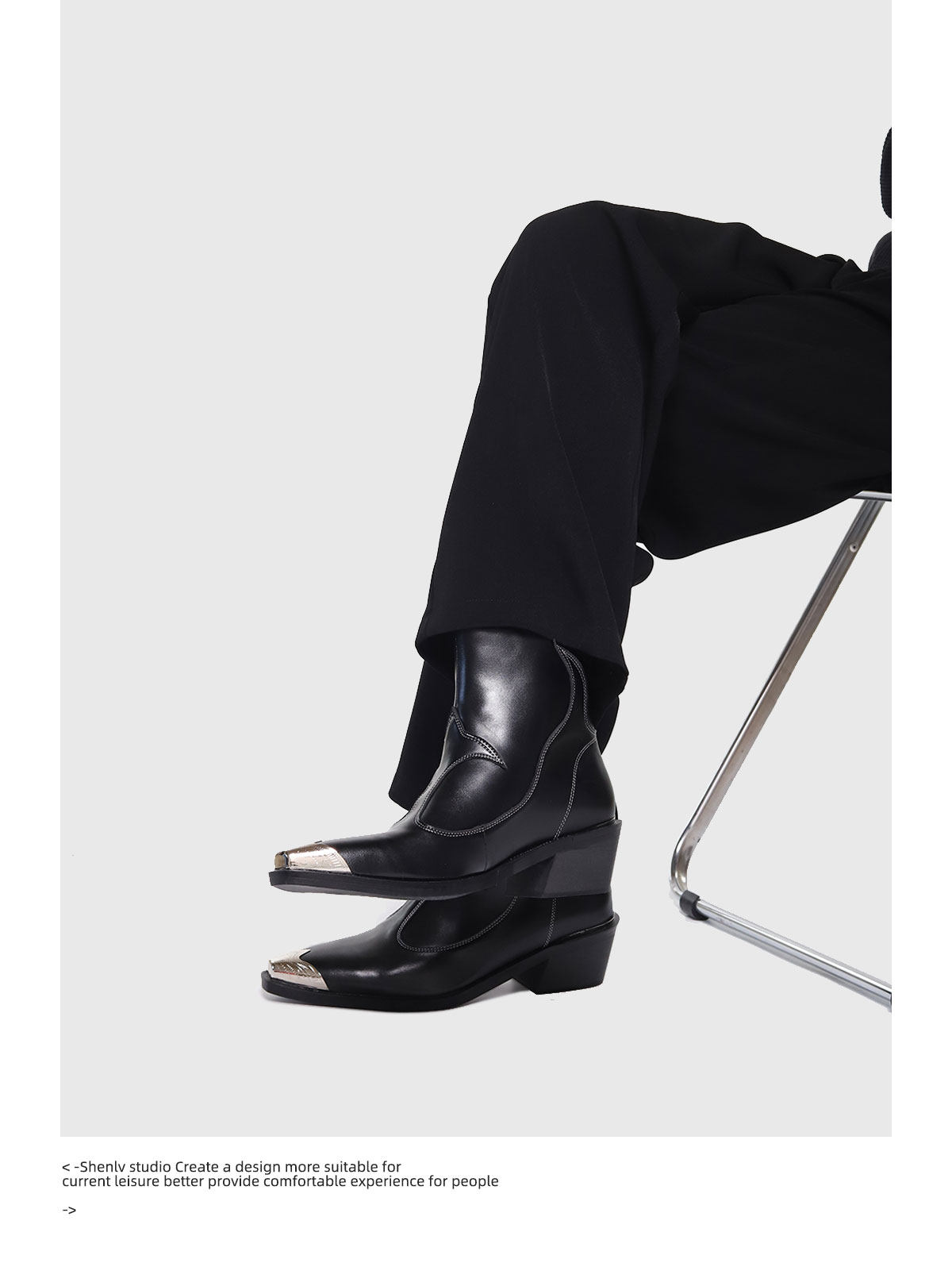 SHENLV STUDIO Iron Head Tip Height Increasing High Top Chelsea Boots