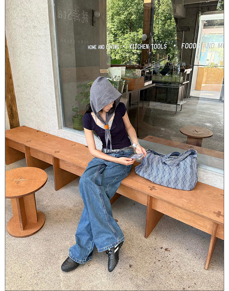 Stay the Night Striped Folds Strap Hooded Headscarf