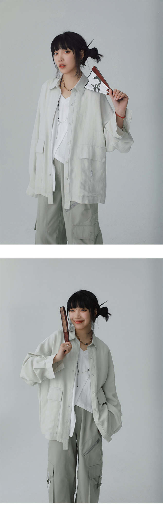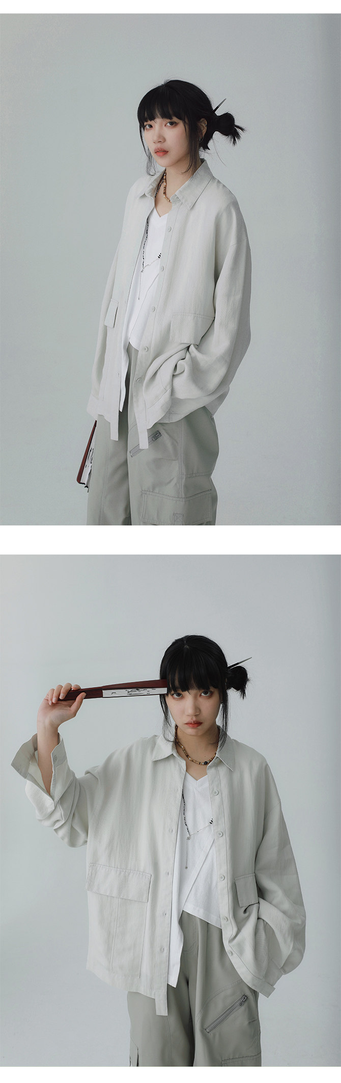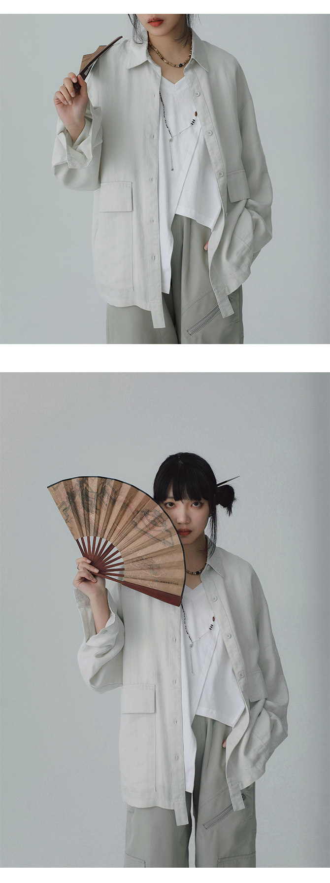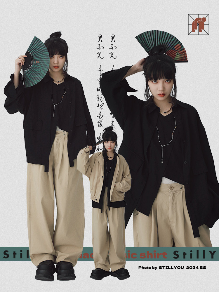 STILLYOU New Chinese-style Light Pocket Drape Long-sleeved Shirt
