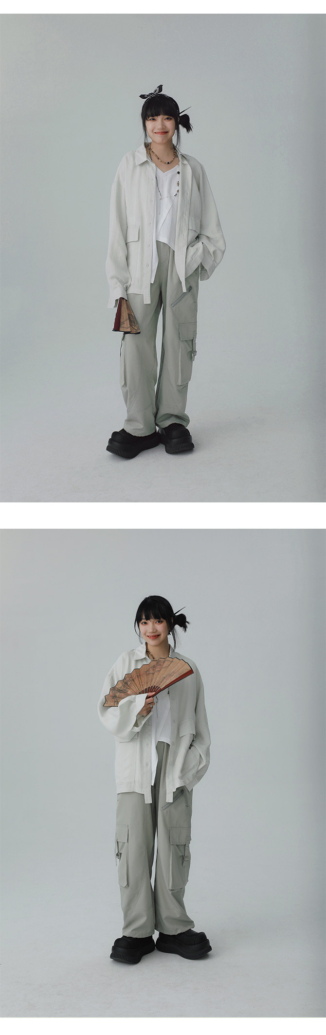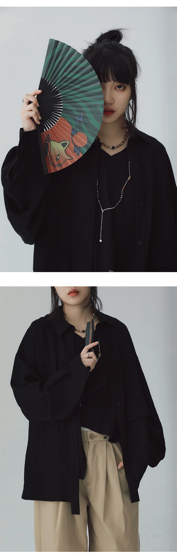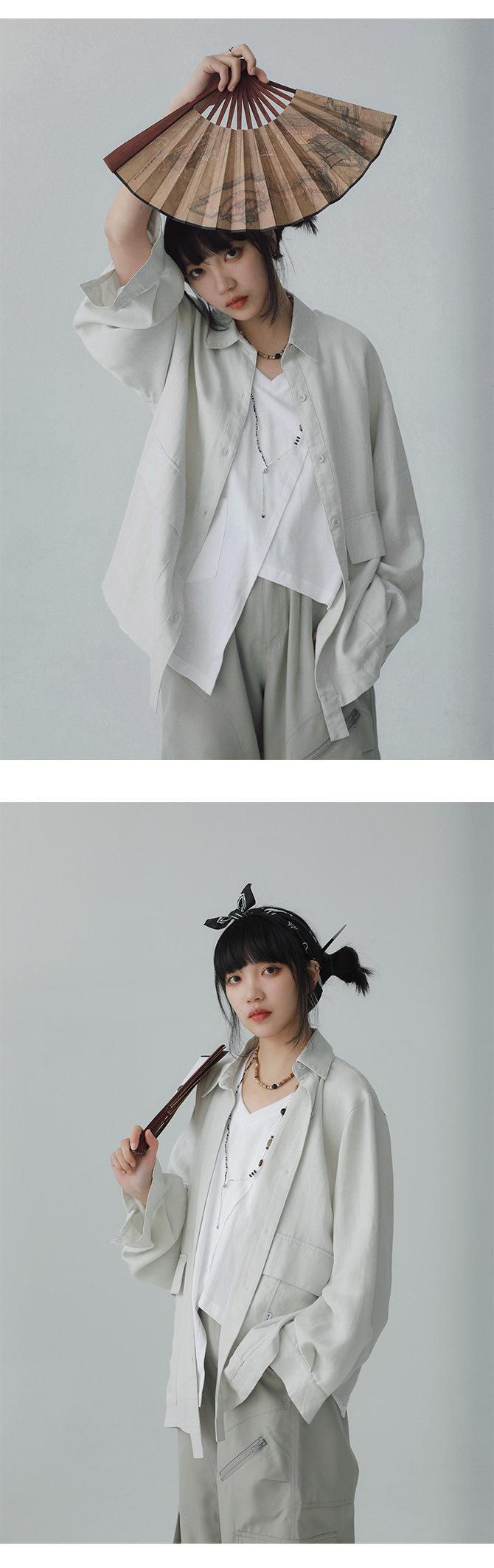 STILLYOU New Chinese-style Light Pocket Drape Long-sleeved Shirt