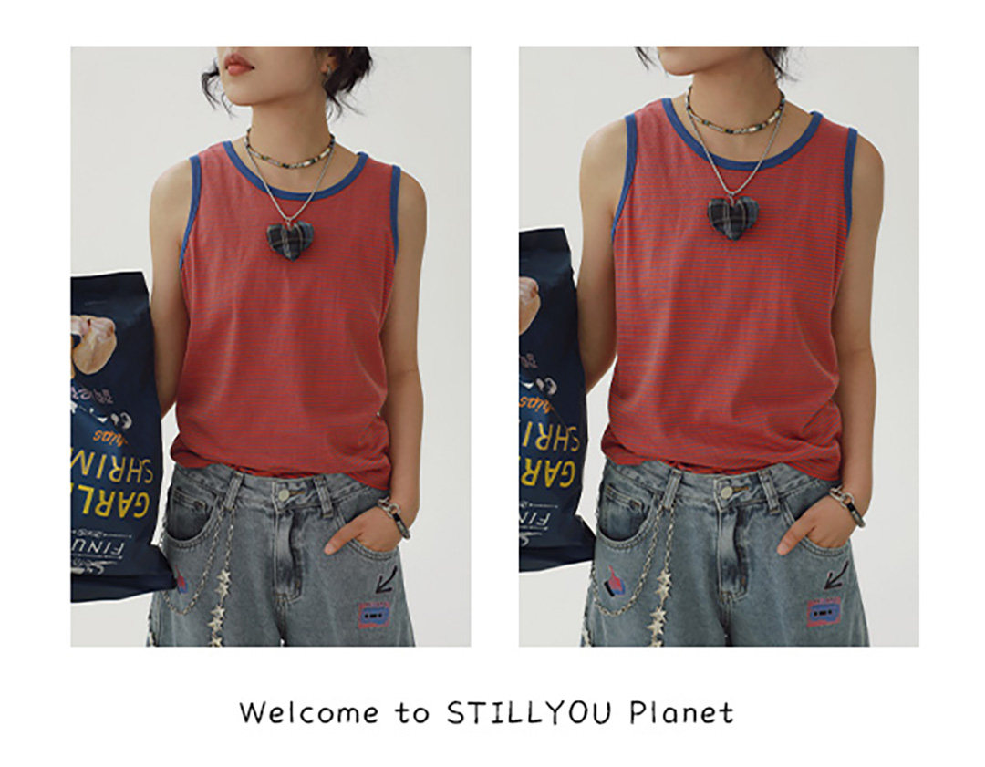 STILLYOU Vintage Striped Crew Neck Sleeveless Vest