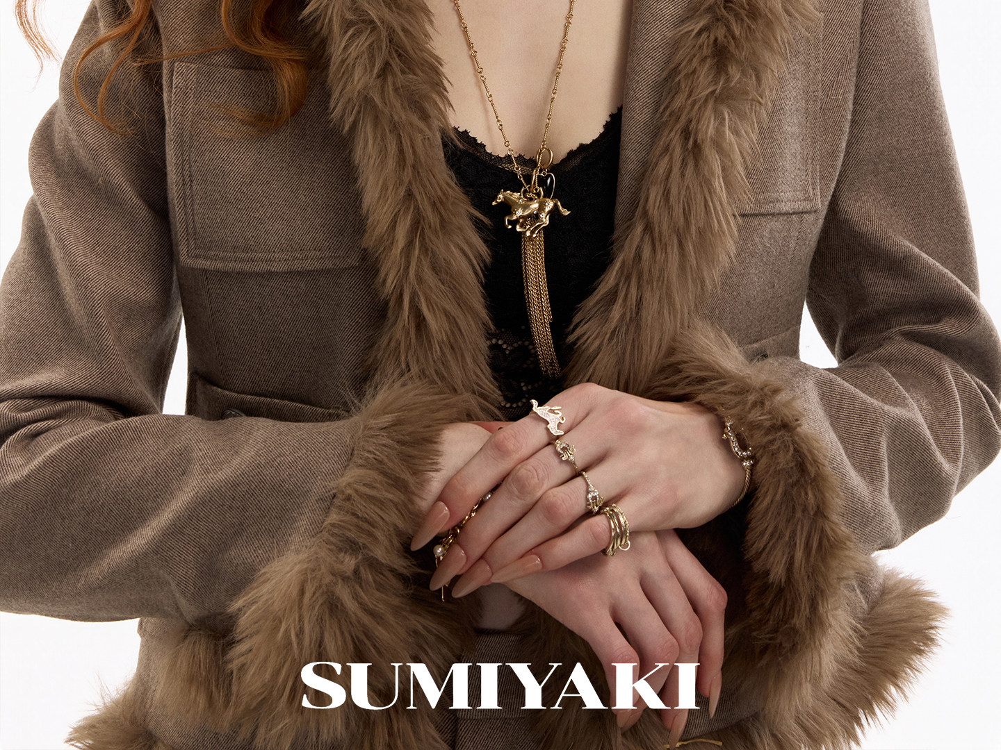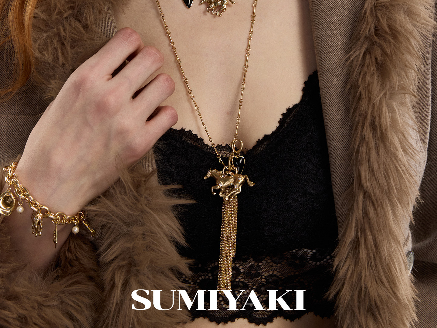 SUMIYAKI Pony Diamond Fringed Long Necklace