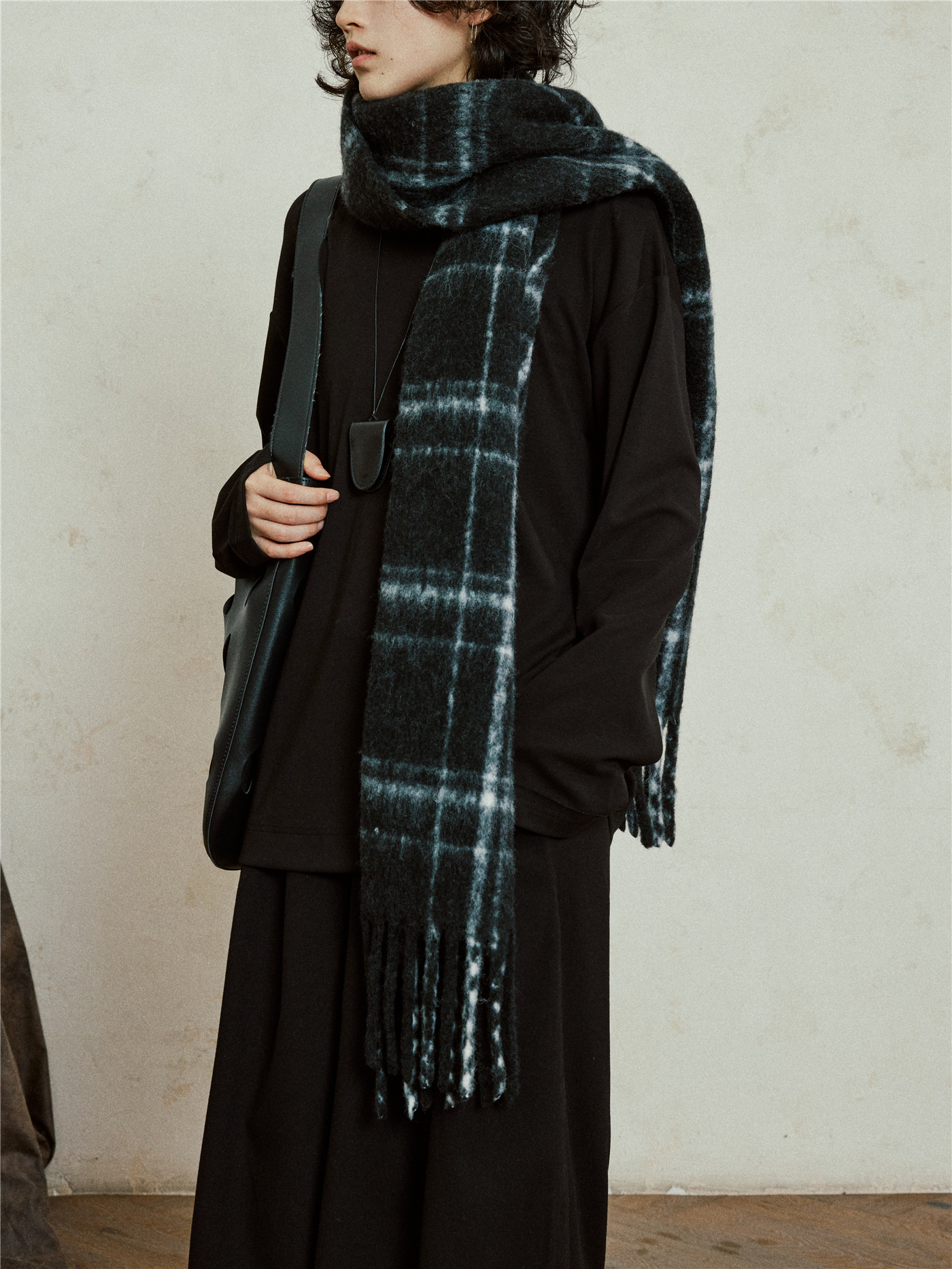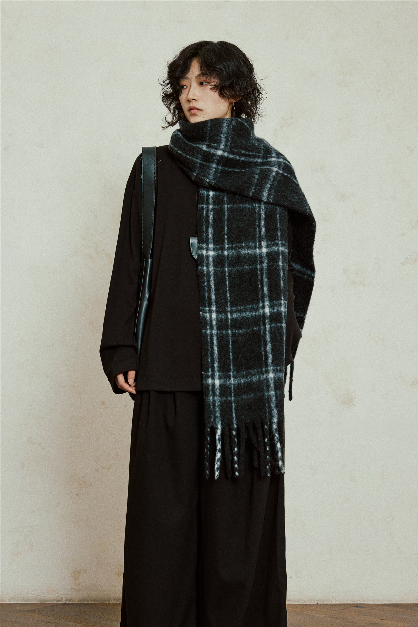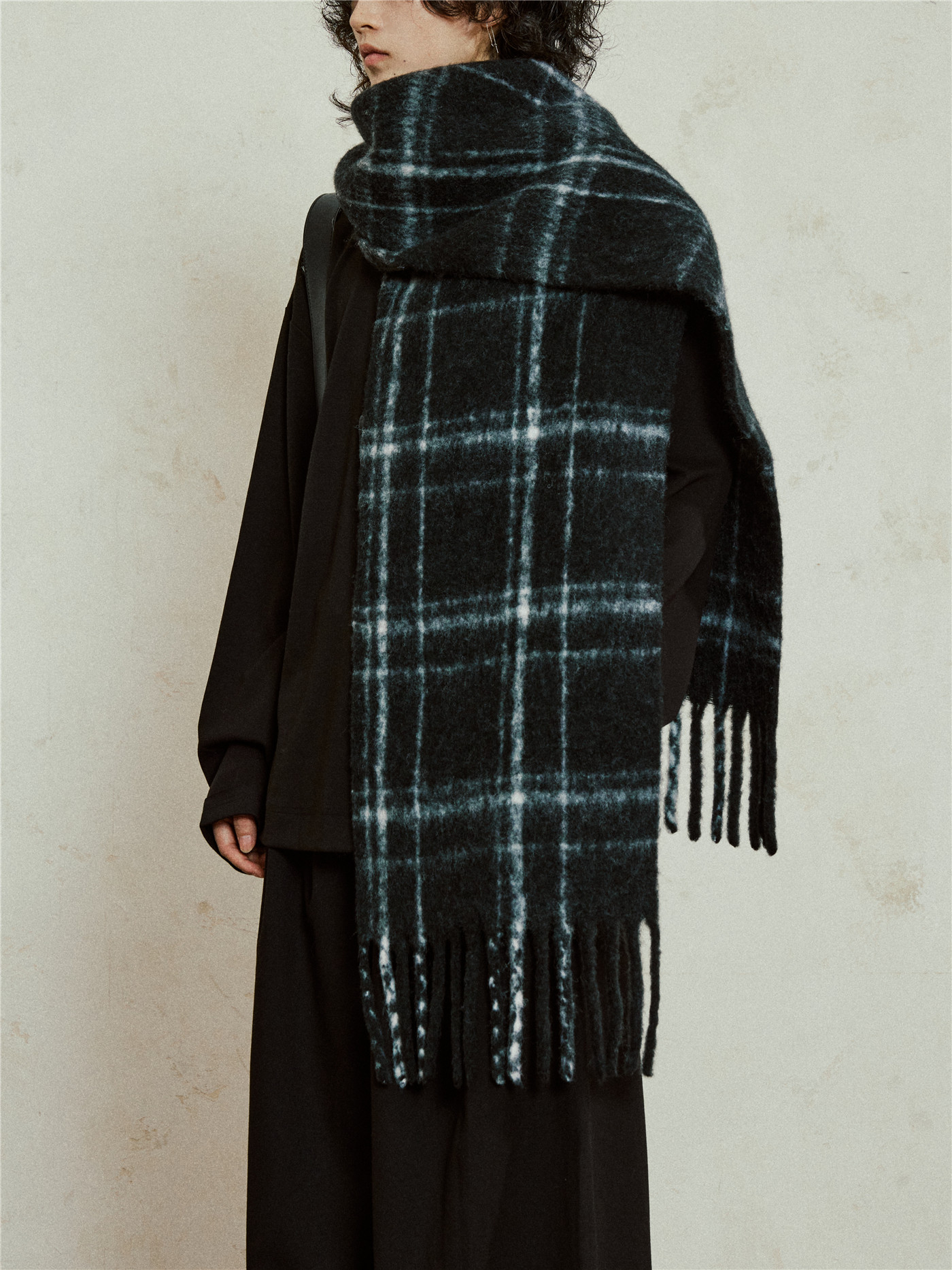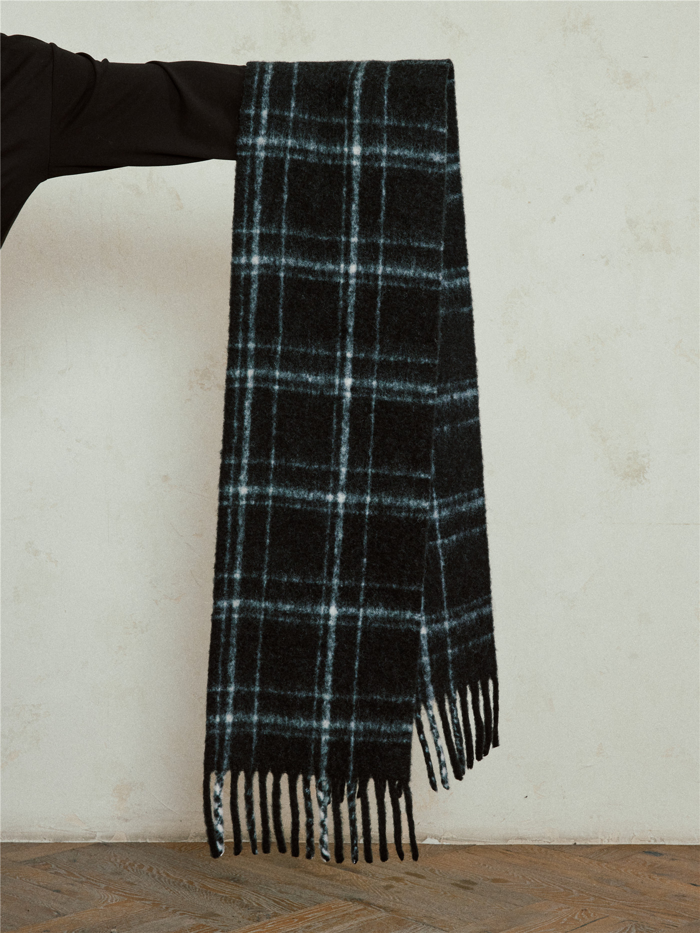 SUNYVONNE Vintage Plaid Fringed Scarf
