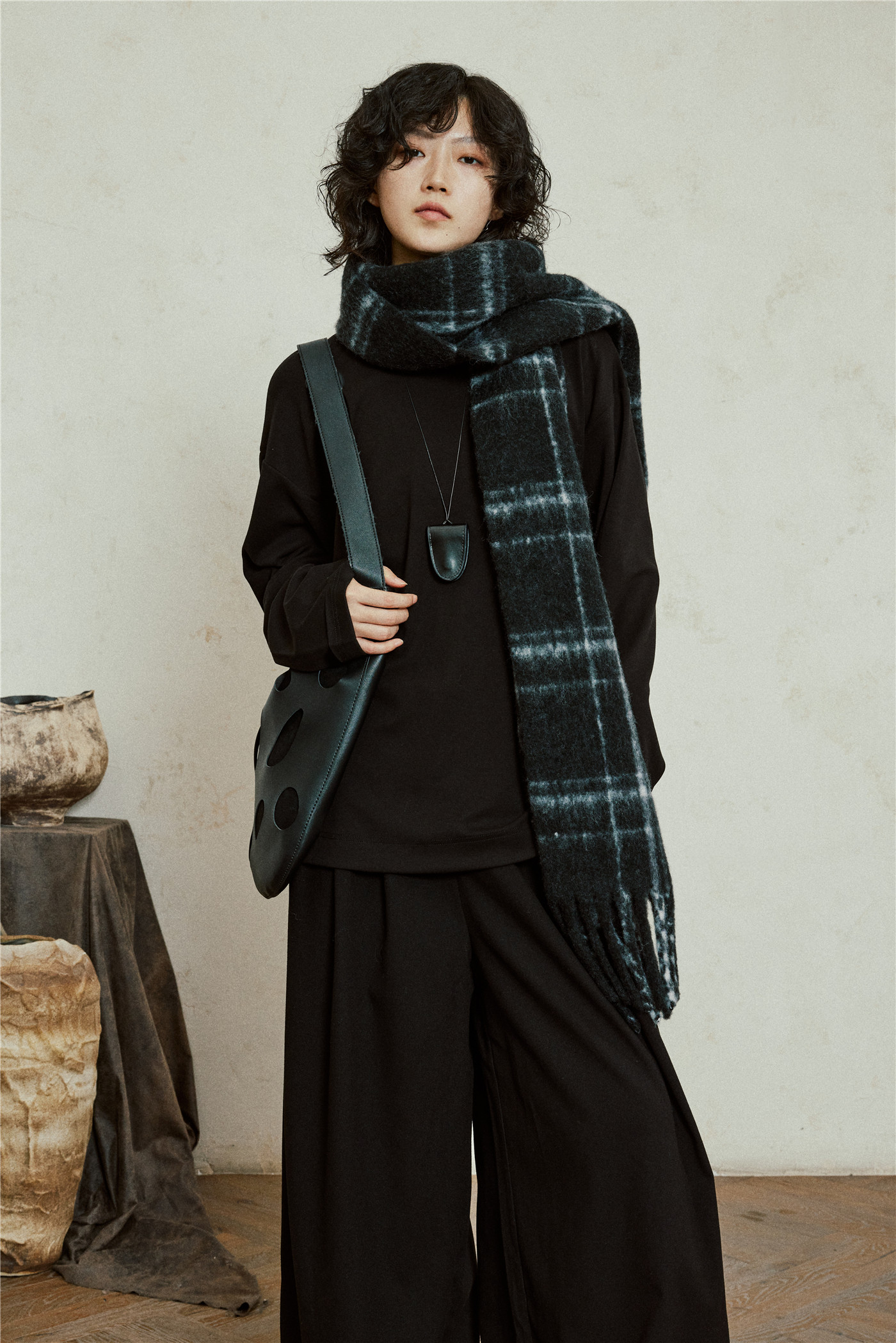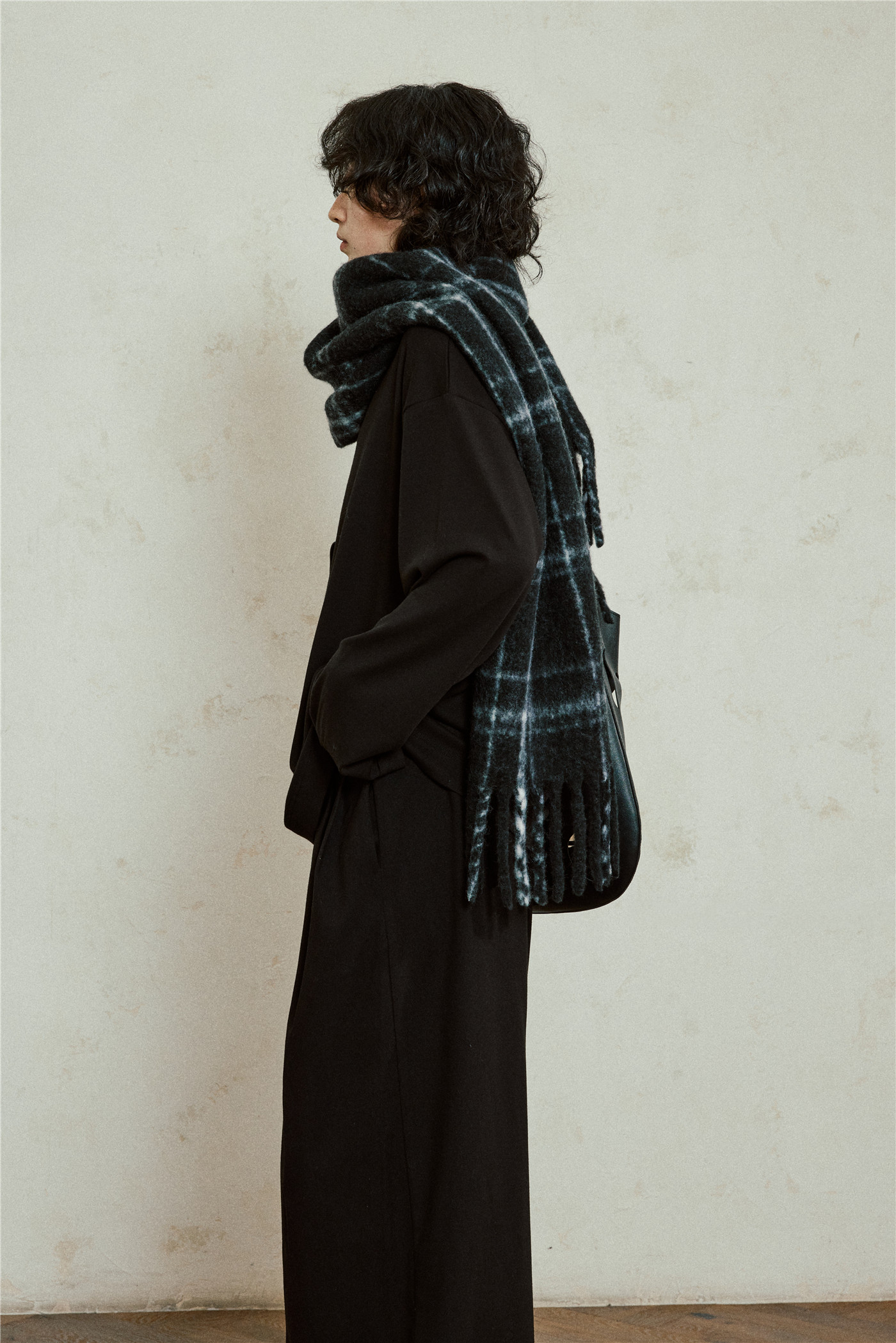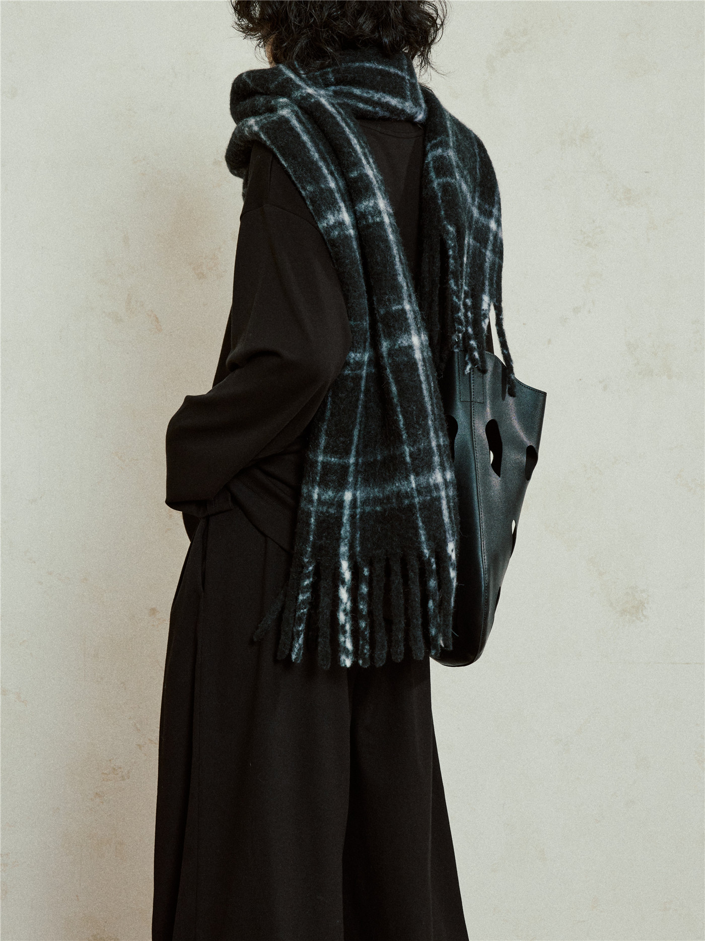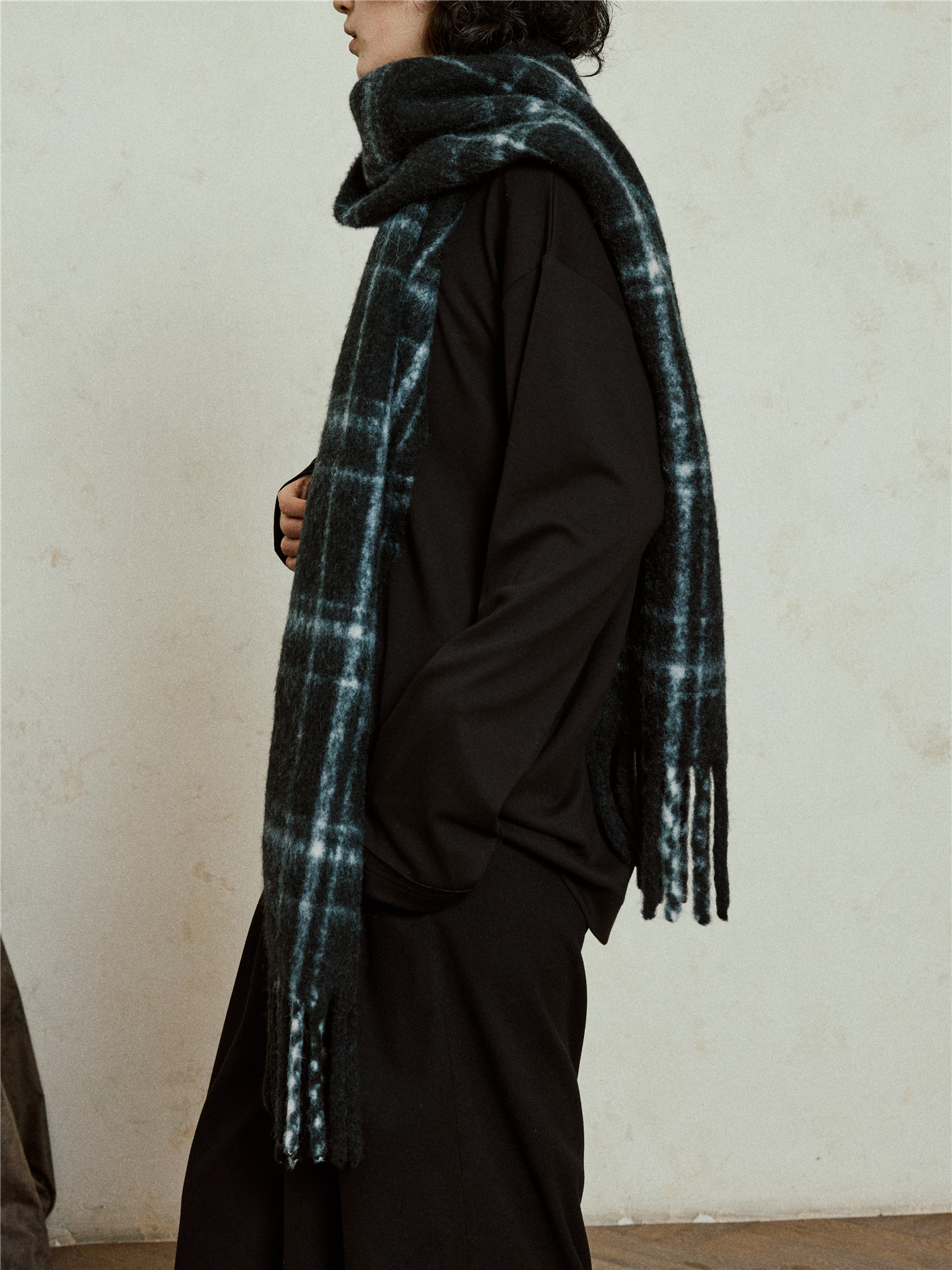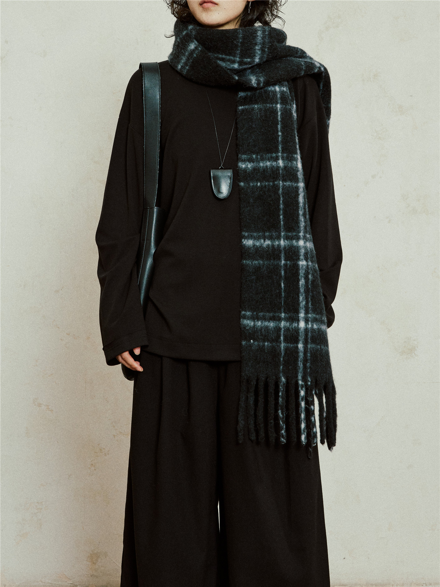 SUNYVONNE Vintage Plaid Fringed Scarf