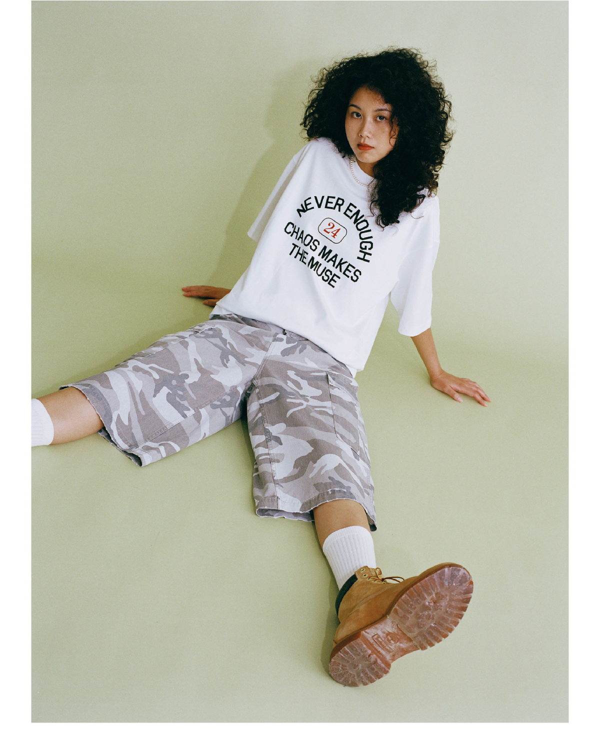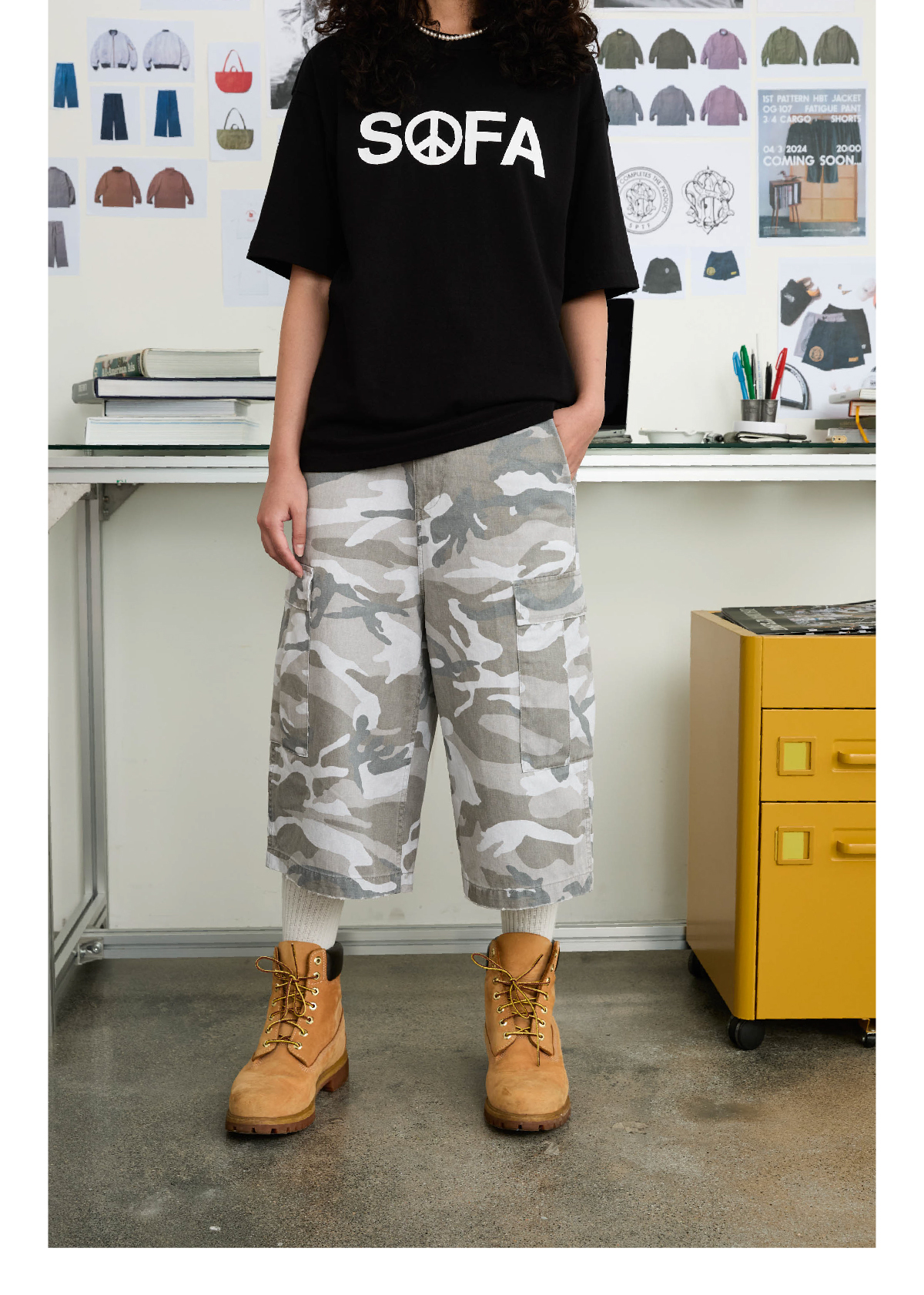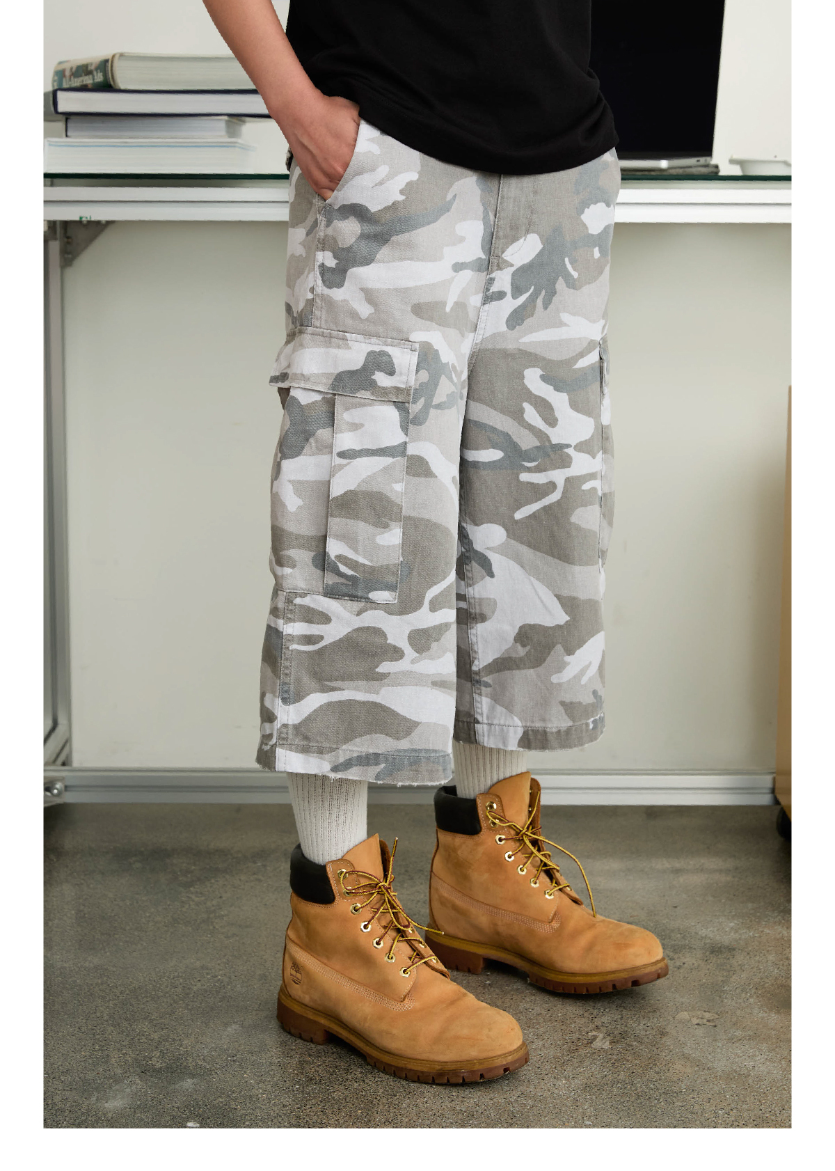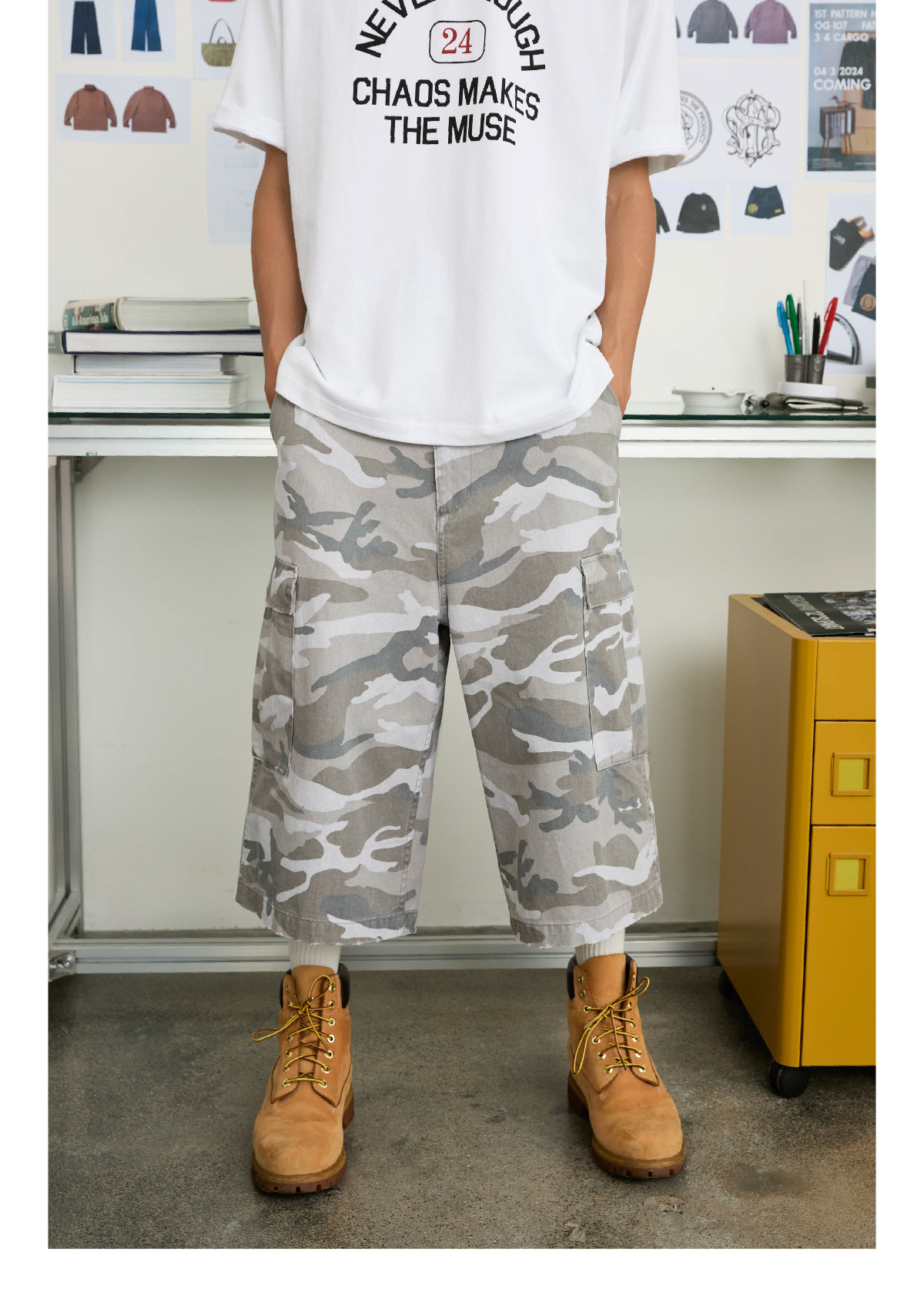SUPERTOFU Worn Old Camouflage Twill Cropped Pants