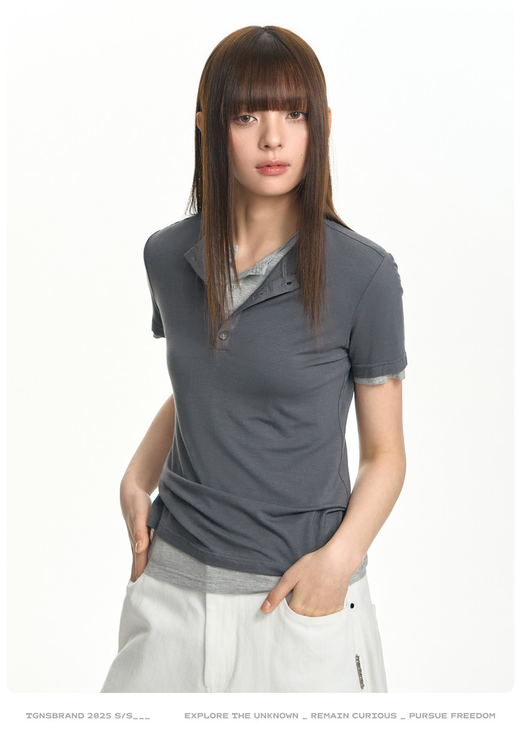 TGNS Henry Collar Shoulder Slim Tee