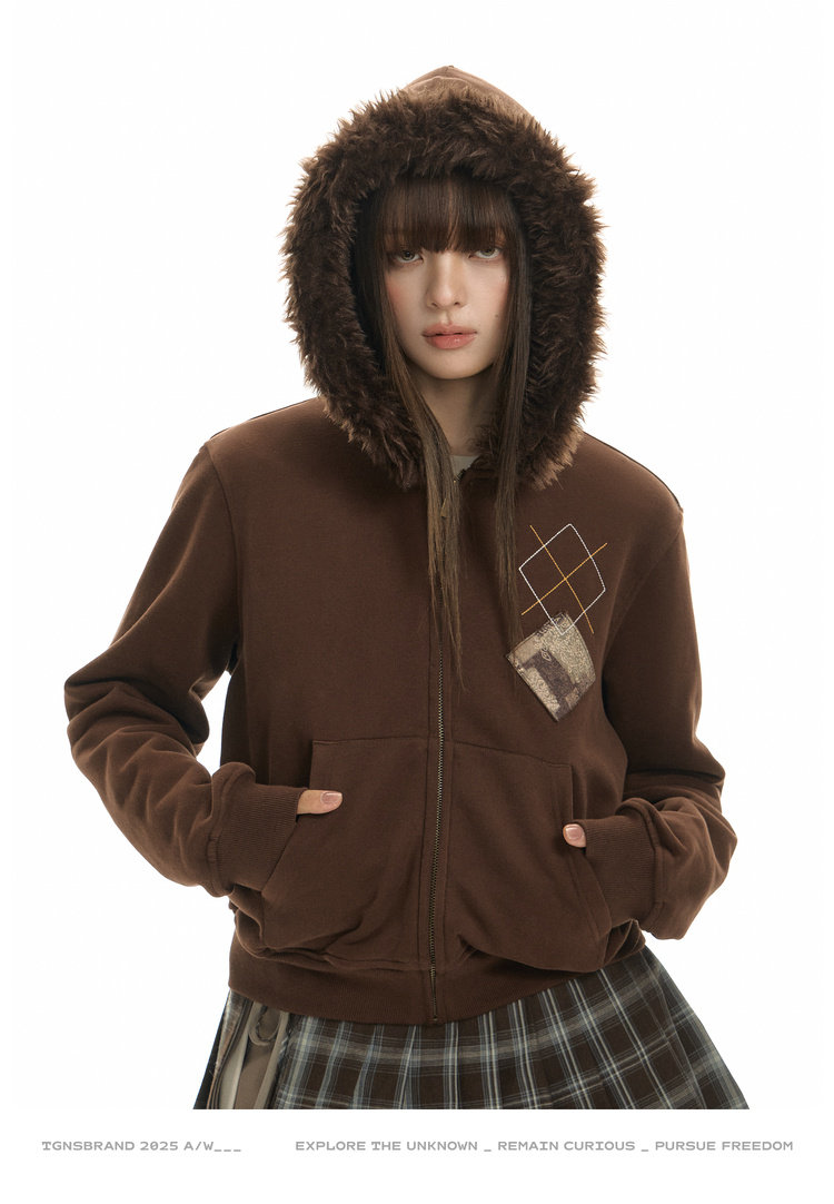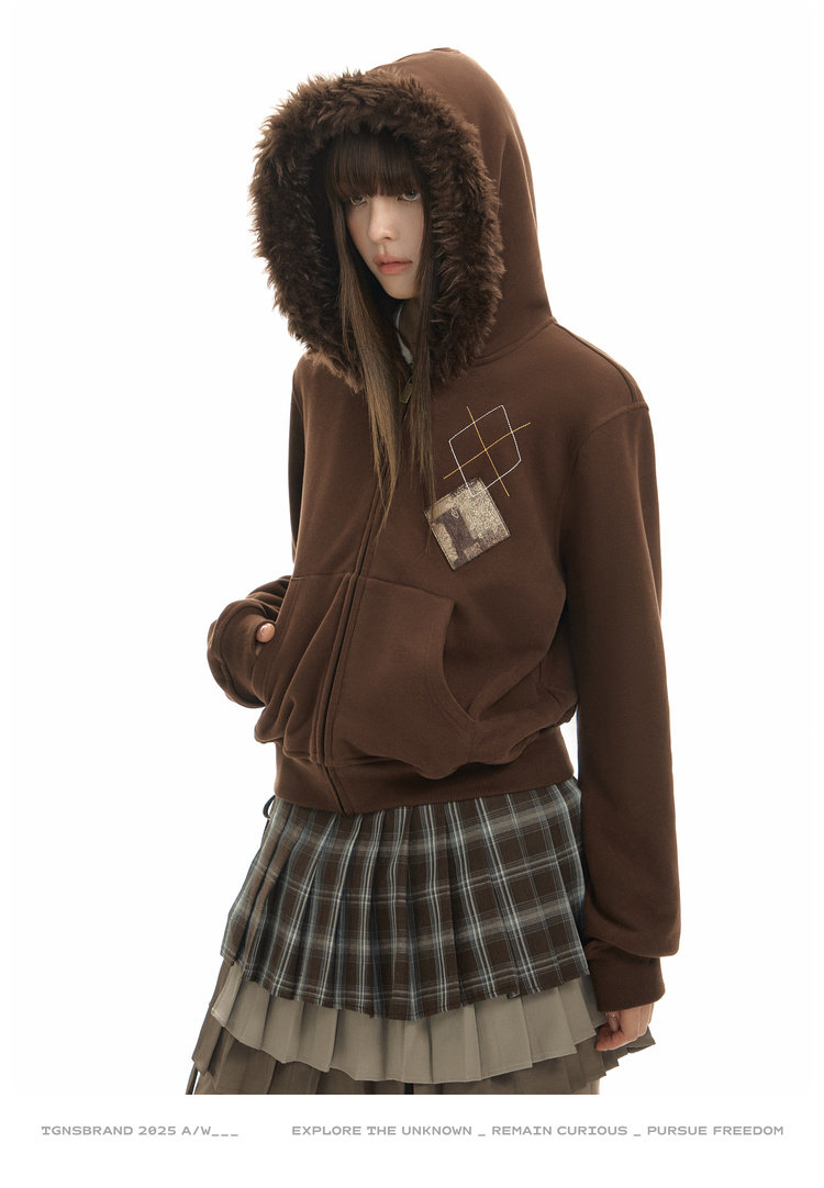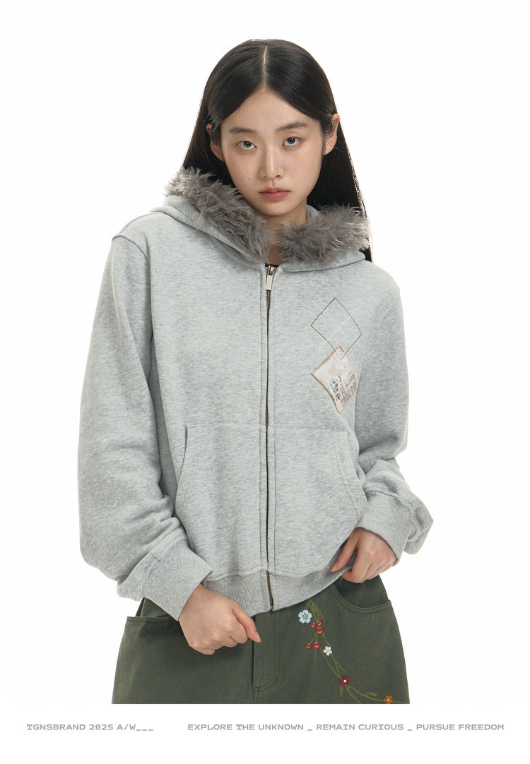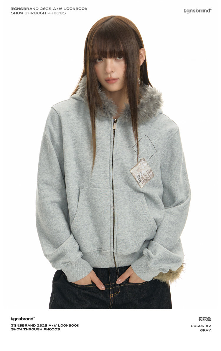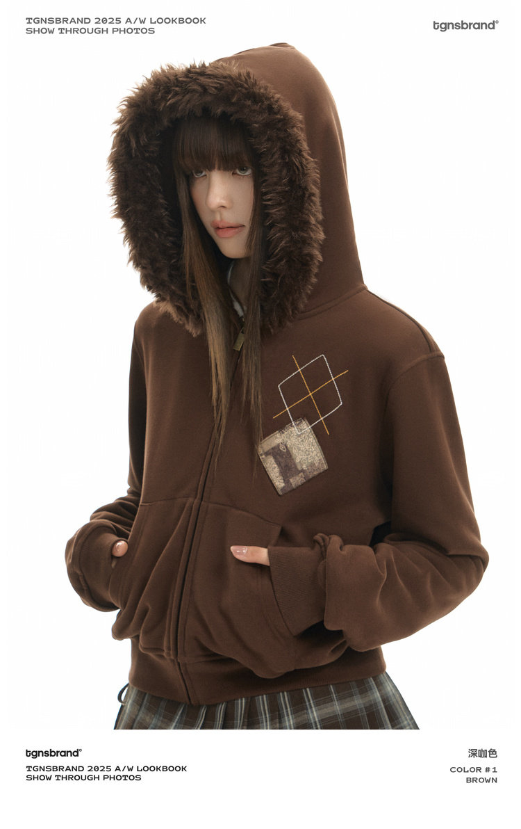 TGNS Hooded Removable Fur Collar Patch Embroidered Jacket