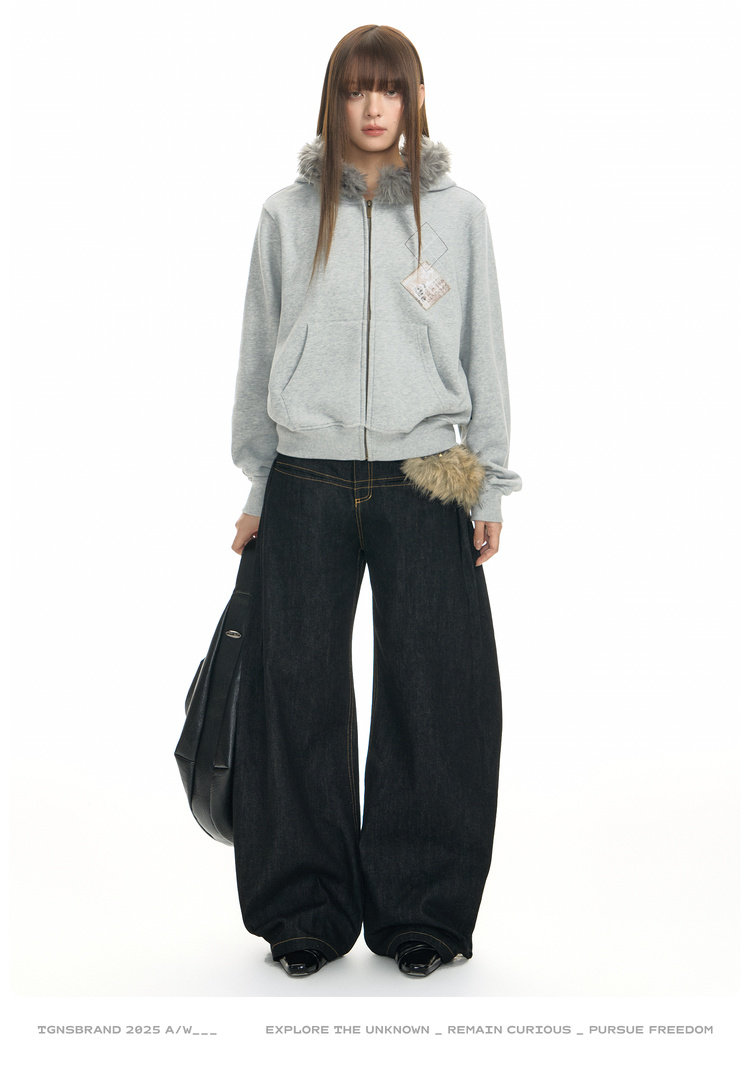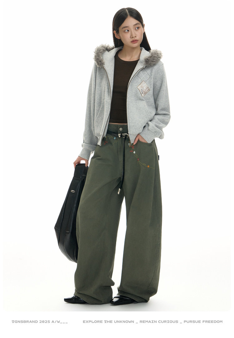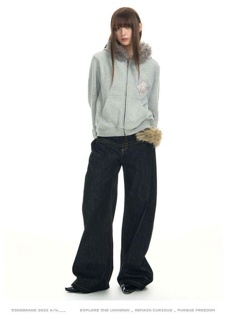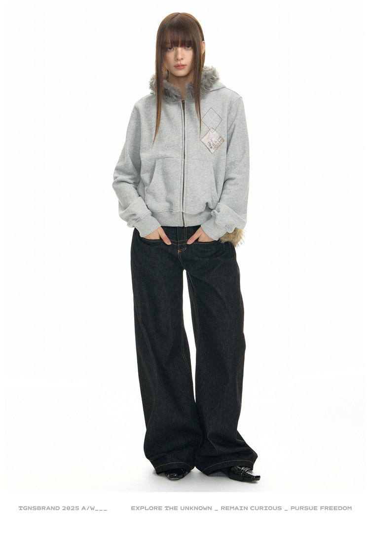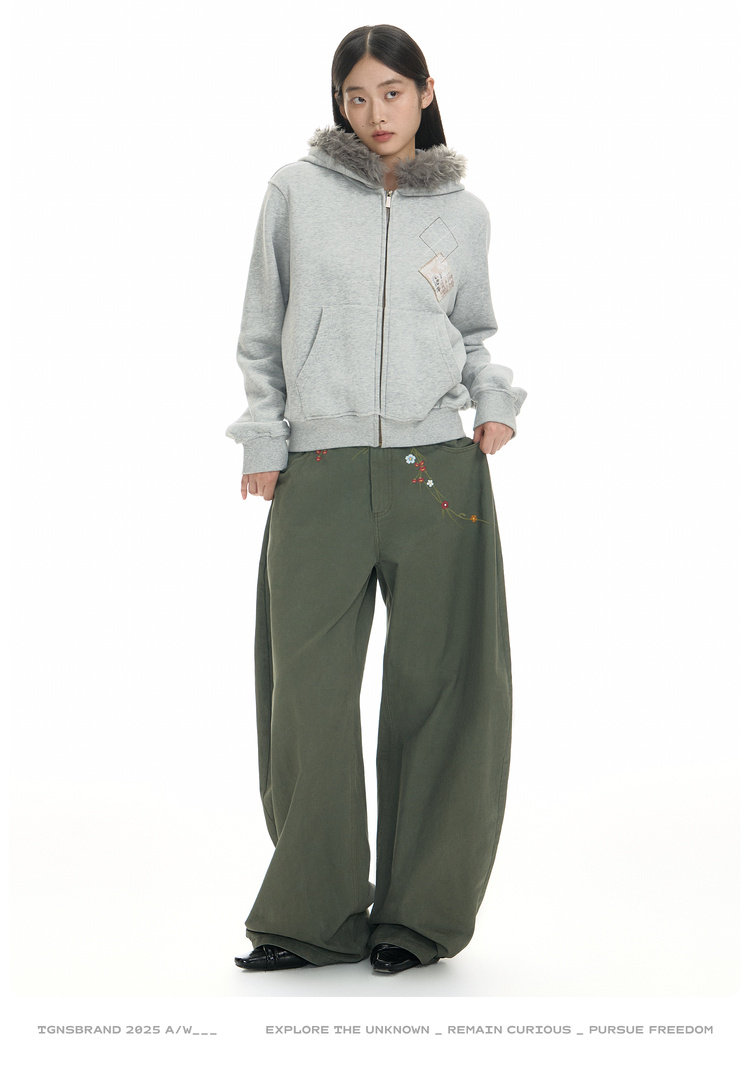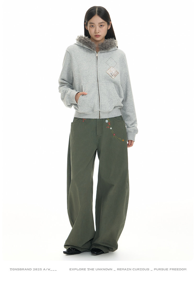 TGNS Hooded Removable Fur Collar Patch Embroidered Jacket