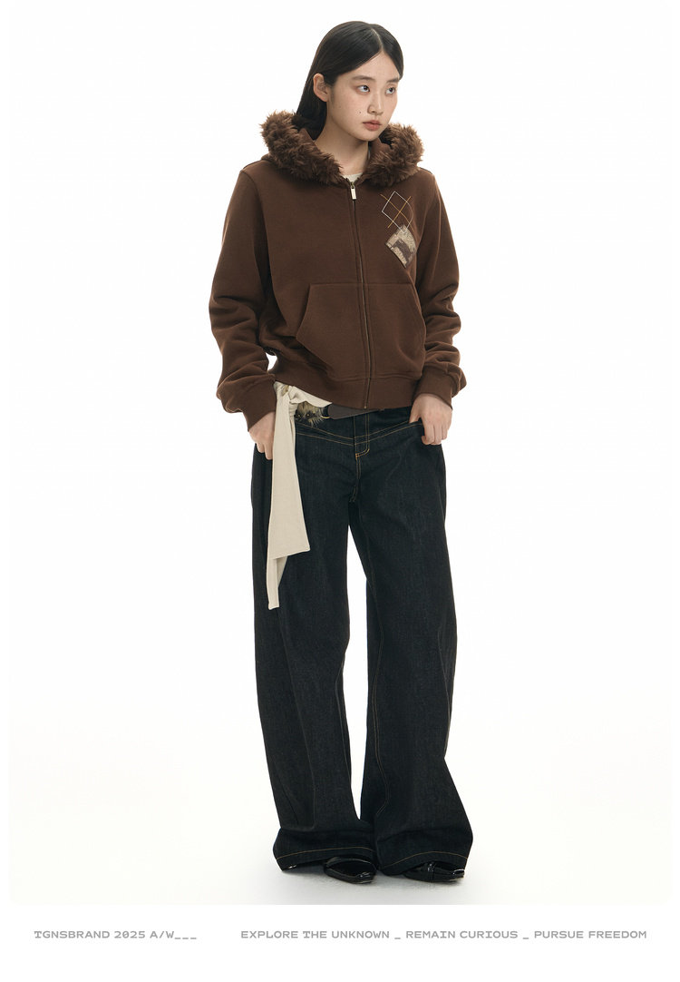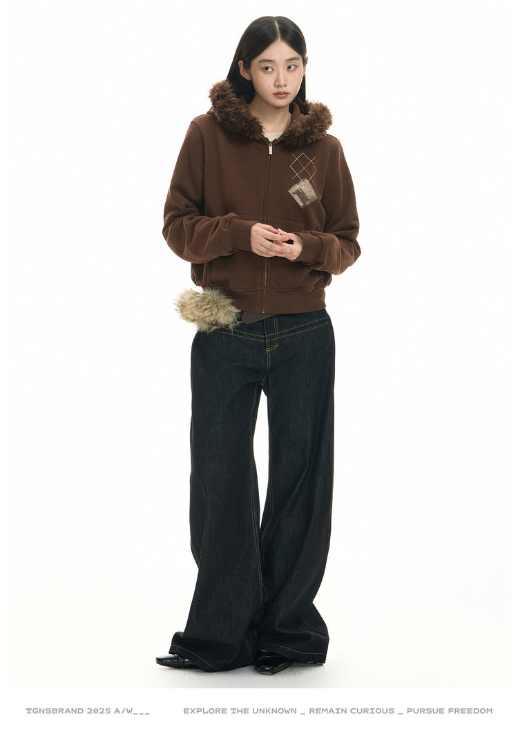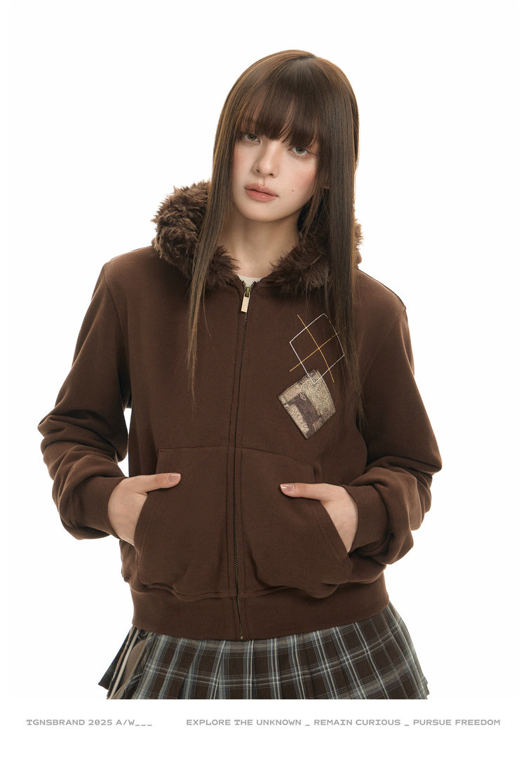 Dark coffee, short fur collar removable / S