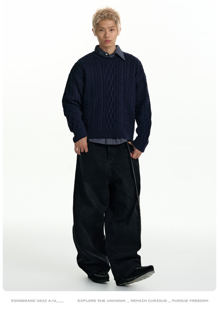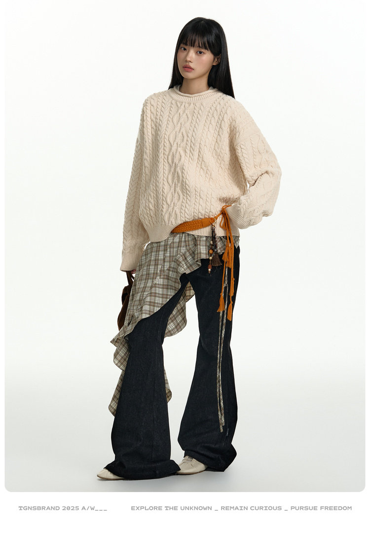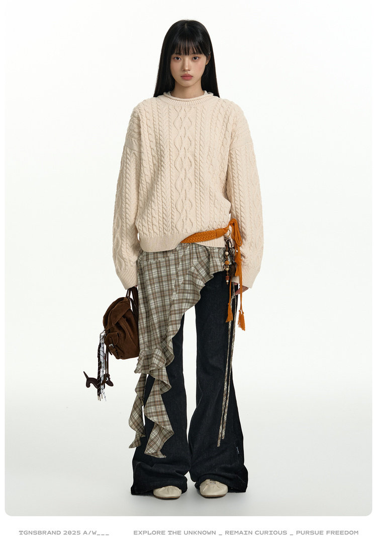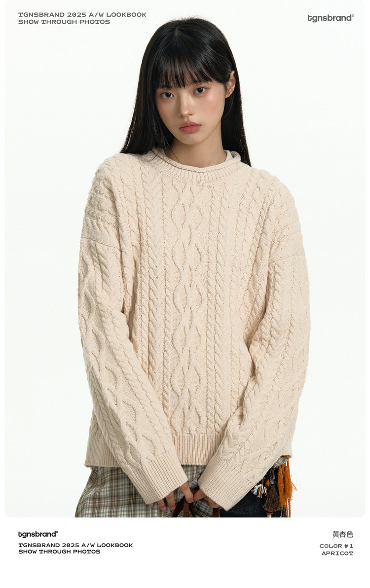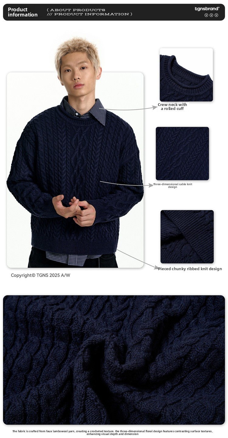 TGNS Vintage Loose Casual Crew Neck Pullover