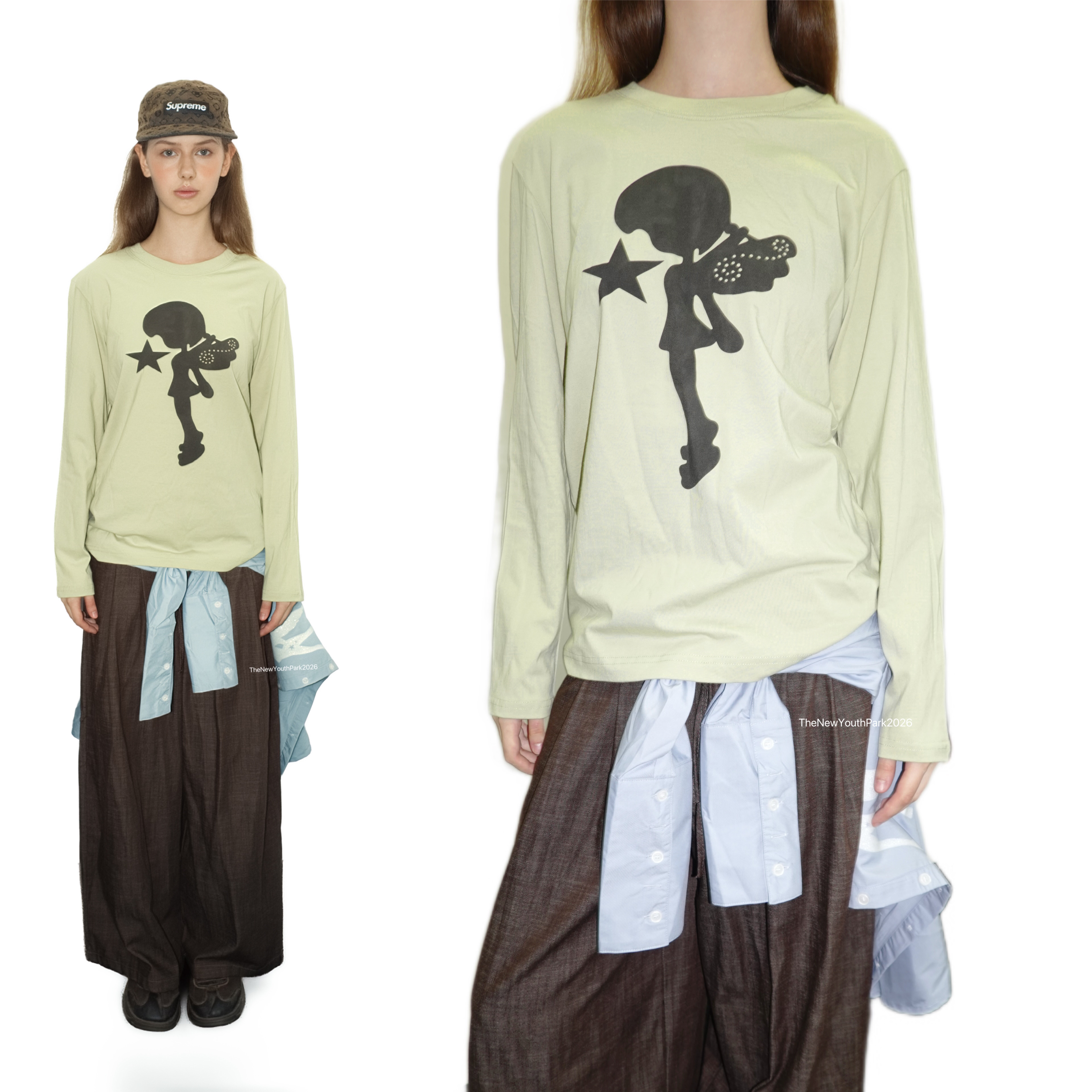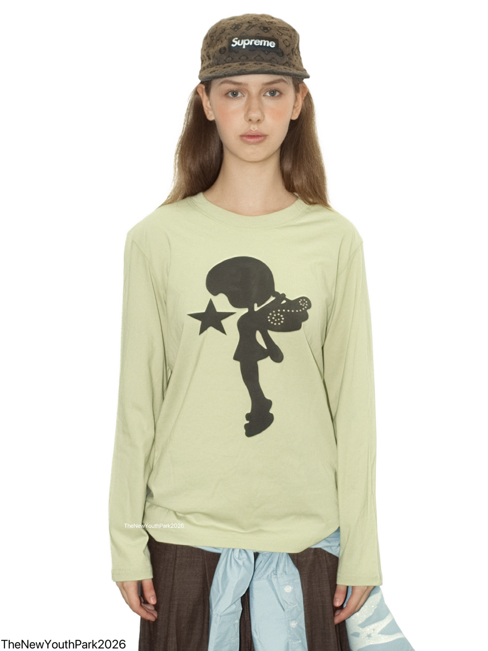 TheNewYouthPark Front Shoulder Slim Fit Star Girl Print Long Sleeve