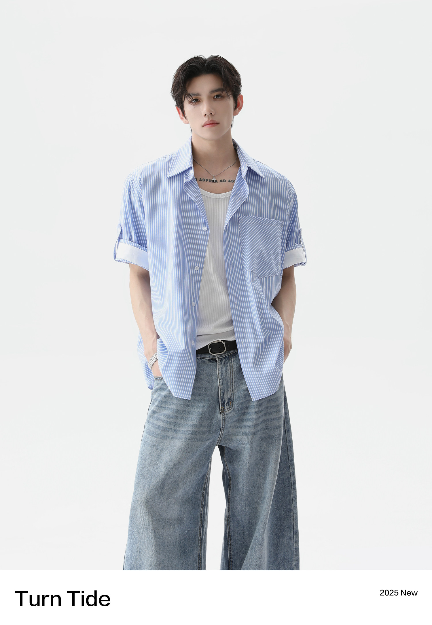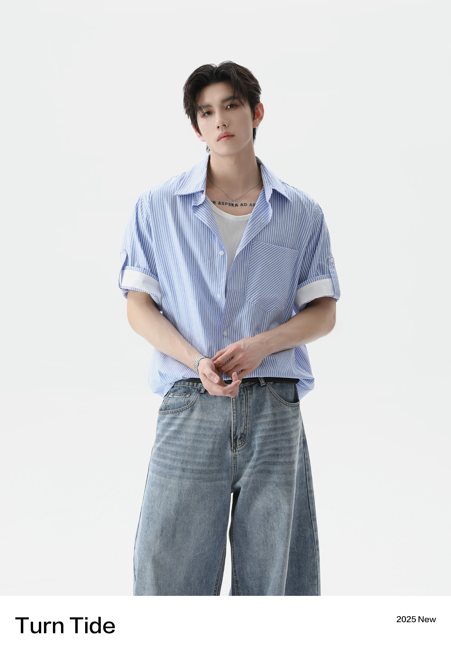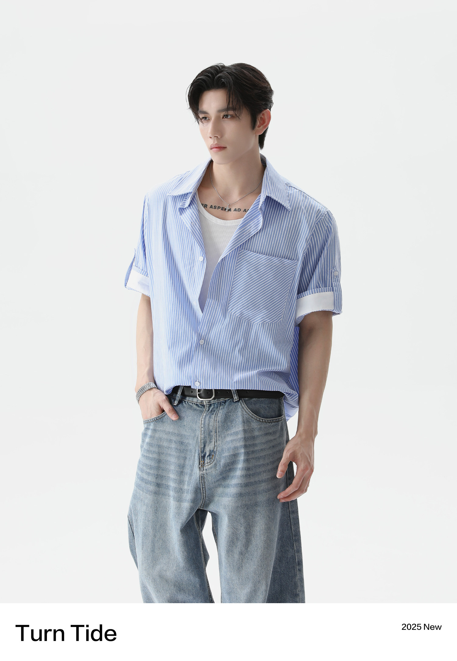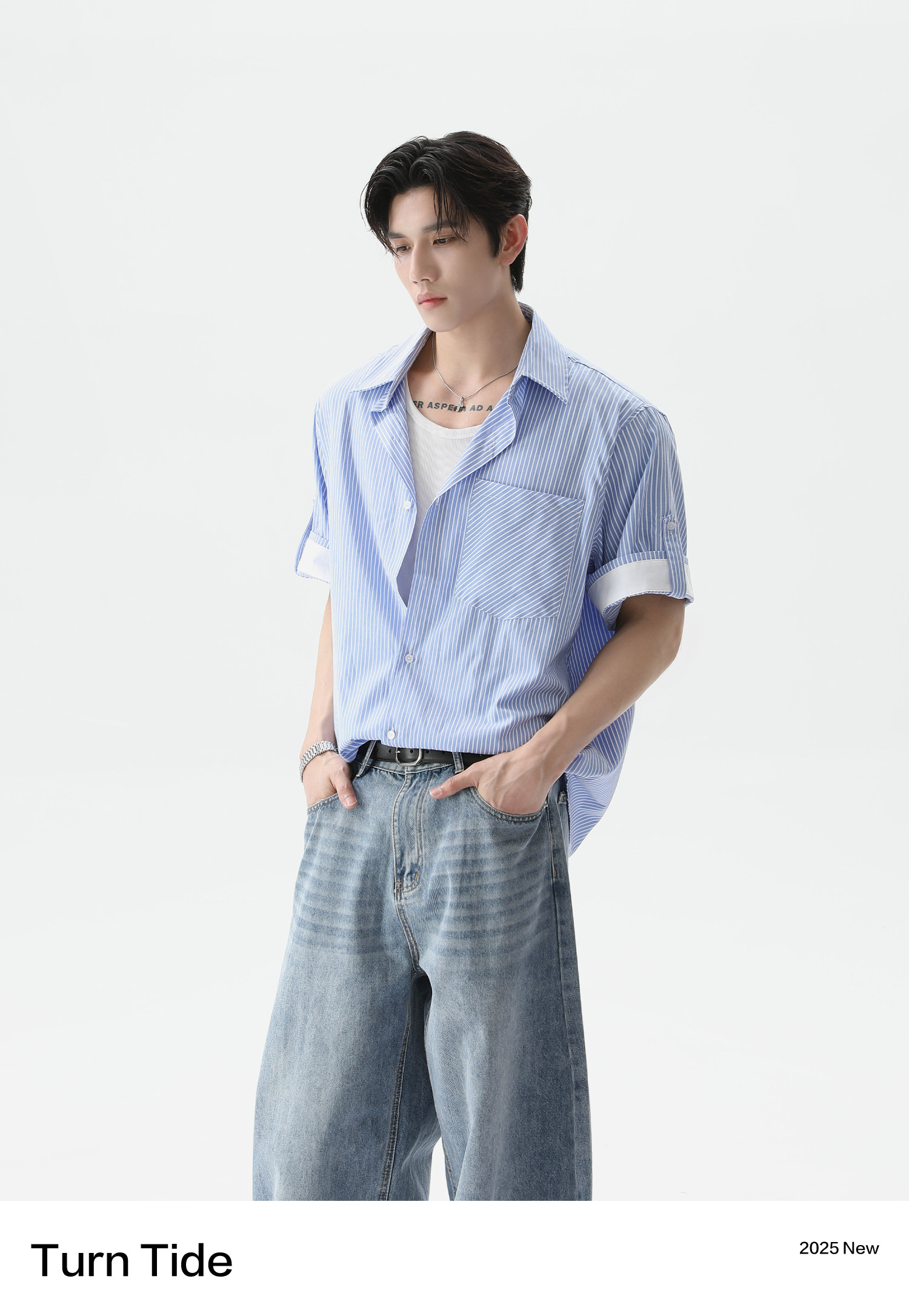 TURNTIDE Casual Loose Simple Striped Shirt