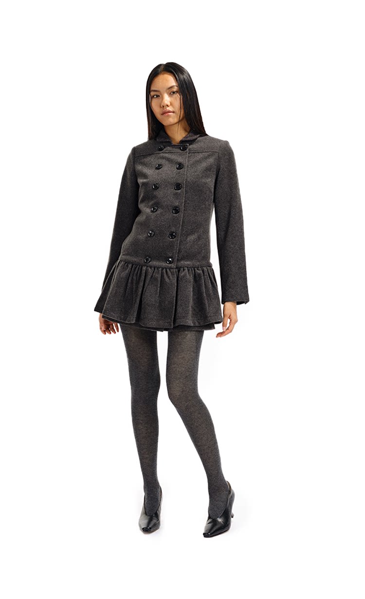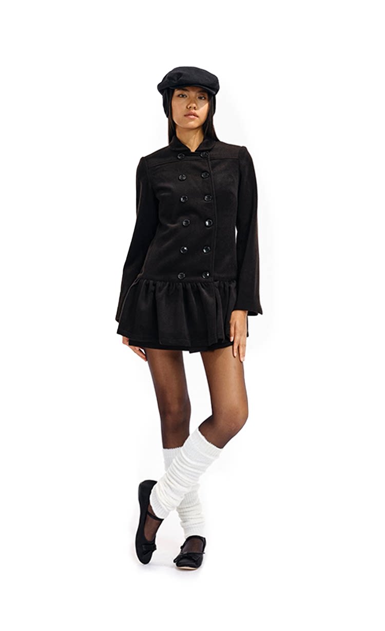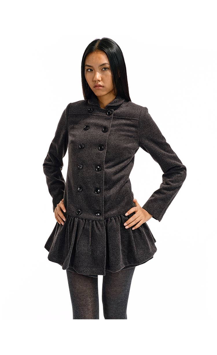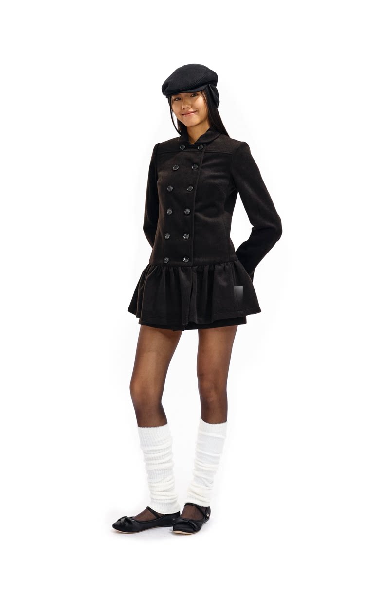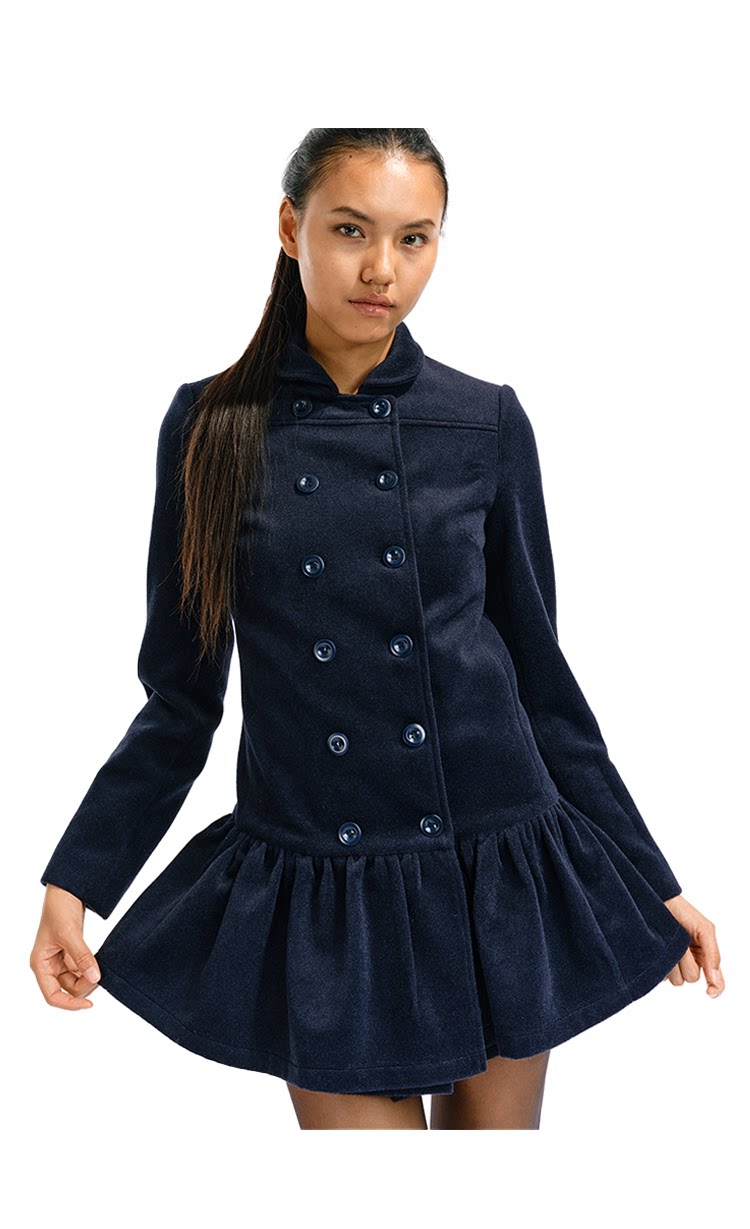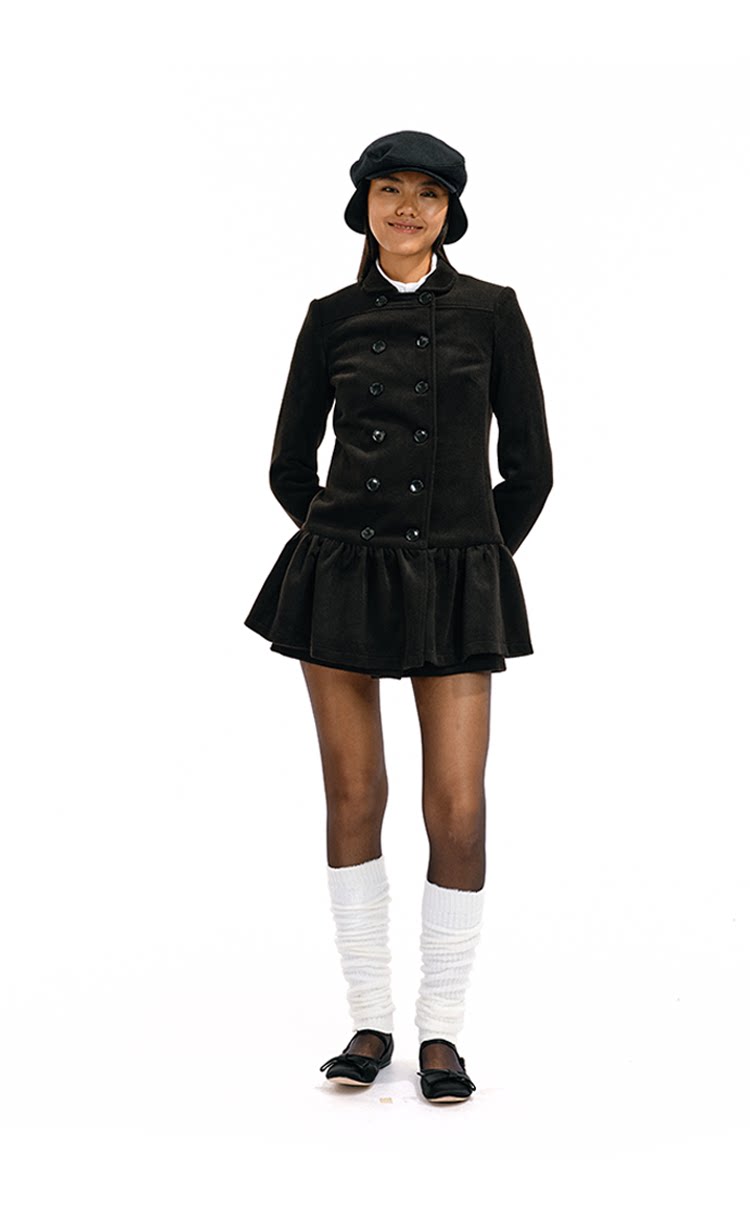 Two Little Guys Soft Waxy Double-breasted Lapel Dress Woolen Coat