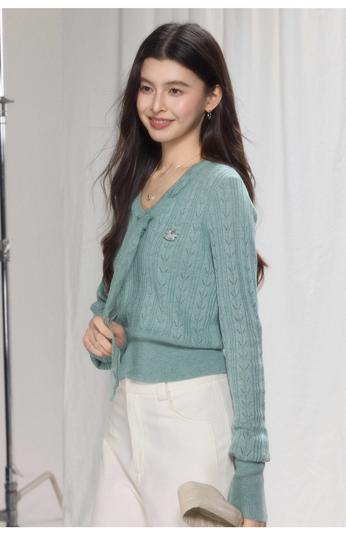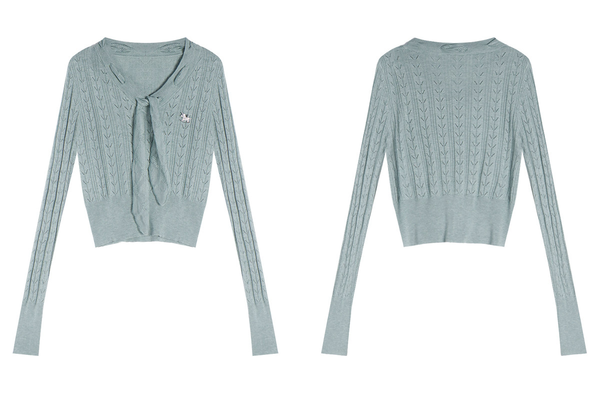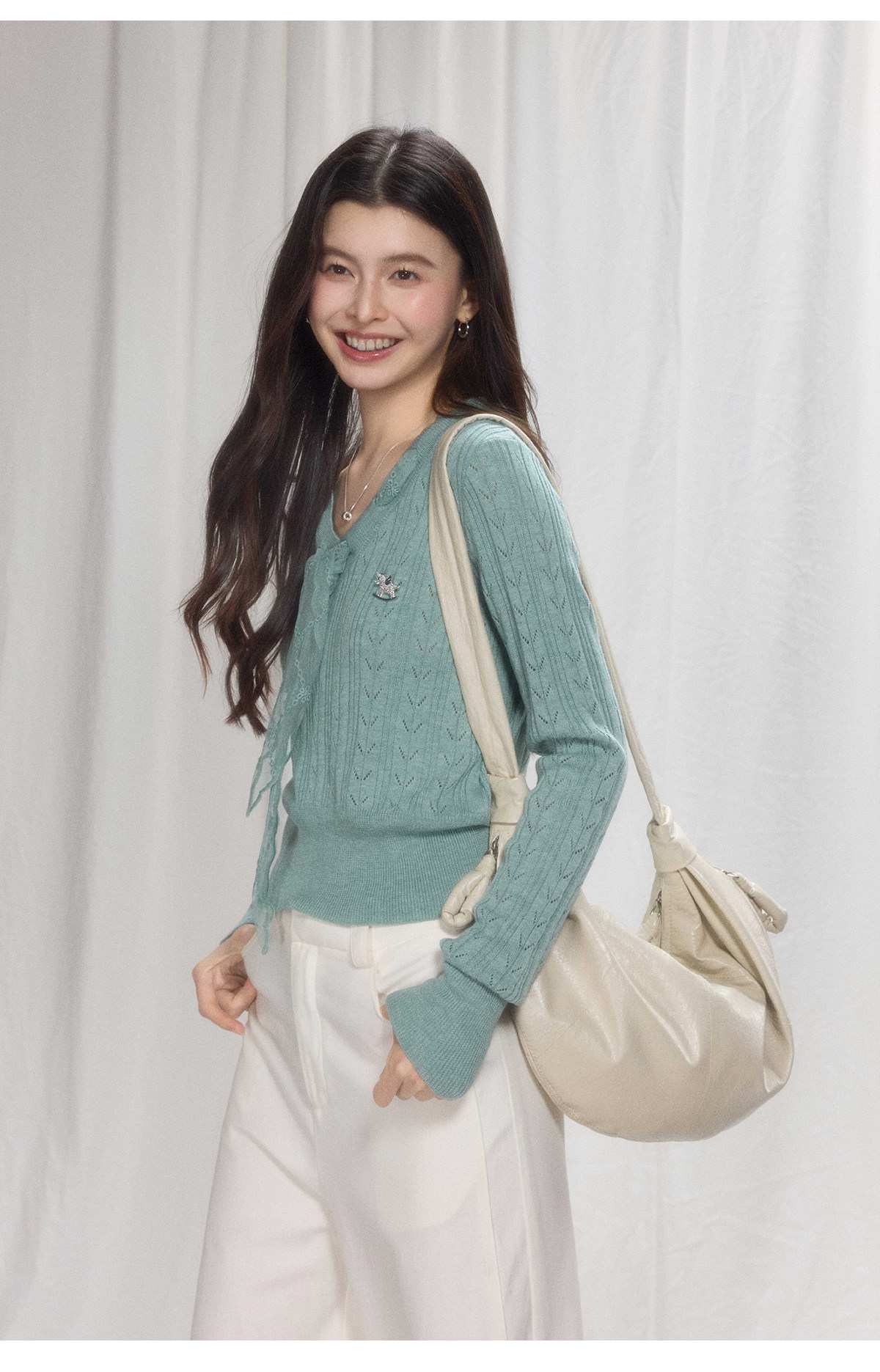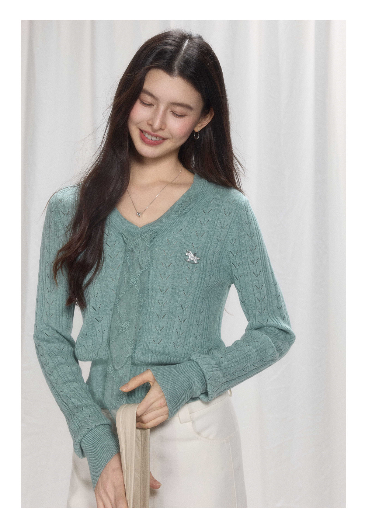 TYANG Hollow Twisted Waist Lace Streamer Knitted Sweater