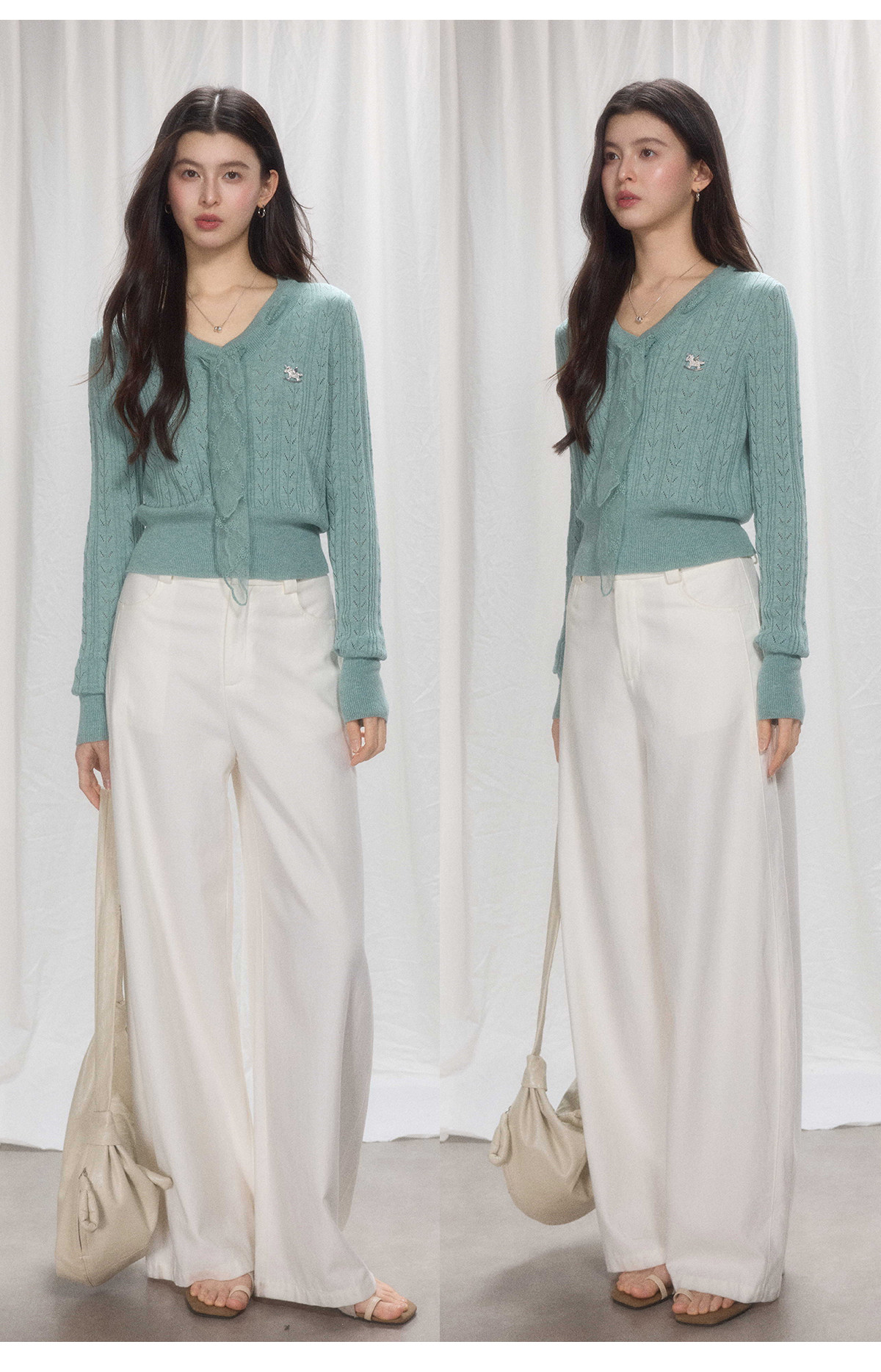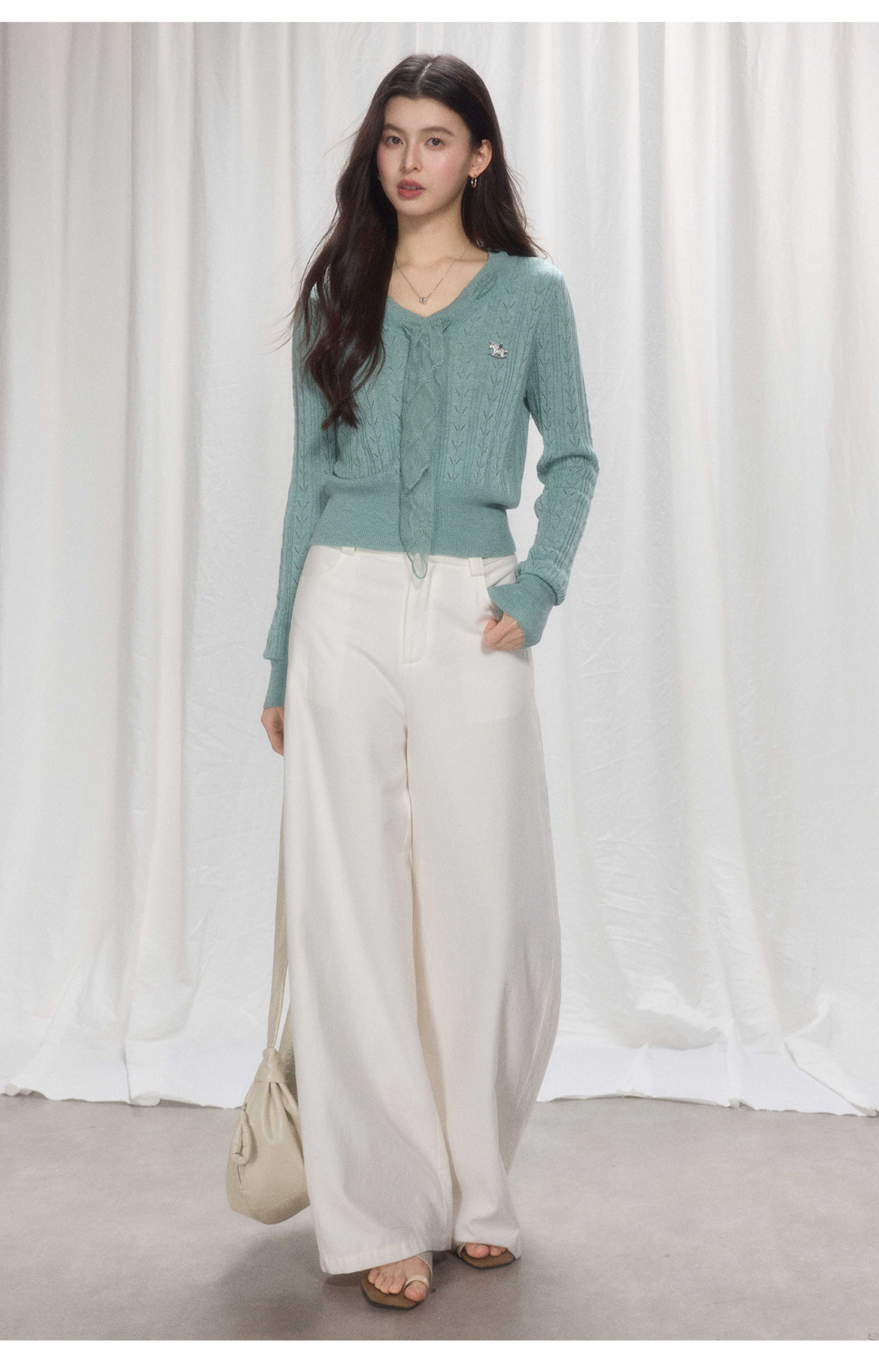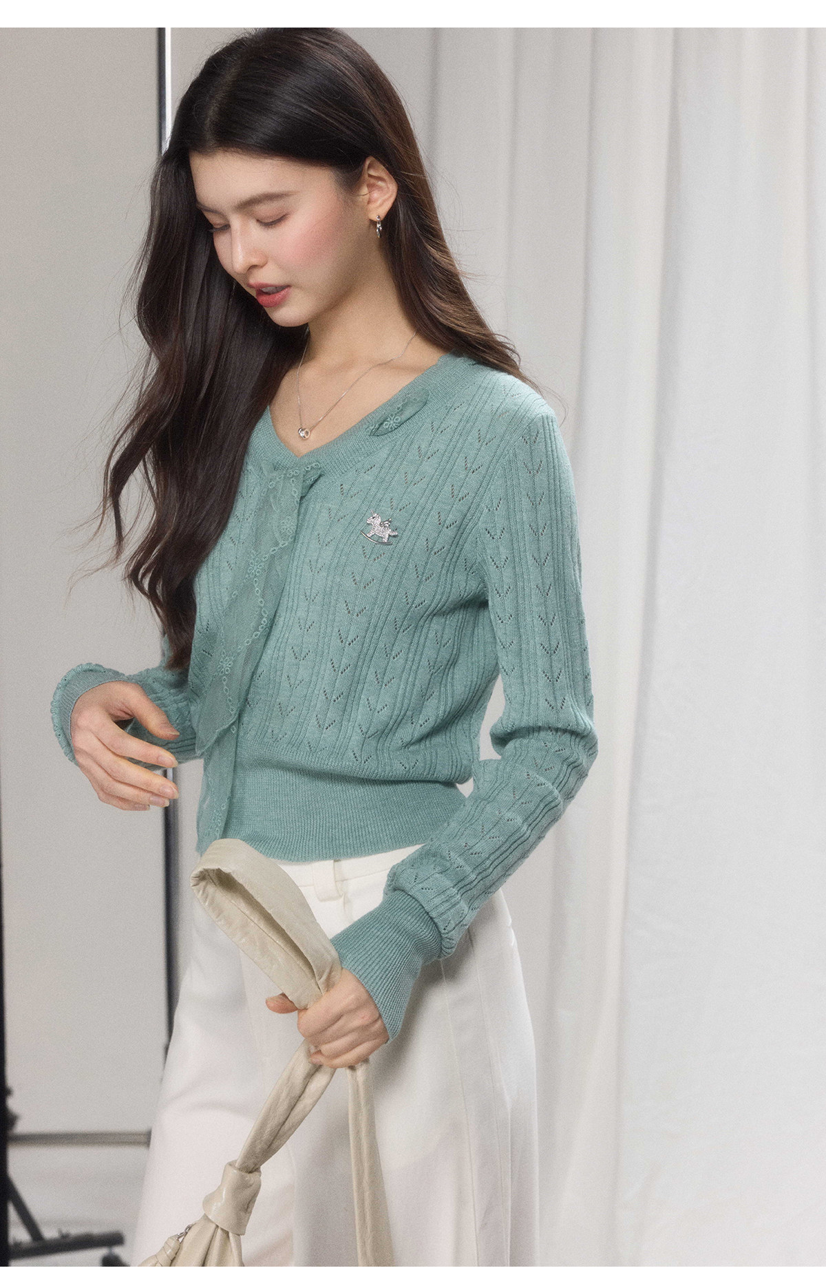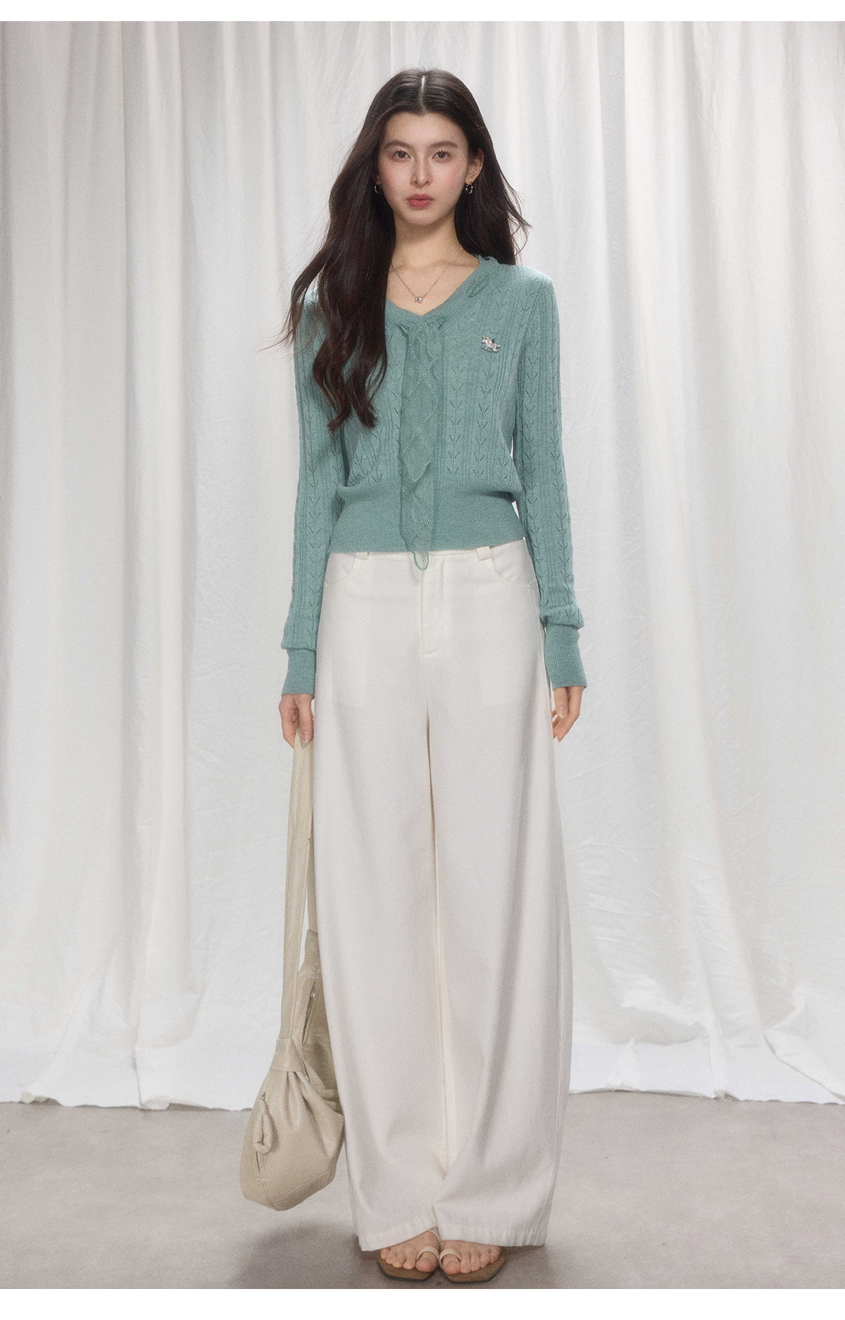 TYANG Hollow Twisted Waist Lace Streamer Knitted Sweater