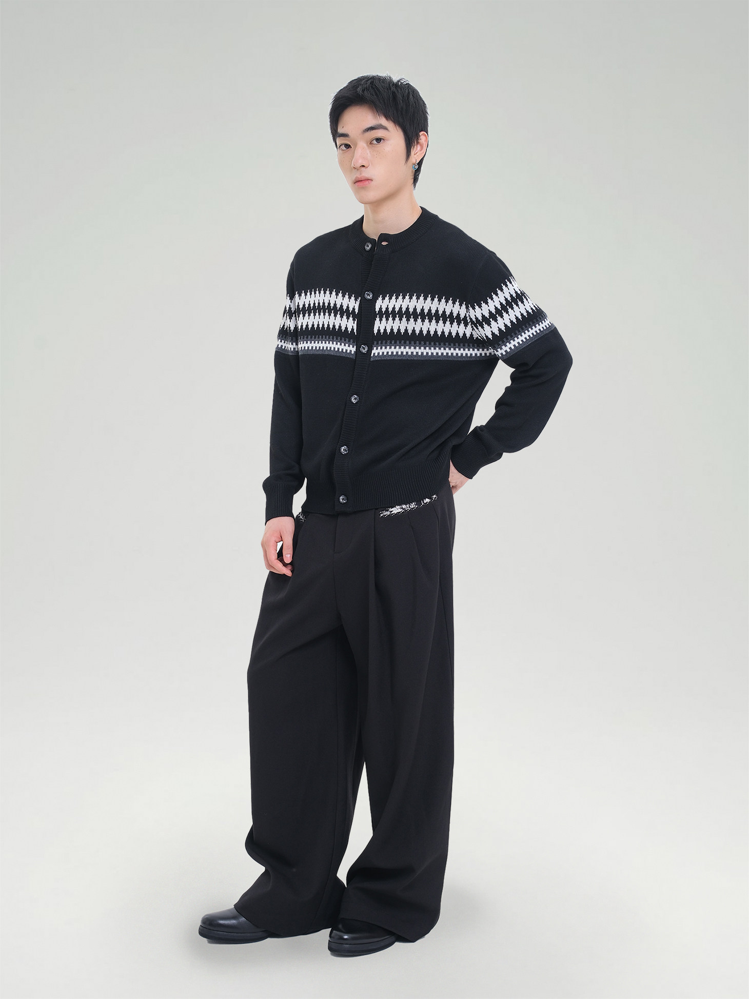 TZ Jacquard Striped Lapel Loose Wool Tee