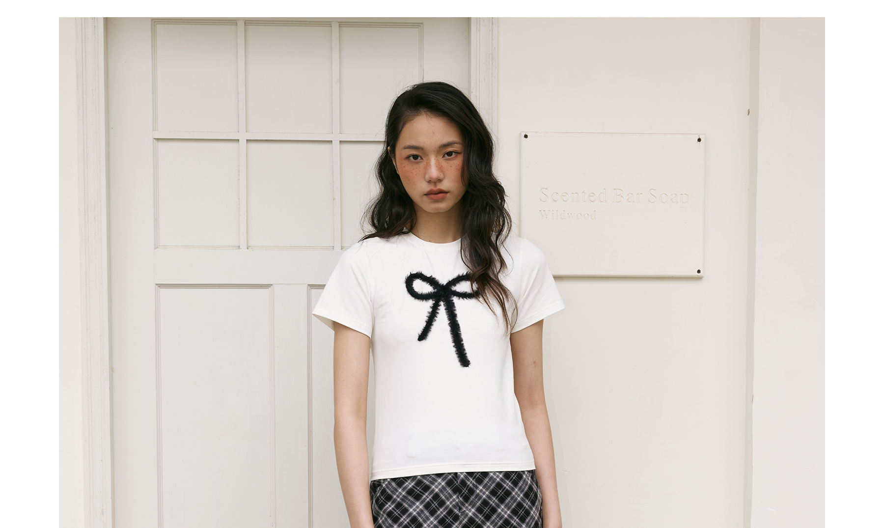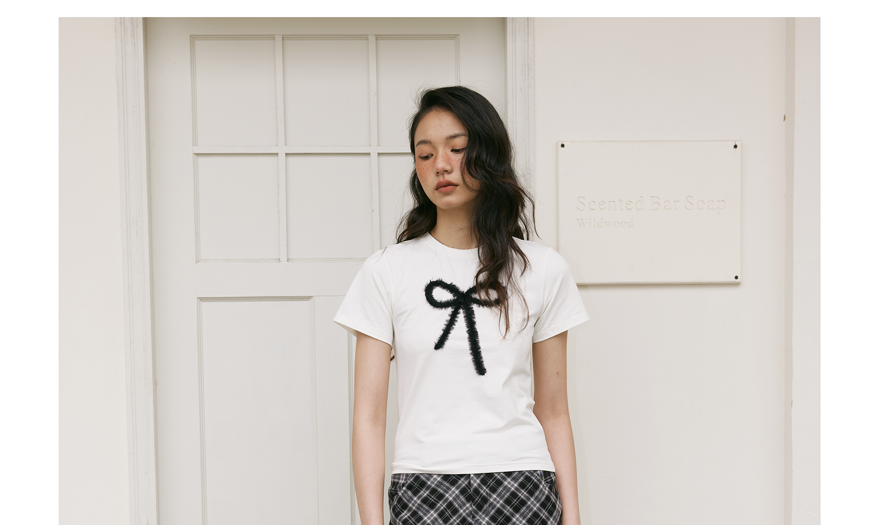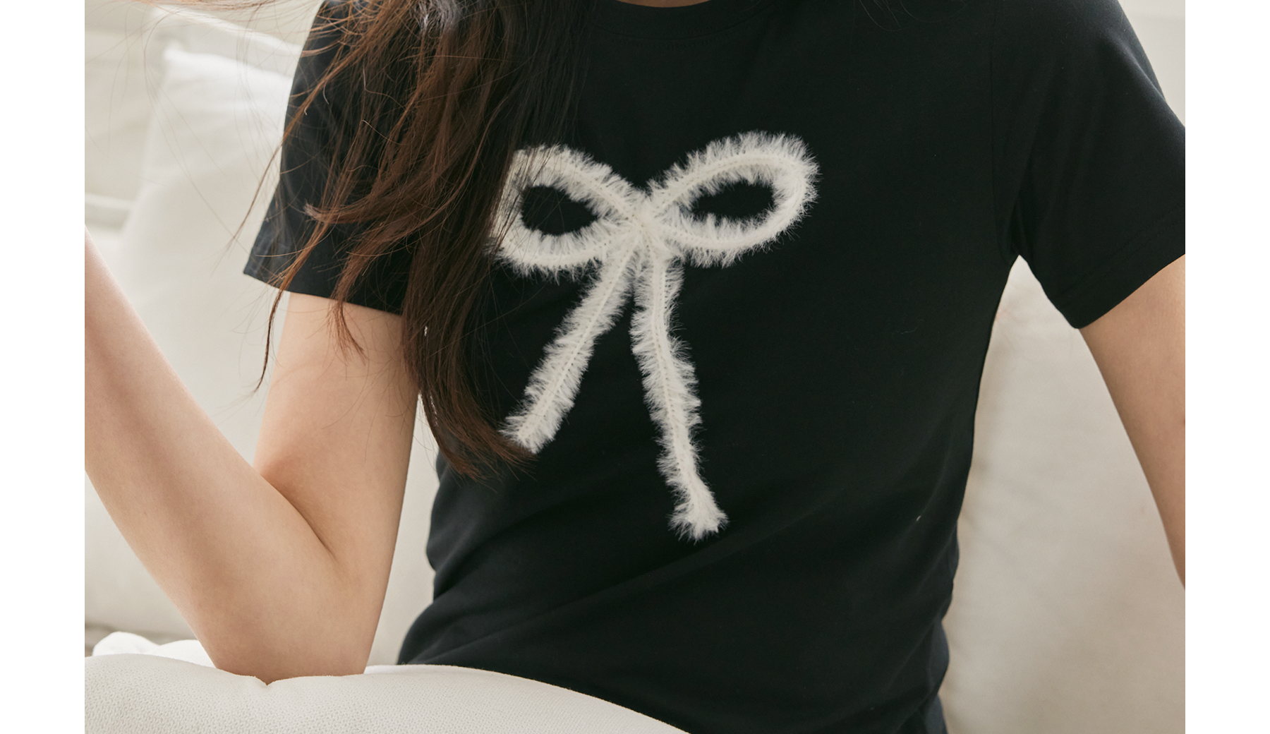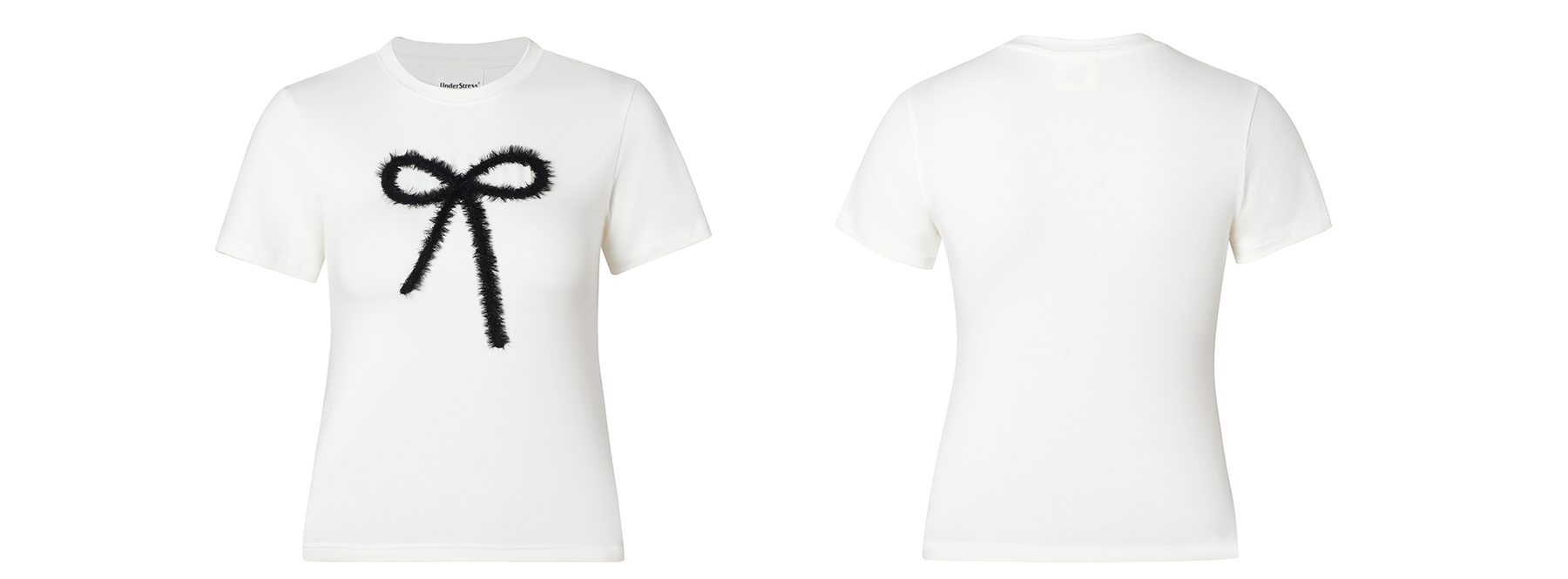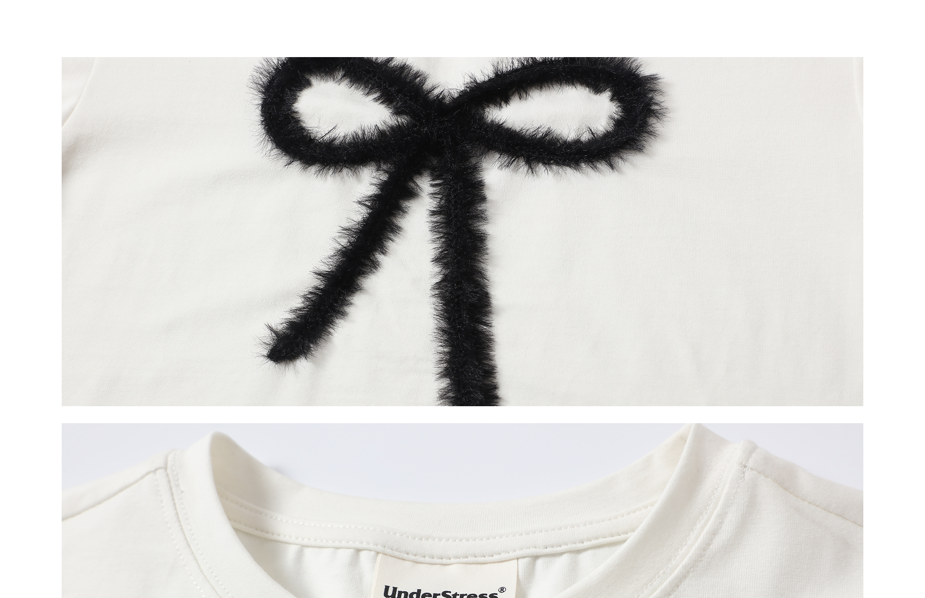 UnderStress Three-dimensional Plush Bow Front Shoulder Tee