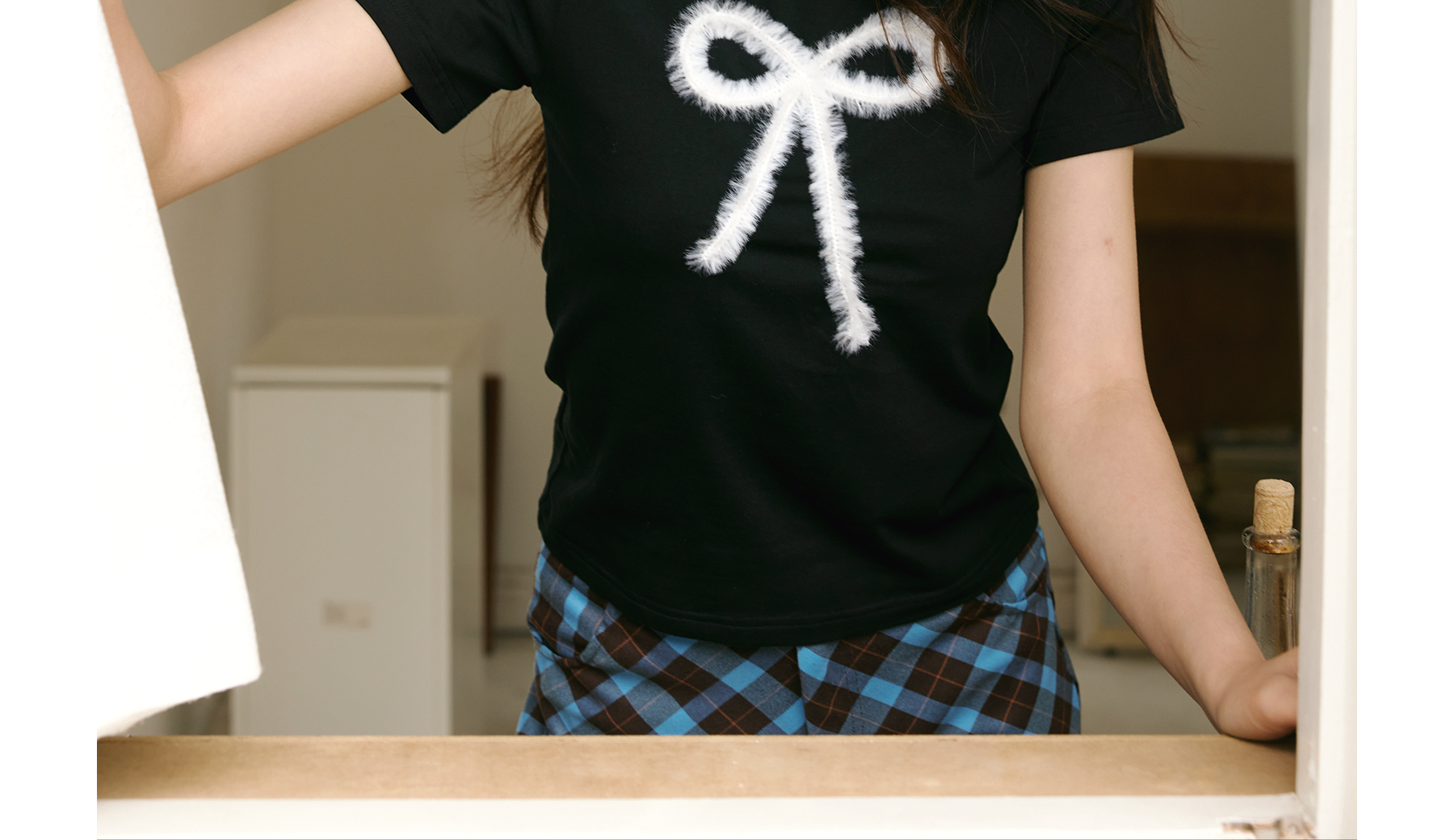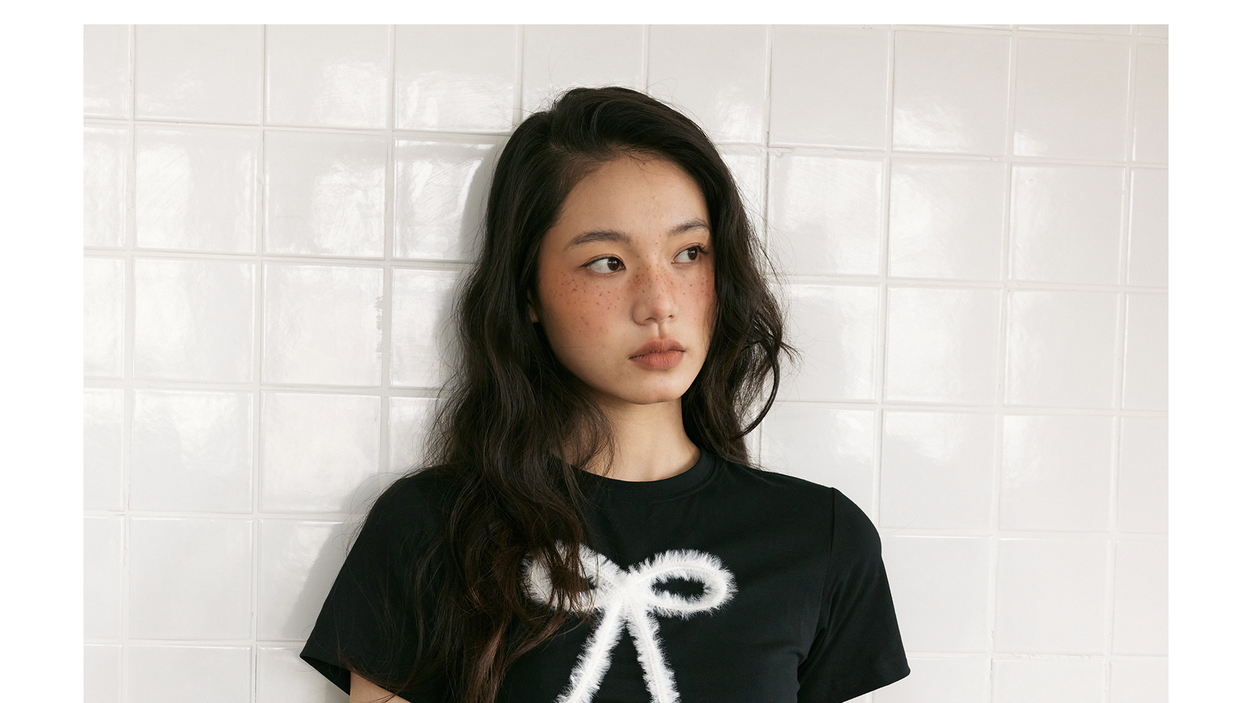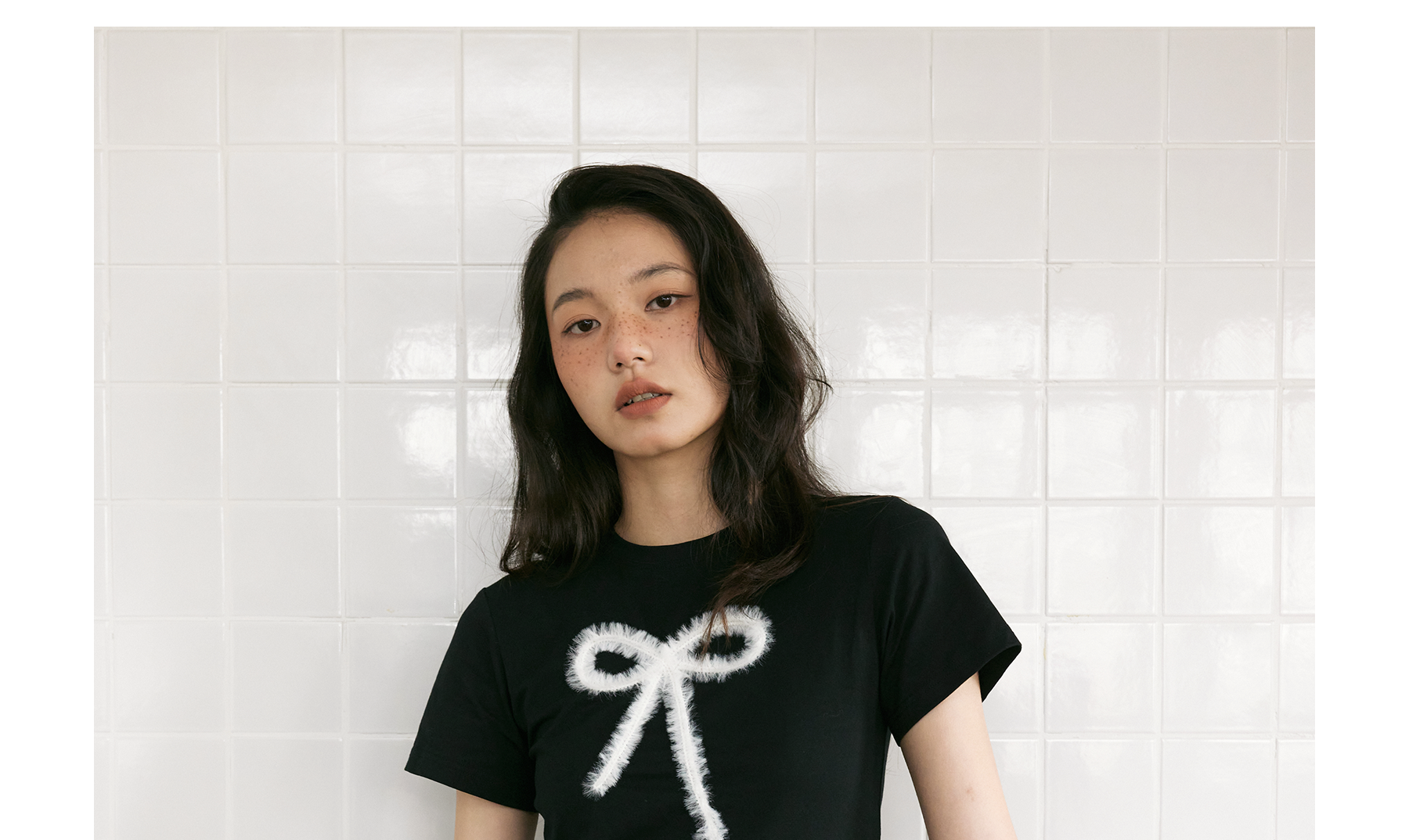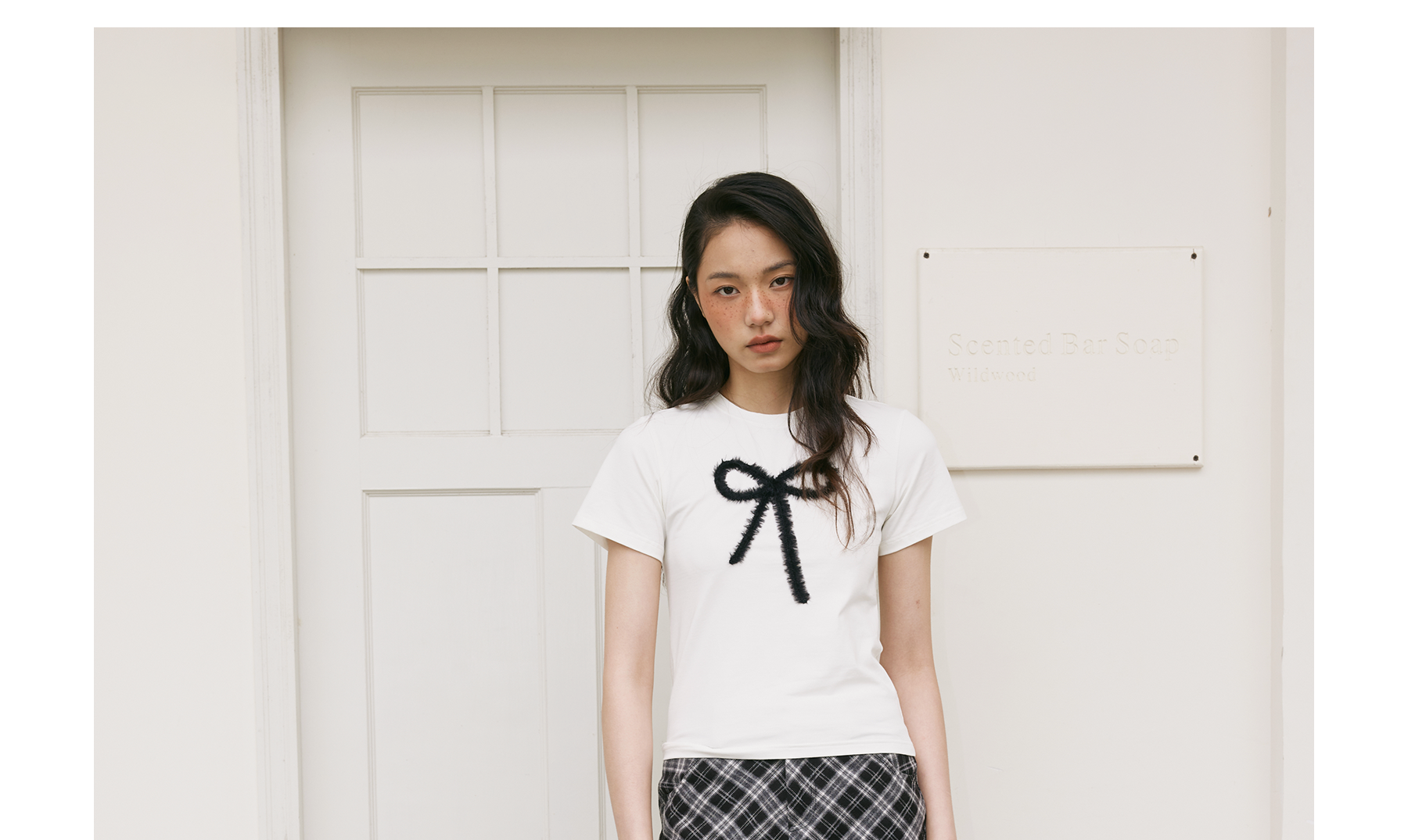 UnderStress Three-dimensional Plush Bow Front Shoulder Tee