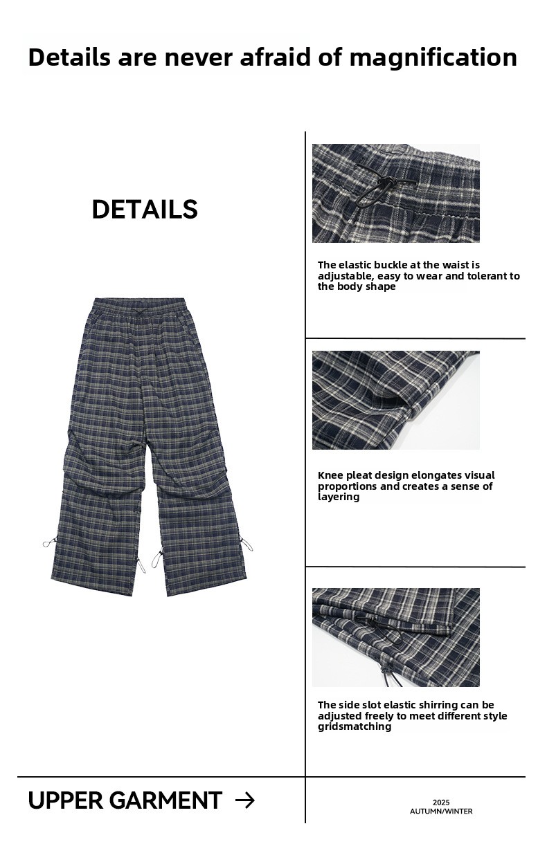 UNF Vintage Plaid Pleated Loose Straight Overalls