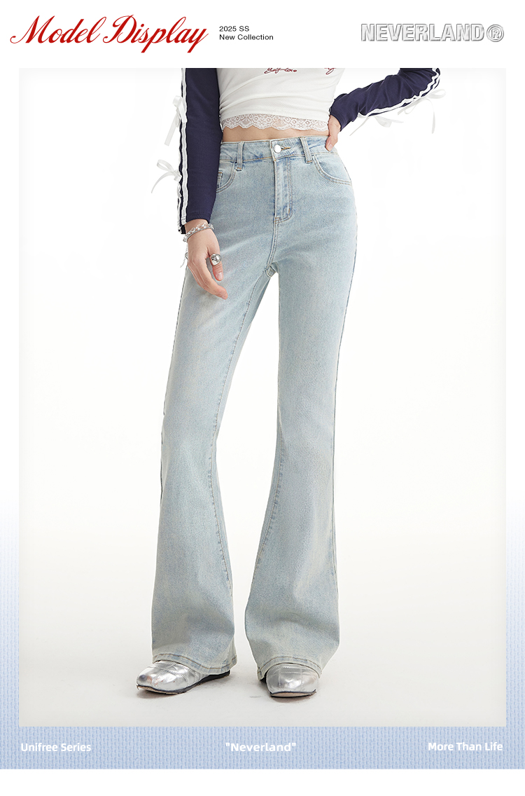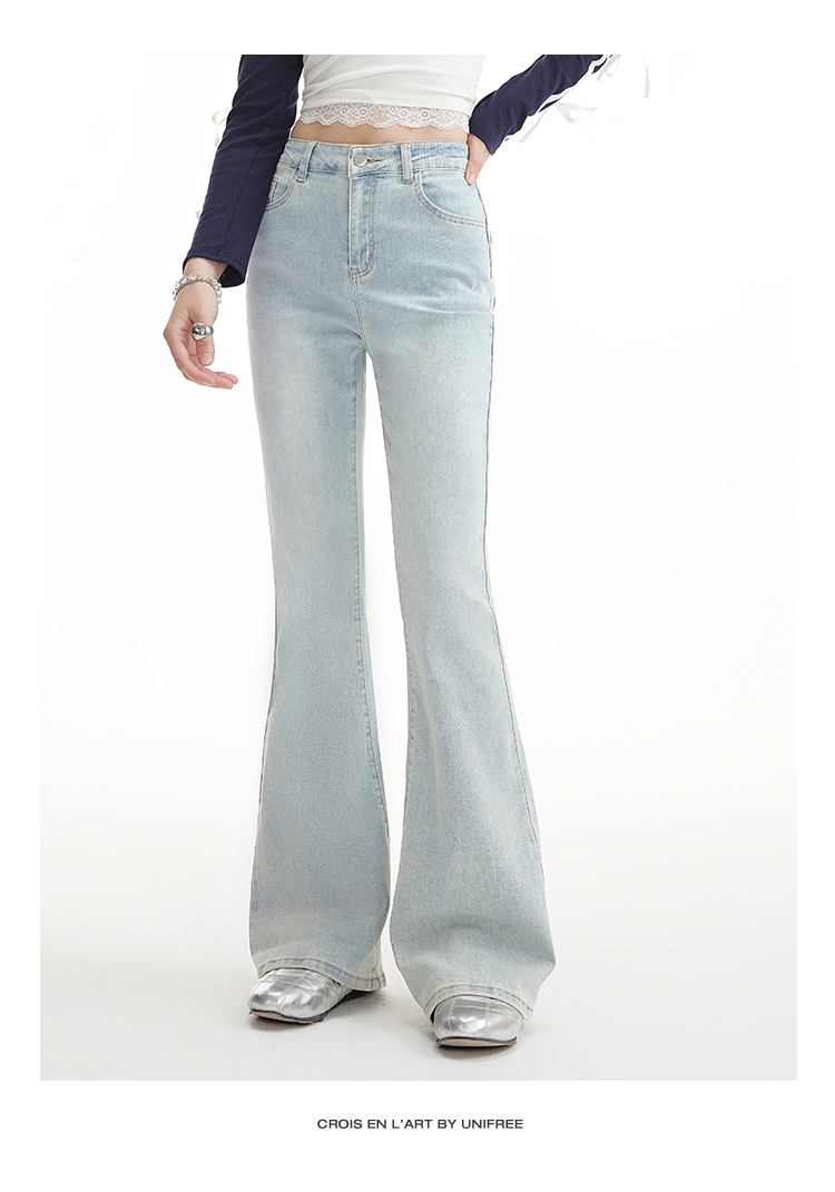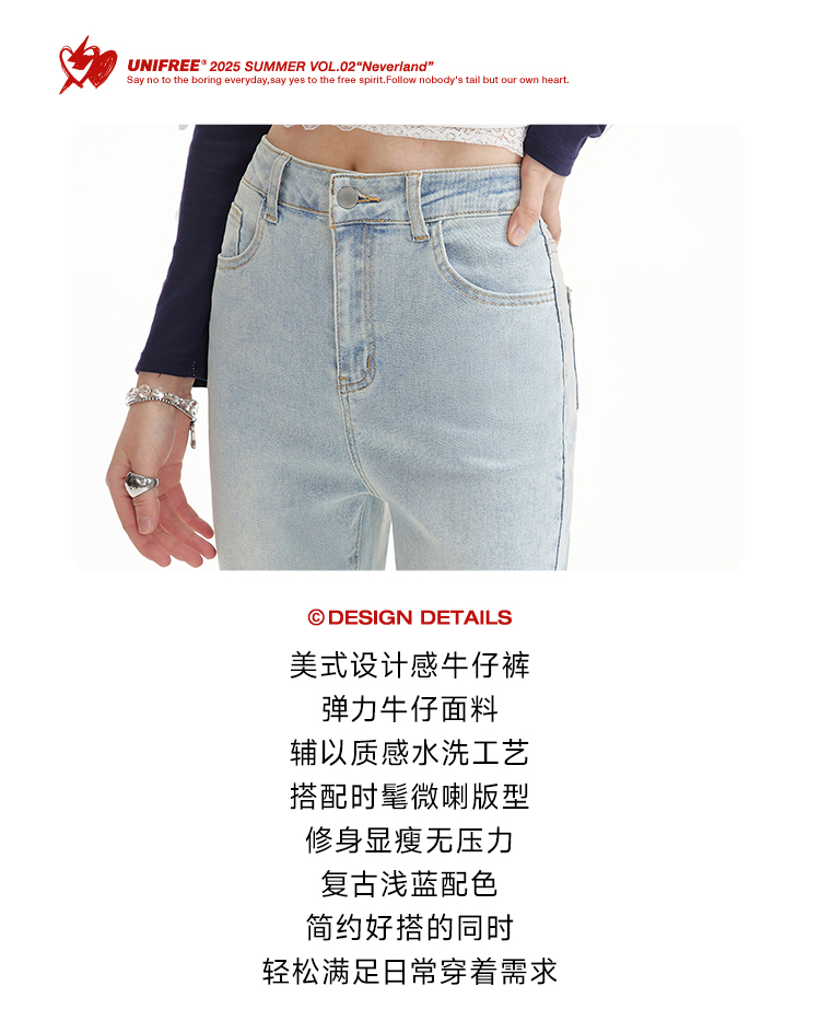 UNIFREE Slightly Pulled Low-rise Slim-fit Fashion Jeans