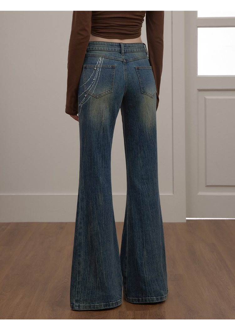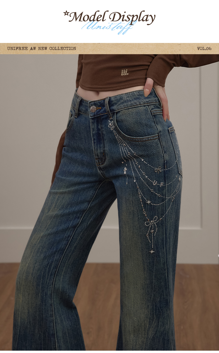 UNIREE Flash Diamond Stretch Low Waist Jeans